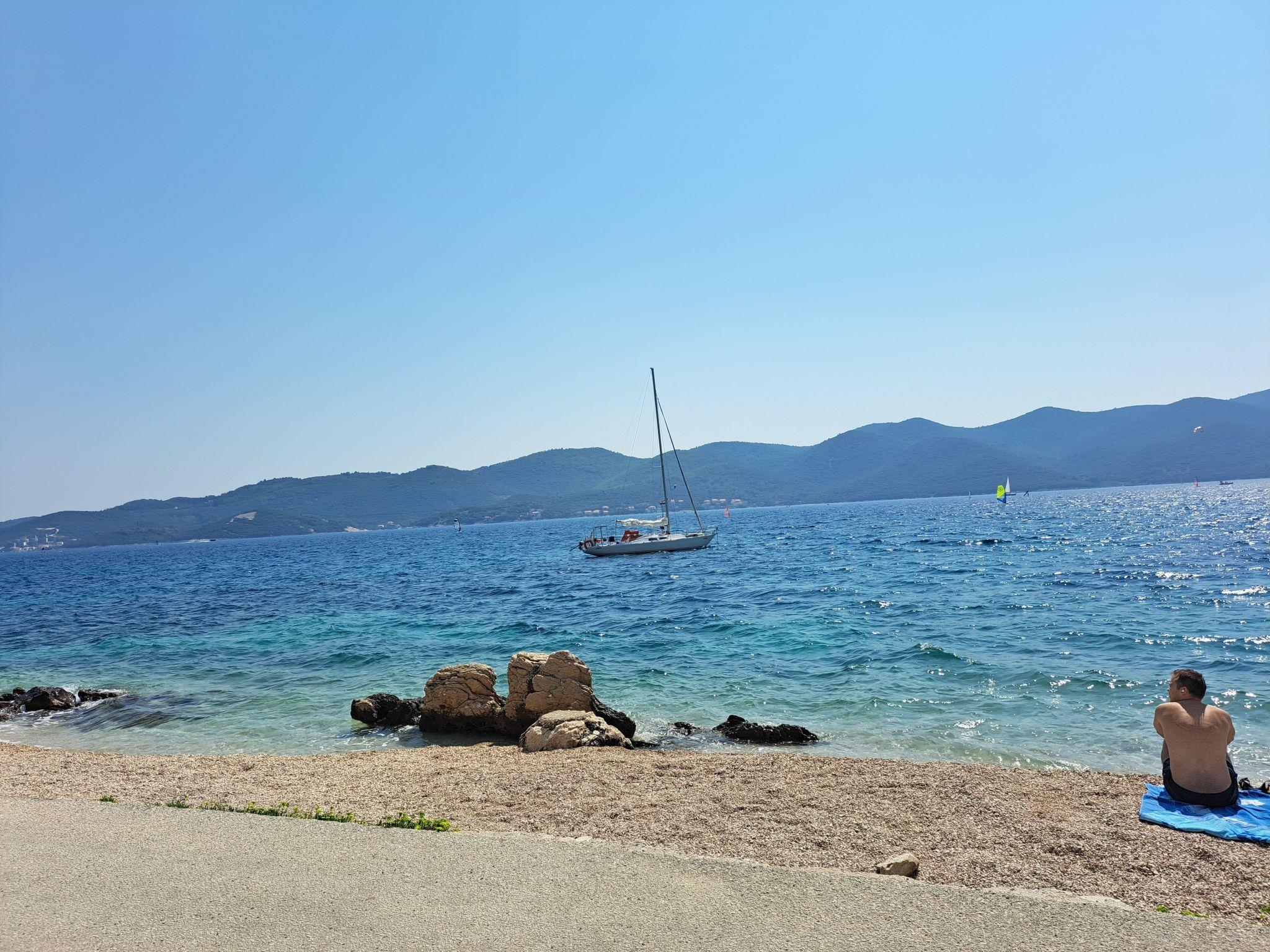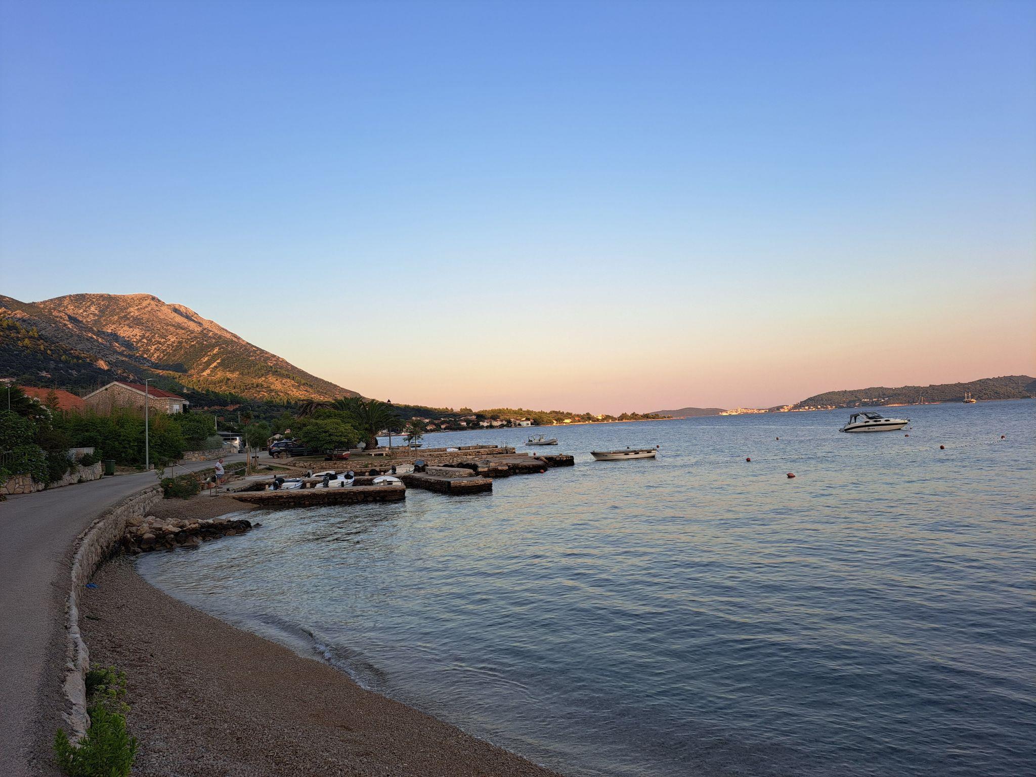 Der Außenbereich der Wohnung bietet reichlich Gelegenheit zum Entspannen und Genießen. Eine überdachte Terrasse lädt zu Mahlzeiten im Freien oder einfach zum Entspannen während des Tages ein. Für Sonnenanbeter bietet eine zusätzliche Terrasse mit Sonnenliegen einen spektakulären Blick auf den Pelješac-Kanal und die benachbarte Insel Korcula. Exklusiv für unsere Gäste lädt der Garten zur alleinigen Nutzung ein, und ein Außengrill steht für gemütliche Grillabende zur Verfügung. Außerdem bieten wir einen Abstellraum für Surfausrüstung, der nur wenige Meter vom Strand entfernt liegt.