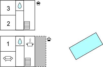 Badezimmer 4m2 (nr. 1) - WC. Warmes und kaltes Wasser. Dusche