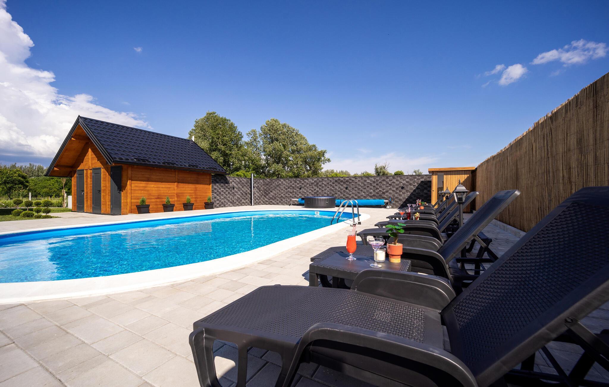 In der Nähe des Naturparks Kopacki rit empfängt Sie dieses komfortable und moderne Holzhaus mit schönem Gemeinschaftsgarten.