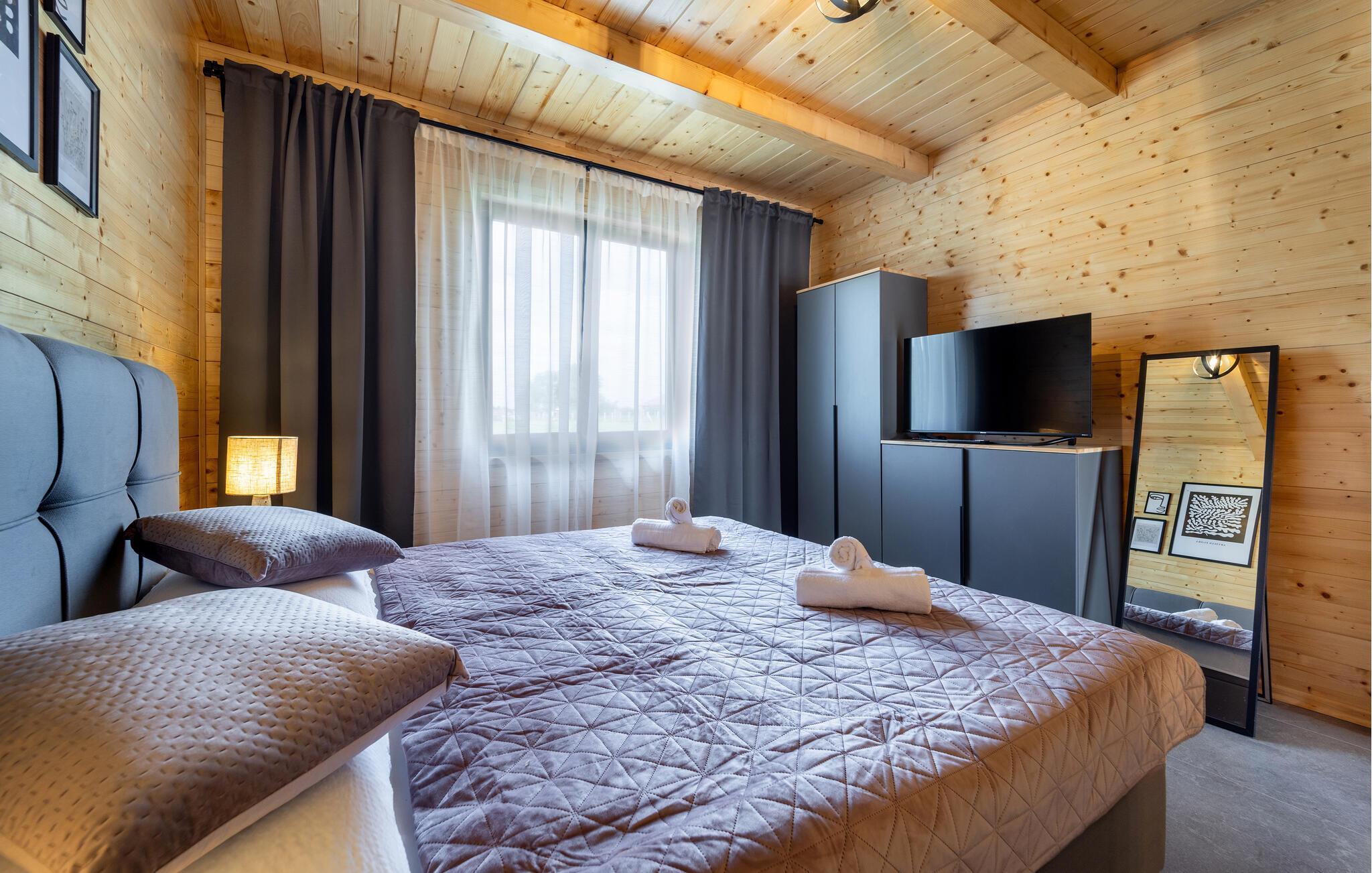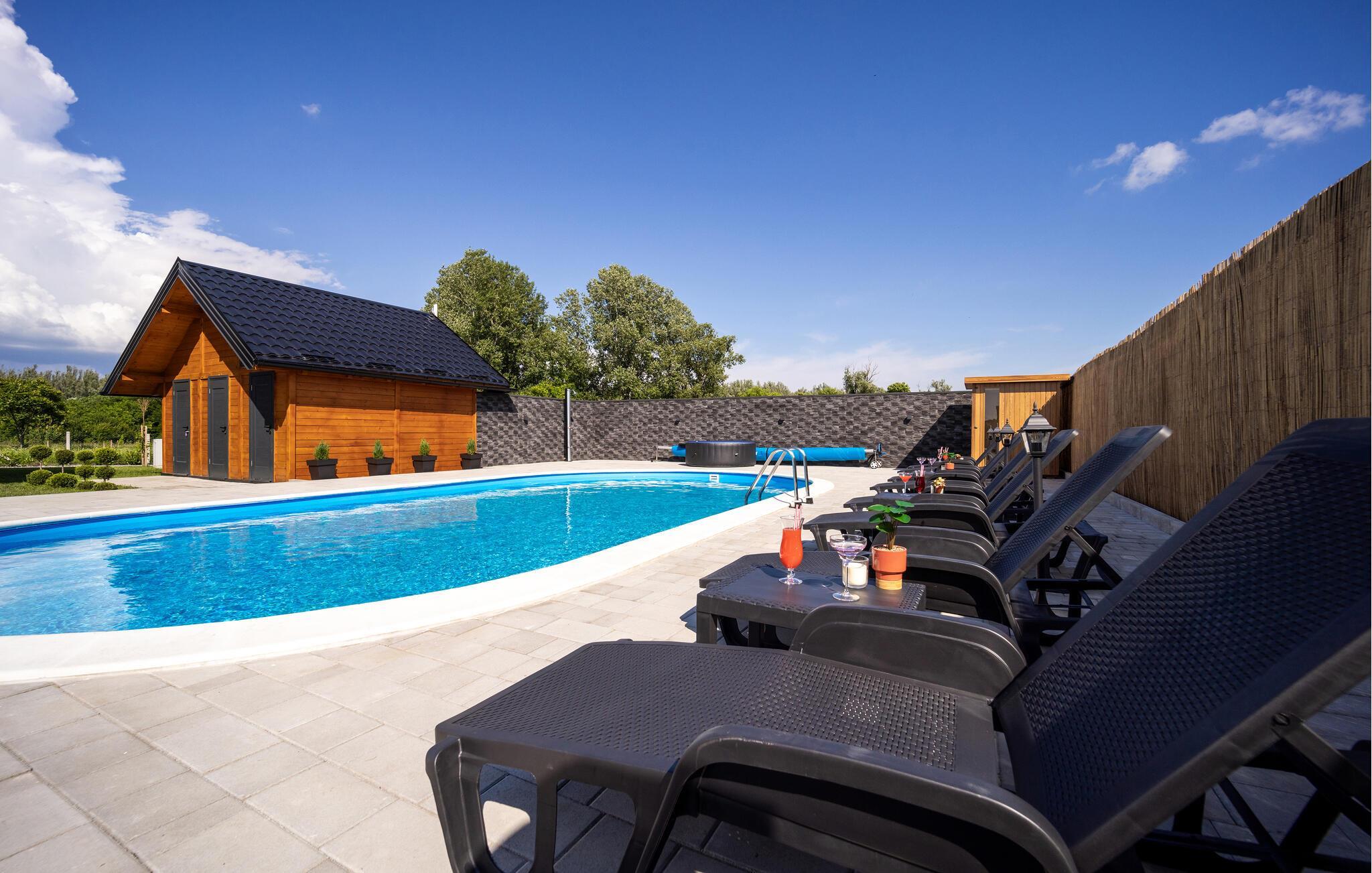 In der Nähe des Naturparks Kopacki rit empfängt Sie dieses komfortable und moderne Holzhaus mit schönem Gemeinschaftsgarten.