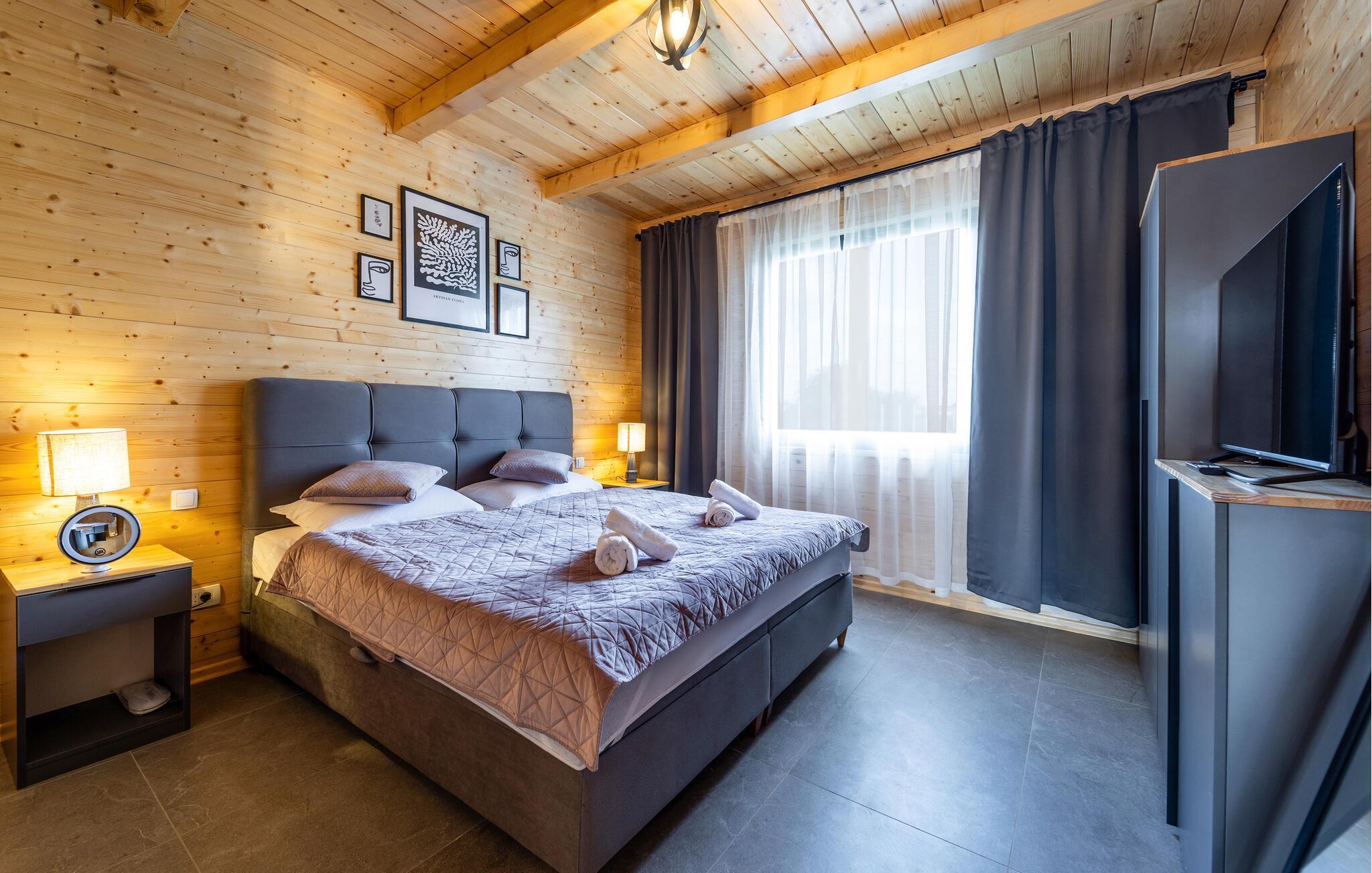 Entfliehen Sie dem Stadtleben und dem Treiben der Adriaküste und verbringen unweit von Osijek einen erholsamen Urlaub in diesem großartig ausgestatteten Ferienhaus. Auf zwei Etagen können Sie sich dank des Designs und der hochwertigen Einrichtung wie zuhause fühlen. Kochen, essen und spielen Sie im Erdgeschoss oder trinken Ihren Morgenkaffee auf Ihrer privaten Veranda. Ihre Kinder können währenddessen im Gemeinschaftsgarten spielen oder im Gemeinschaftspool baden und die Ferientage mit neuen Freundschaften verbringen.