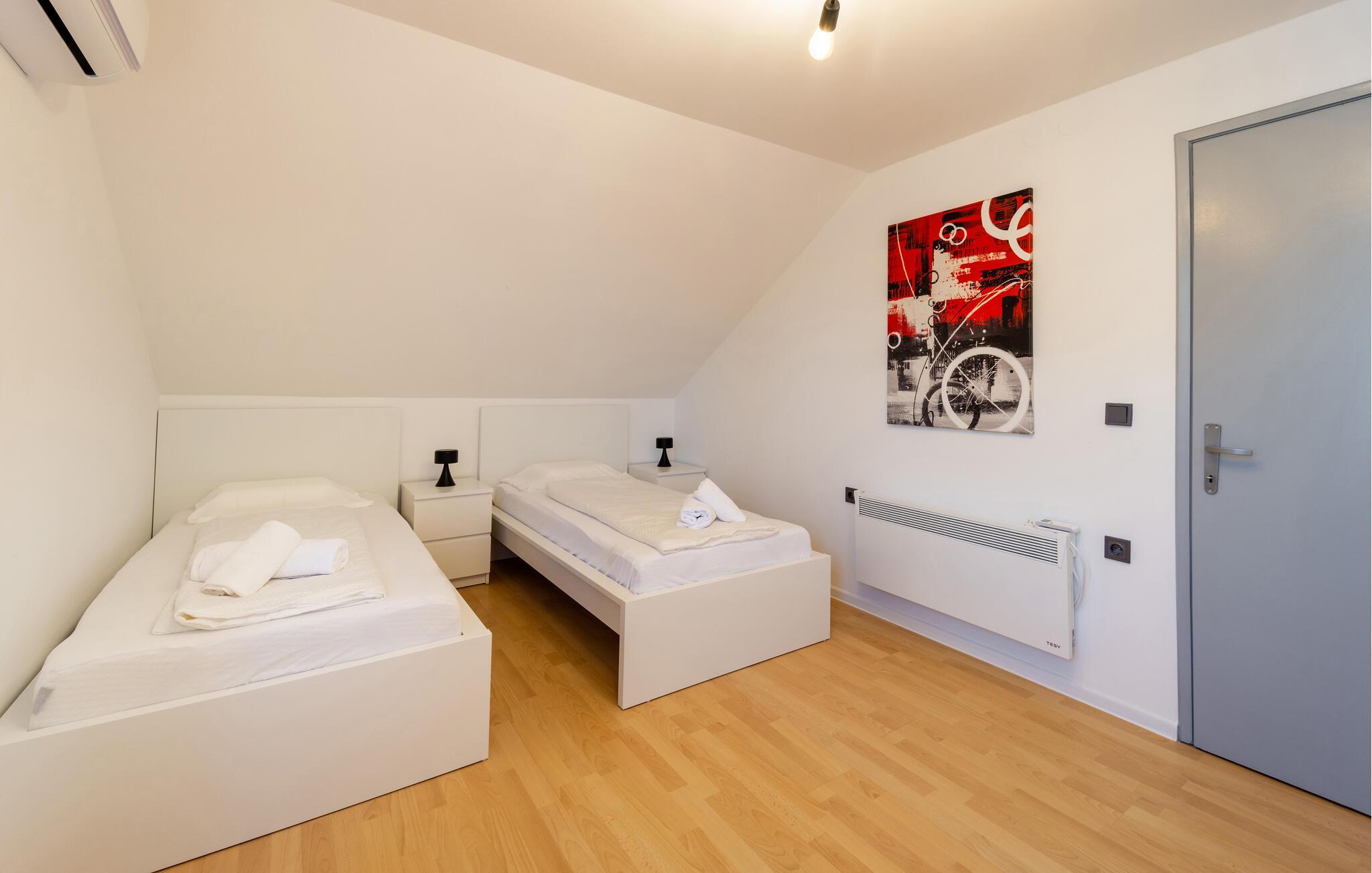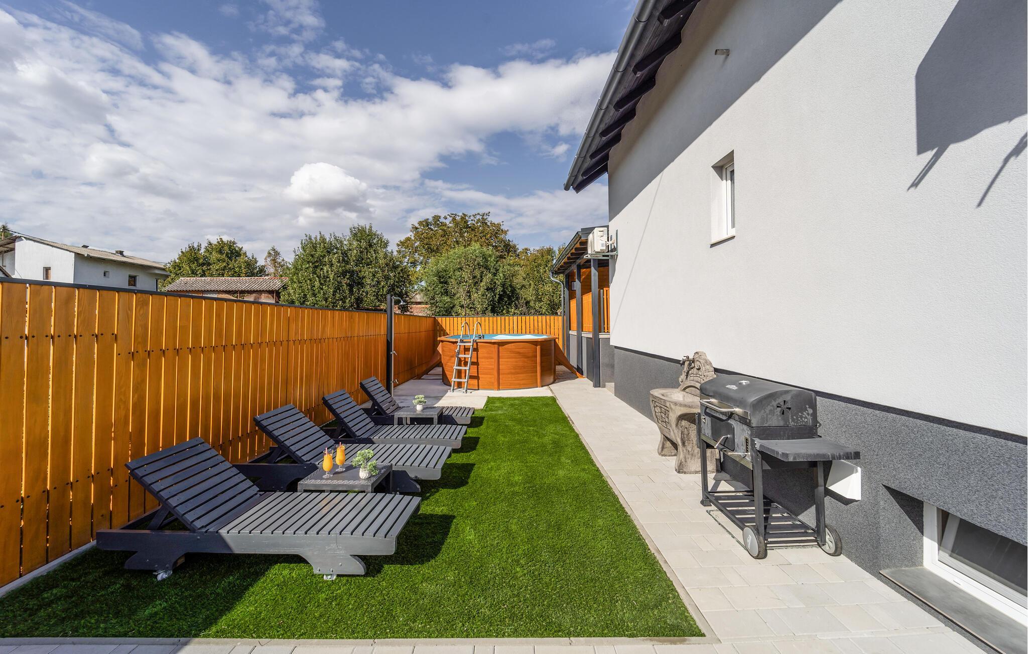 Willkommen in Ihrem großzügigen Ferienhaus in Bilje, nahe Osijek, dem idealen Ort für einen erholsamen Urlaub mit der ganzen Familie oder Freunden. Die großzügigen, lichtdurchfluteten Räume laden zum Entspannen ein, und der moderne Einrichtungsstil sorgt für ein angenehmes Ambiente. Beginnen Sie den Tag mit einem erfrischenden Bad im privaten Pool im Außenbereich. Nutzen Sie die komfortable Terrasse, um bei einer Tasse Kaffee die morgendliche Ruhe zu genießen, oder veranstalten Sie am Abend einen gemütlichen Grillabend im Freien. Die Terrasse bietet genügend Platz, um sich zu entspannen und die frische Luft zu genießen.