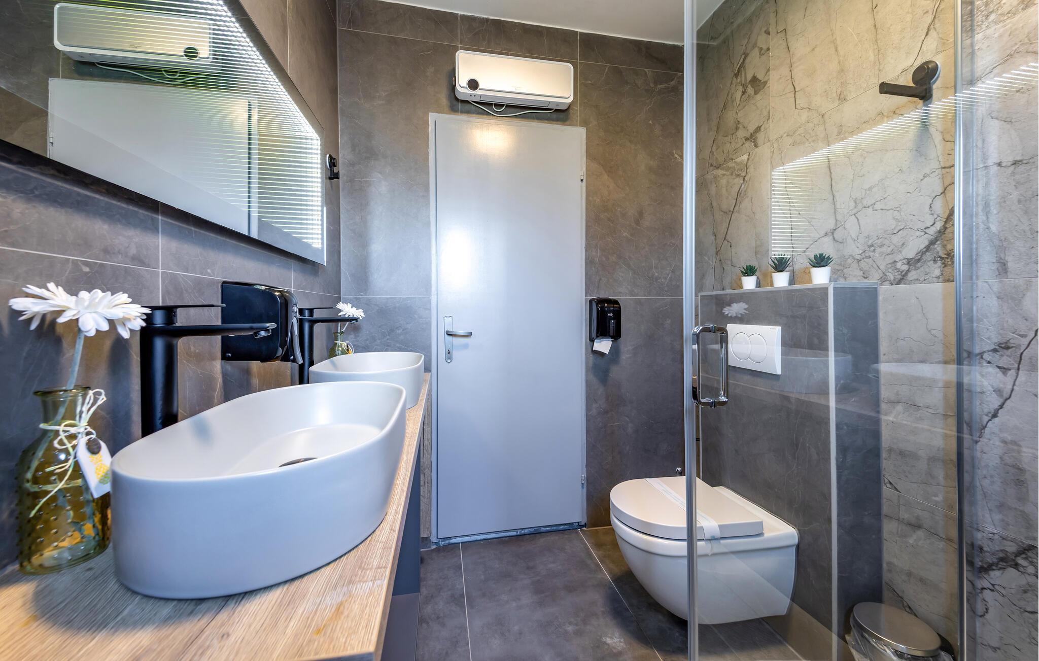 Badezimmer 15m2 (nr. 2) - WC. Warmes und kaltes Wasser. Dusche