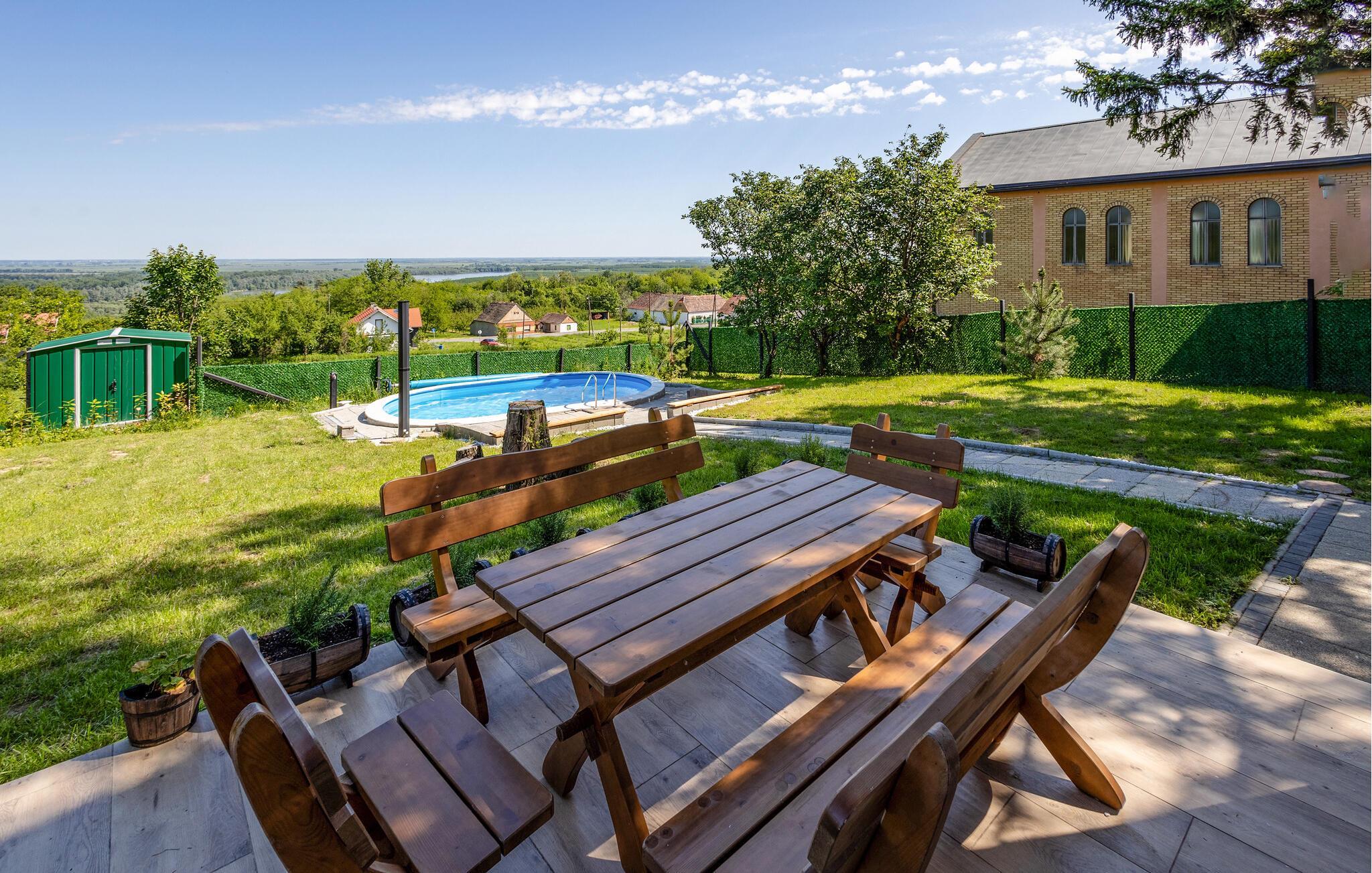 Nahe der kroatisch-serbischen Grenze heißt Sie dieses zweistöckige und schöne Haus willkommen. Betreten Sie das ansprechend und komfortabel eingerichtete Haus, das keine Ihrer Wünsche offenlässt und zu geselligen Abendstunden am großen Esstisch zusammenkommen. Di überdachte Terrasse im 1. Stockwerk ist eine wahre Wellnessoase. Entspannen Sie Ihre Muskeln im Whirlpool und relaxen sich auf den Loungemöbeln mit Blick auf das serbische Naturreservat Gornje Podunavlje. Auch der Garten hält allerhand für Sie bereit. Spielen Sie im Pool und grillen am Abend unter freiem Himmel.