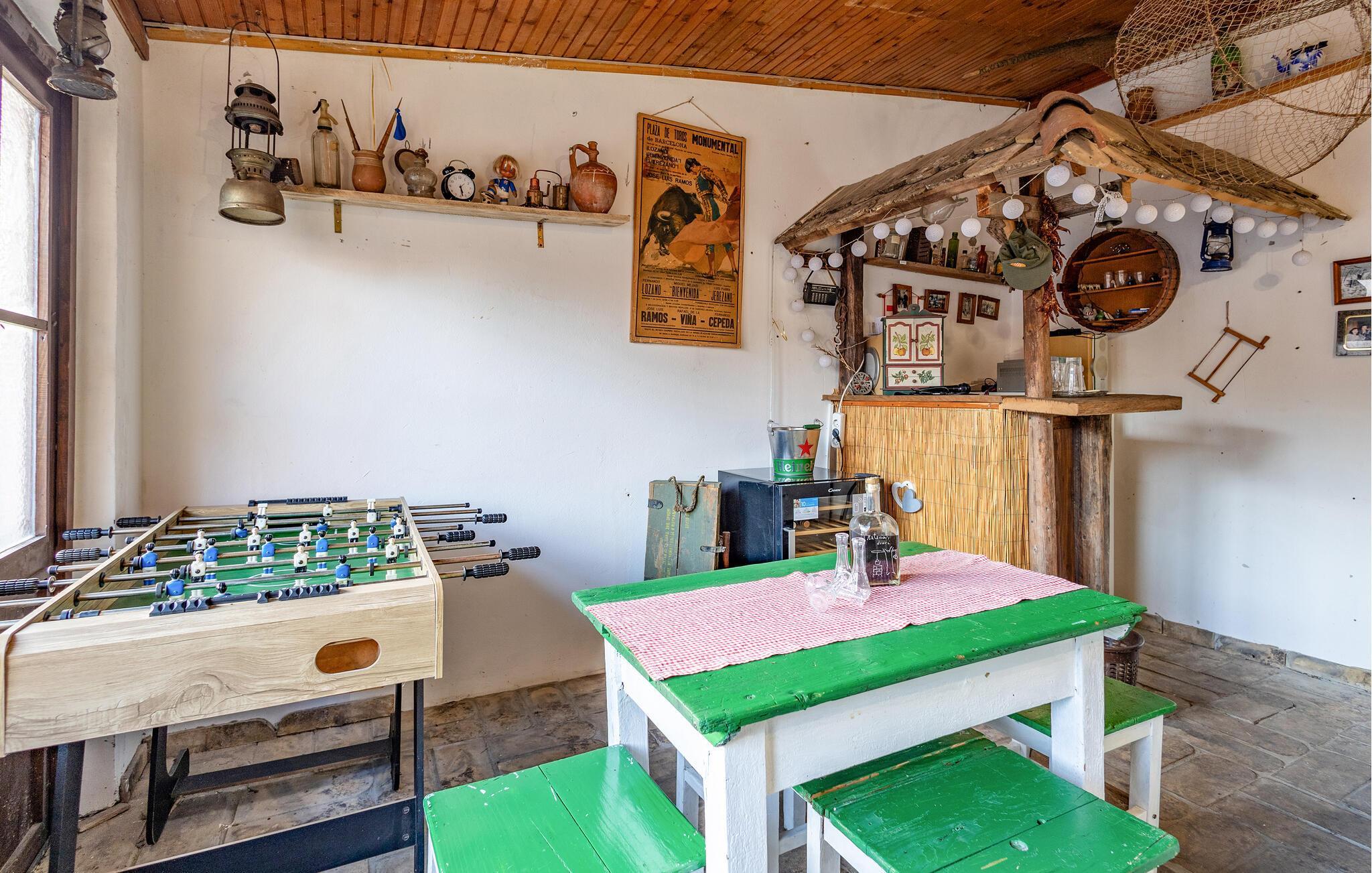 In dieser geräumigen Ferienwohnung, die sich über zwei Etagen erstreckt, erwartet Sie ein erholsamer Urlaub mit der Familie. Die gemütliche Einrichtung und das warme Ambiente, besonders im Wohnzimmer mit Kaminofen, sorgen für Wohlfühlatmosphäre. Die Taverne mit Bar und Tischfußball bietet Ihnen einen geselligen Treffpunkt für gemeinsame Abende. Im Außenbereich finden Sie zahlreiche Spielgeräte, einen Pool und einen Whirlpool, in dem Sie sich entspannen oder den Kindern beim Spielen zusehen können – ideale Bedingungen für eine rundum gelungene Familienauszeit.