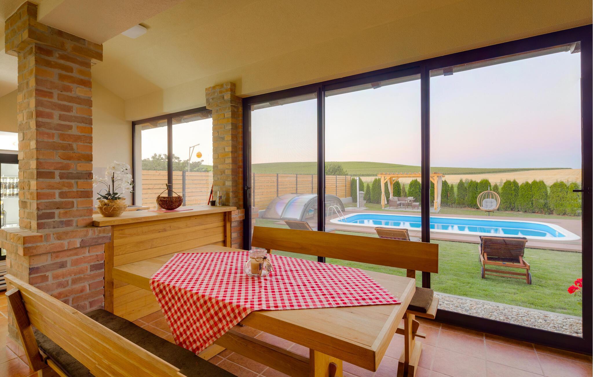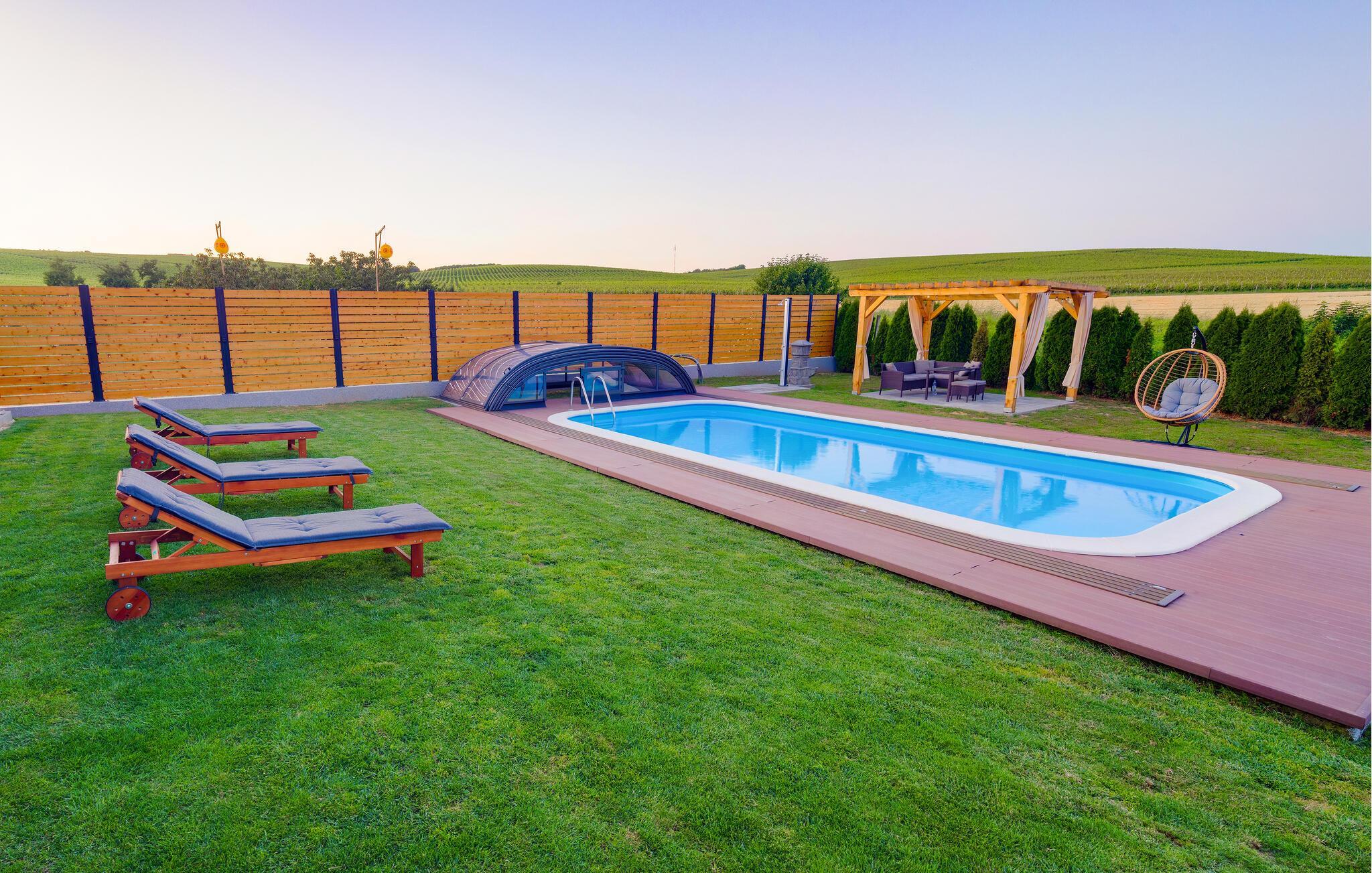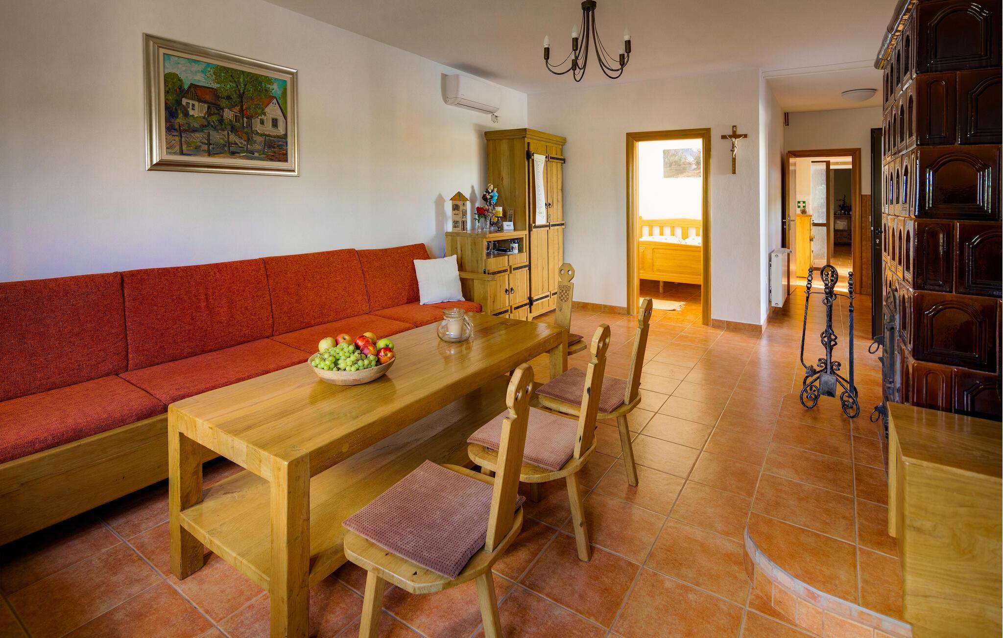 Eingebettet in die sanft hügelige Idylle der Weinberge, lädt dieses Ferienhaus dazu ein, Sie mit seiner gelungenen Kombination aus Komfort und rustikalen Elementen zu verzaubern. Entspannen Sie im lichtdurchfluteten Ambiente aus Naturstein und Holz, das eine warme und einladende Atmosphäre schafft. Kochen Sie in der stilvollen Landhausküche Ihre Lieblingsgerichte oder genießen Sie gesellige Abende im urigen Weinkeller. Gönnen Sie sich eine Auszeit im luxuriösen Wellnessbereich mit Sauna und Whirlpool, um vollkommen abzuschalten.