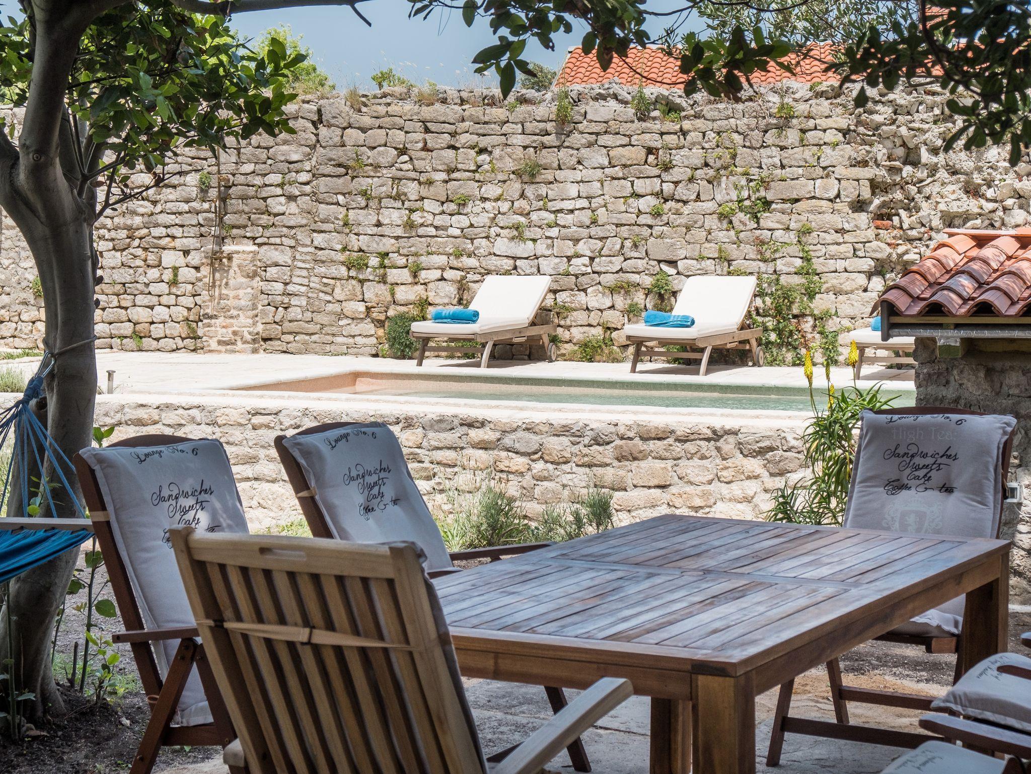 Umgebung des Objekts (Ordentlich), Hof (660m2, Sitzbereich), Parkplatz (Anzahl der Parkplätze: 5, Entfernung vom Objekt: 20 m), Pool: privat, Dimensionen: 8m x 3m x 1.5m, Wassertyp: Süßwasser, Heizung: Ja, WiFi Internet, Bootsanlegeplatz (Entfernung vom Objekt: 30 m, Bootsanlegeplatztyp: an der Küste), Fahrrad (Anzahl: 8), Föhn, Bügeleisen, Bügelbrett, Sonnenschirm, Liegestühle, Kinderbett