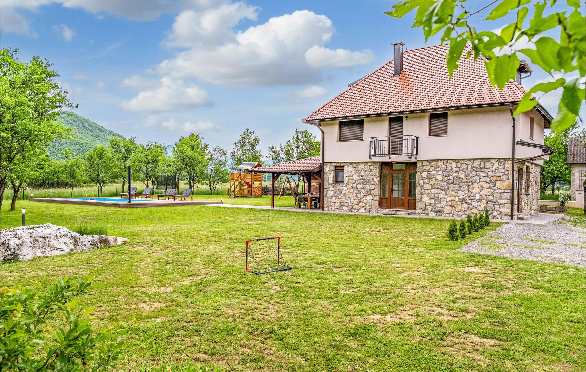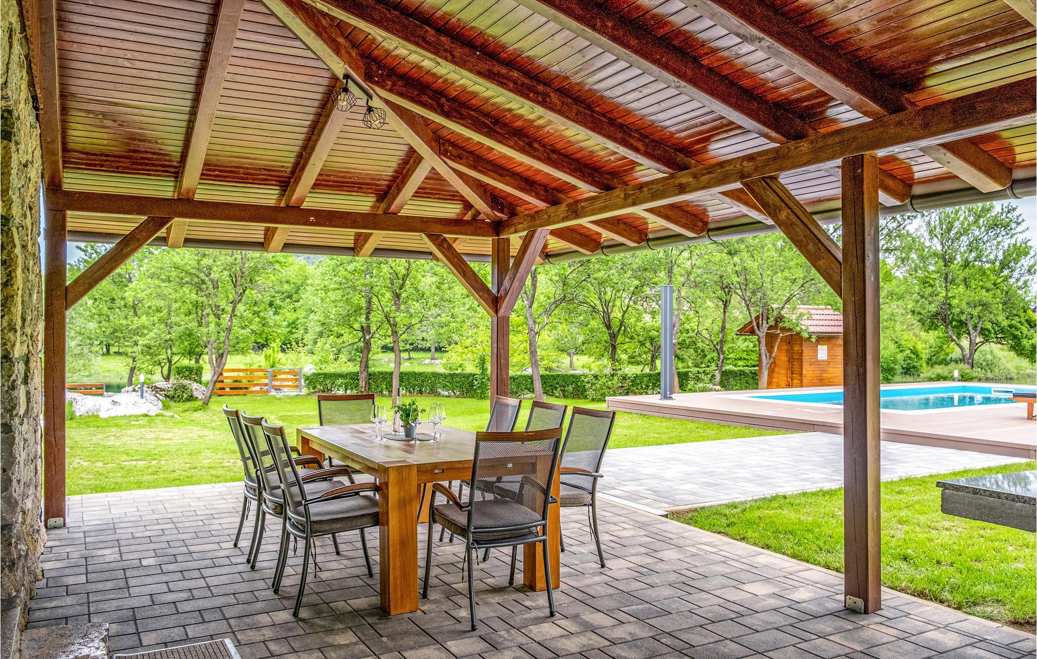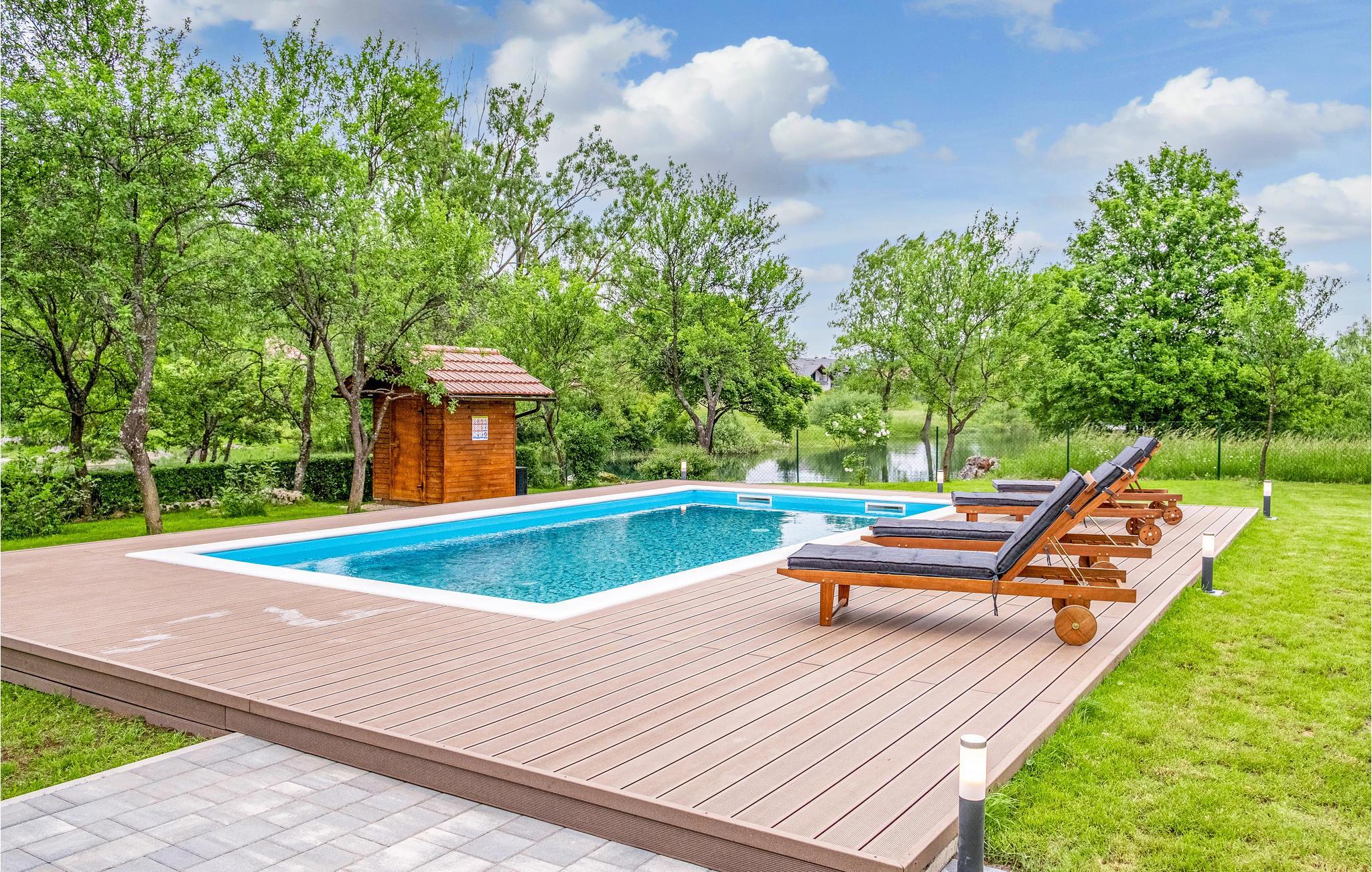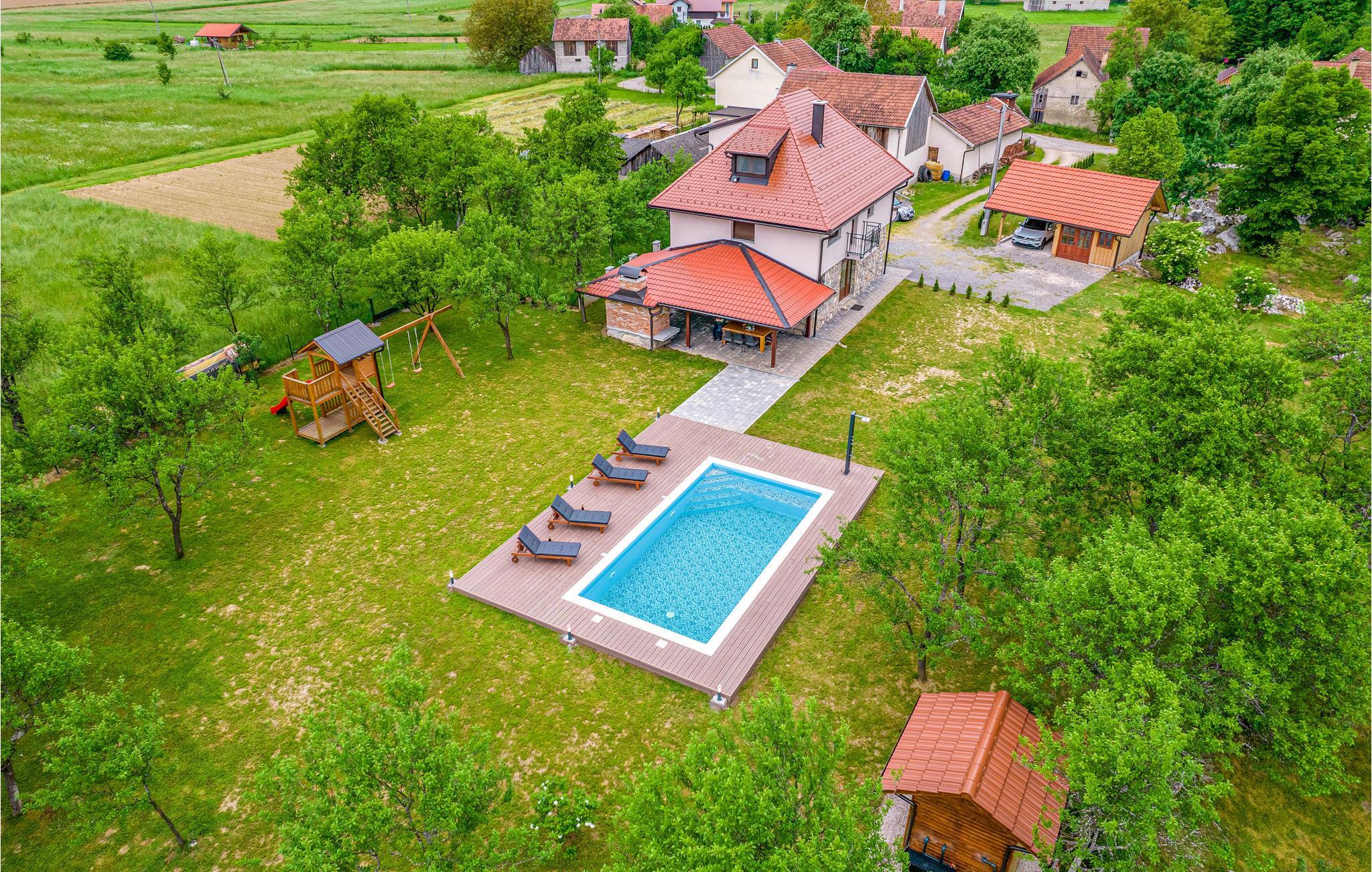 Nicht weit vom Zentrum von Otocac entfernt befindet sich dieses schöne Haus am Fluss Gacka mit einem Privatstrand am Fluss. Das modern eingerichtete und geräumige Haus ist ideal für ein bis zwei Familien. Durch die komplette Ausstattung können Sie einen unbeschwerten Urlaub genießen. Lassen Sie Ihre Kinder auf den Spielgeräten, am Fluss und auf dem großen grünen Grundstück spielen, während Sie sich auf den Liegen mit Blick über die bezaubernde Landschaft entspannen. Am Abend rufen Sie zu einem leckeren Barbecue vom Steingrill, dass Sie auf der auf der überdachten Terrasse genießen können.