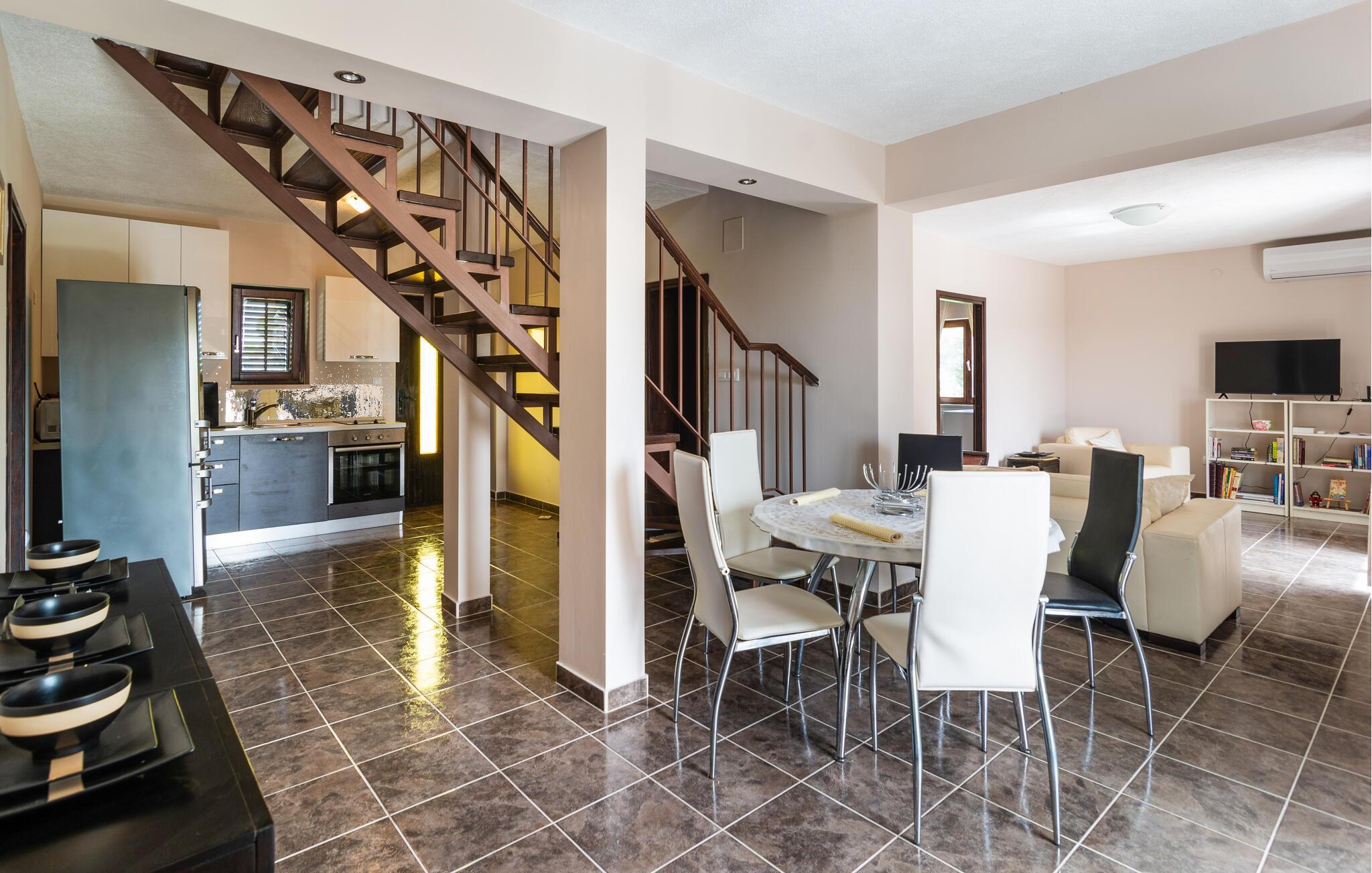 Die Wohnung erstreckt sich über zwei Stockwerke und bietet viel Platz für die ganze Familie. Die stilvolle Einrichtung und das moderne Design schaffen ein angenehmes Ambiente. Im Erdgeschoss befinden sich das großzügige Wohnzimmer, das ideal für gesellige Stunden mit der ganzen Familie ist und die gut ausgestattete Küche, die zum gemeinsamen Kochen einlädt. Das obere Schlafzimmer, wie auch die Schlafzimmer im unteren Stockwerk sorgen für erholsame Nächte.