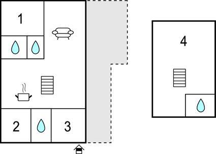 Badezimmer 4m2 (nr. 1) - WC. Warmes und kaltes Wasser. Dusche