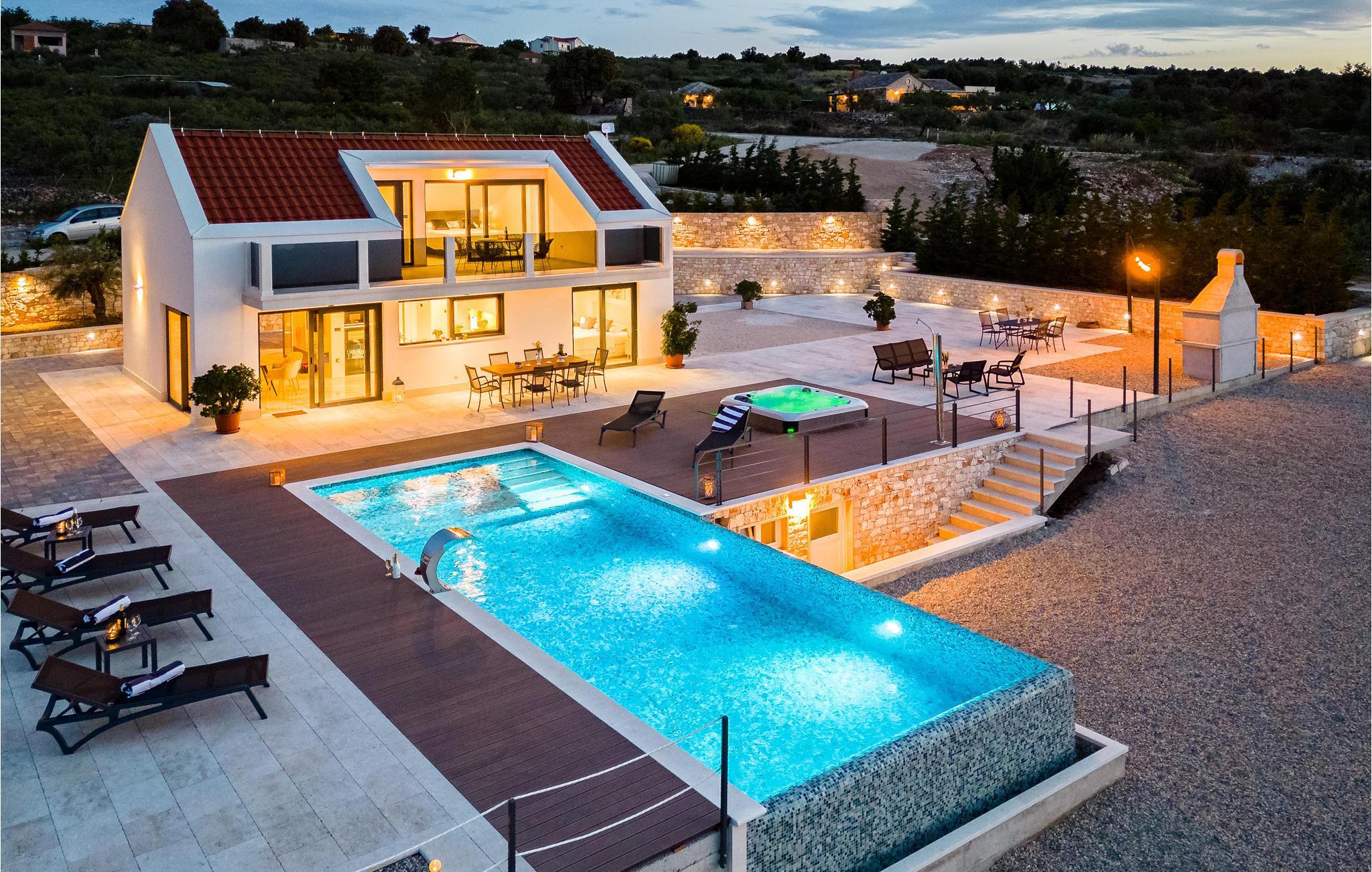 Großzügiges Ferienhaus mit Infinitypool und Außenwhirlpool.