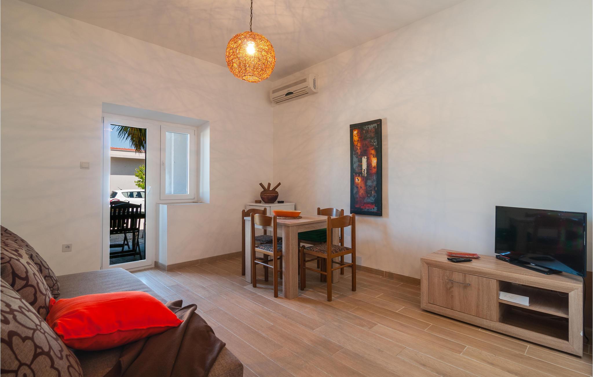 Diese taghelle Unterkunft bietet Ihnen alles, was Sie für einen Urlaub benötigen würden. Im Innenraum erwartet Sie eine einfache Ausstattung, die aber mit der Auswahl von modernen und stilvollen Dekorationen und Möbeln punktet. Machen Sie es sich bei kühleren Tagen im Innenraum auf dem Sofa oder bei Tisch gemütliche oder nutzen Sie die offene Terrasse mit für ein entspanntes Frühstück mit Ihrer Begleitung. Zudem haben Sie auch Zugang zu einer Außenküche mit Grill, die gemeinsam mit den anderen Apartments des Hauses geteilt werden.