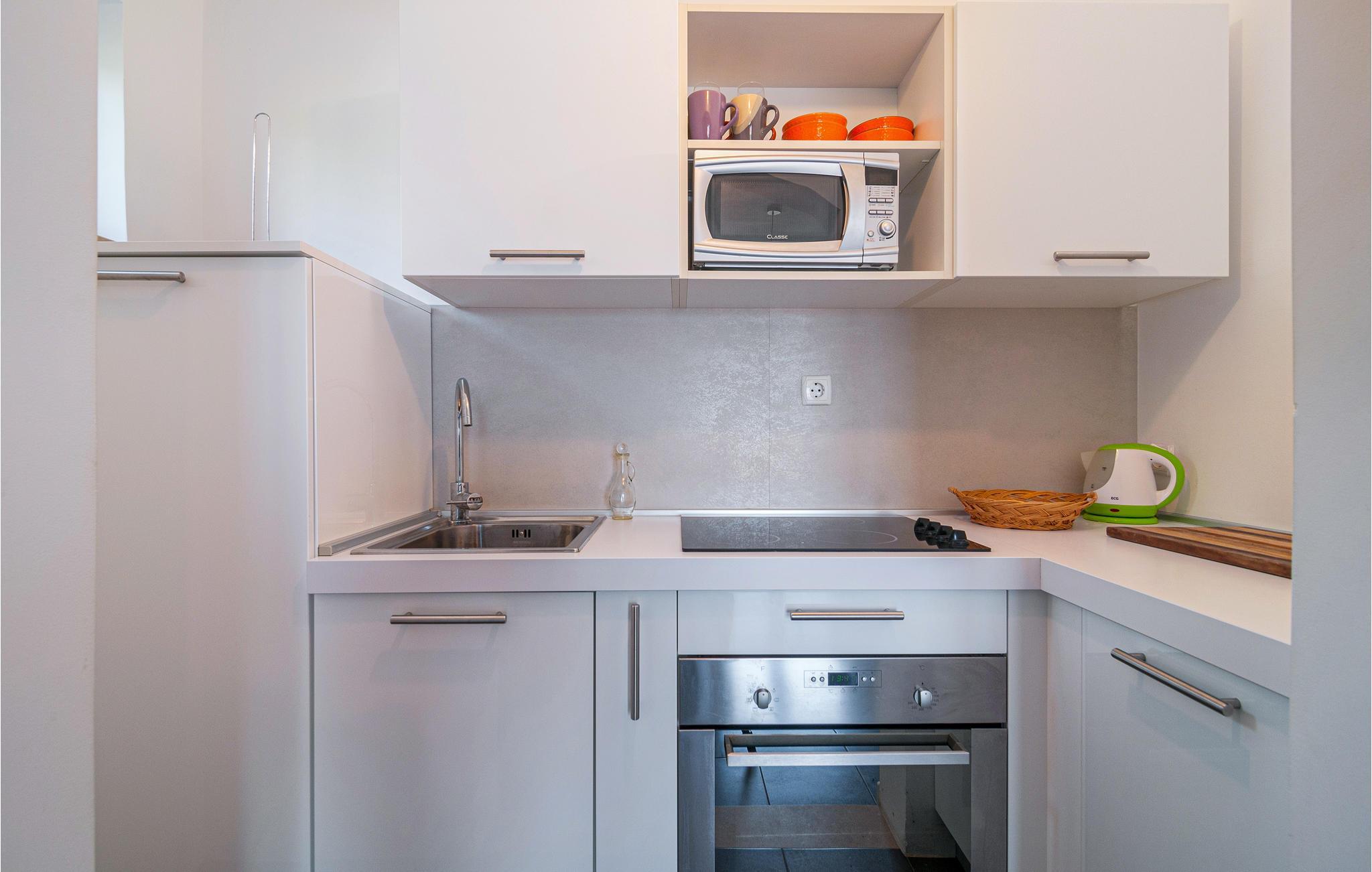 Diese taghelle Unterkunft bietet Ihnen alles, was Sie für einen Urlaub benötigen würden. Im Innenraum erwartet Sie eine einfache Ausstattung, die aber mit der Auswahl von modernen und stilvollen Dekorationen und Möbeln punktet. Machen Sie es sich bei kühleren Tagen im Innenraum auf dem Sofa oder bei Tisch gemütliche oder nutzen Sie die offene Terrasse mit für ein entspanntes Frühstück mit Ihrer Begleitung. Zudem haben Sie auch Zugang zu einer Außenküche, die gemeinsam mit den anderen Apartments des Hauses geteilt werden.