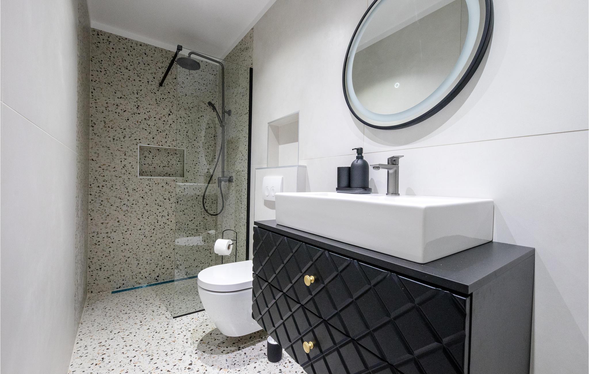 Badezimmer 5m2 (nr. 2) - WC. Warmes und kaltes Wasser. Dusche