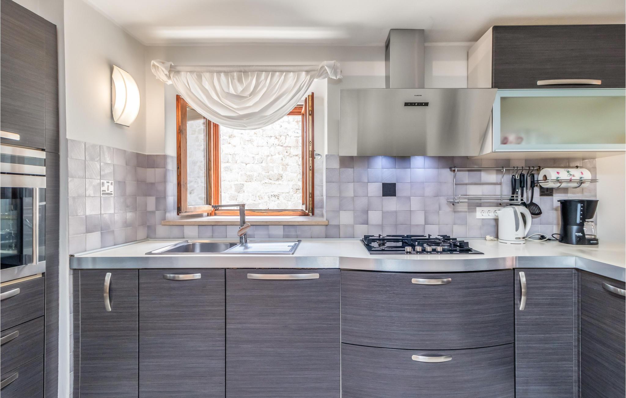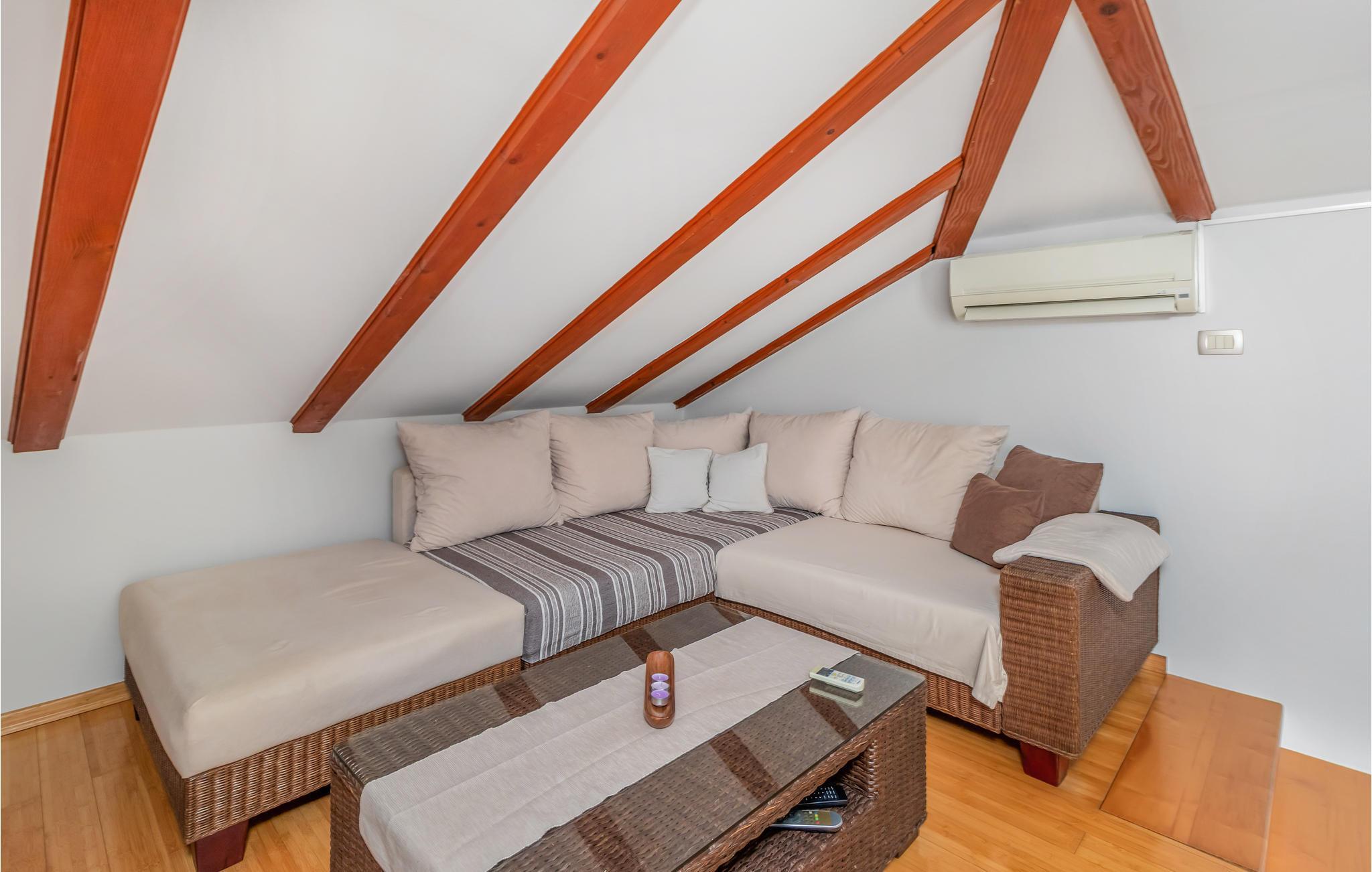 Willkommen in diesem modernen und schönen Reihenhaus. Kommen Sie mit Ihrer Familie hier an und genießen die komfortablen Räume und Stockwerke, die mit sichtbaren Elementen des Steinhauses dekoriert sind. Die Einrichtung ist modern, hell und einladend und lädt Sie ein die Beine hochzulegen. Freuen Sie sich auf zwei Wohnräume und genießen den Ausblick von der oberen Terrasse mit Blick auf das Meer und den Glockenturm von Rab.