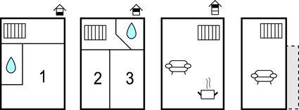 Badezimmer 4m2 (nr. 1) - WC. Warmes und kaltes Wasser. Dusche