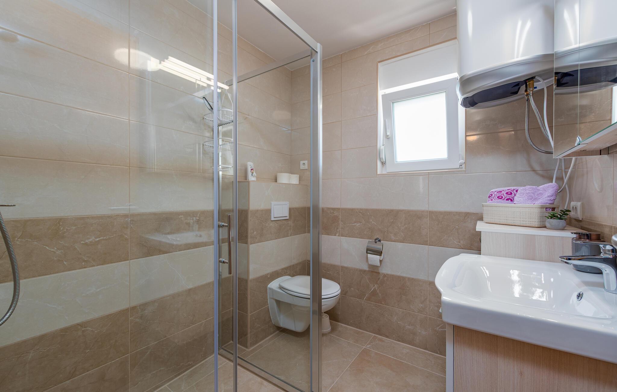 Badezimmer 4m2 (nr. 1) - WC. Warmes und kaltes Wasser. Dusche