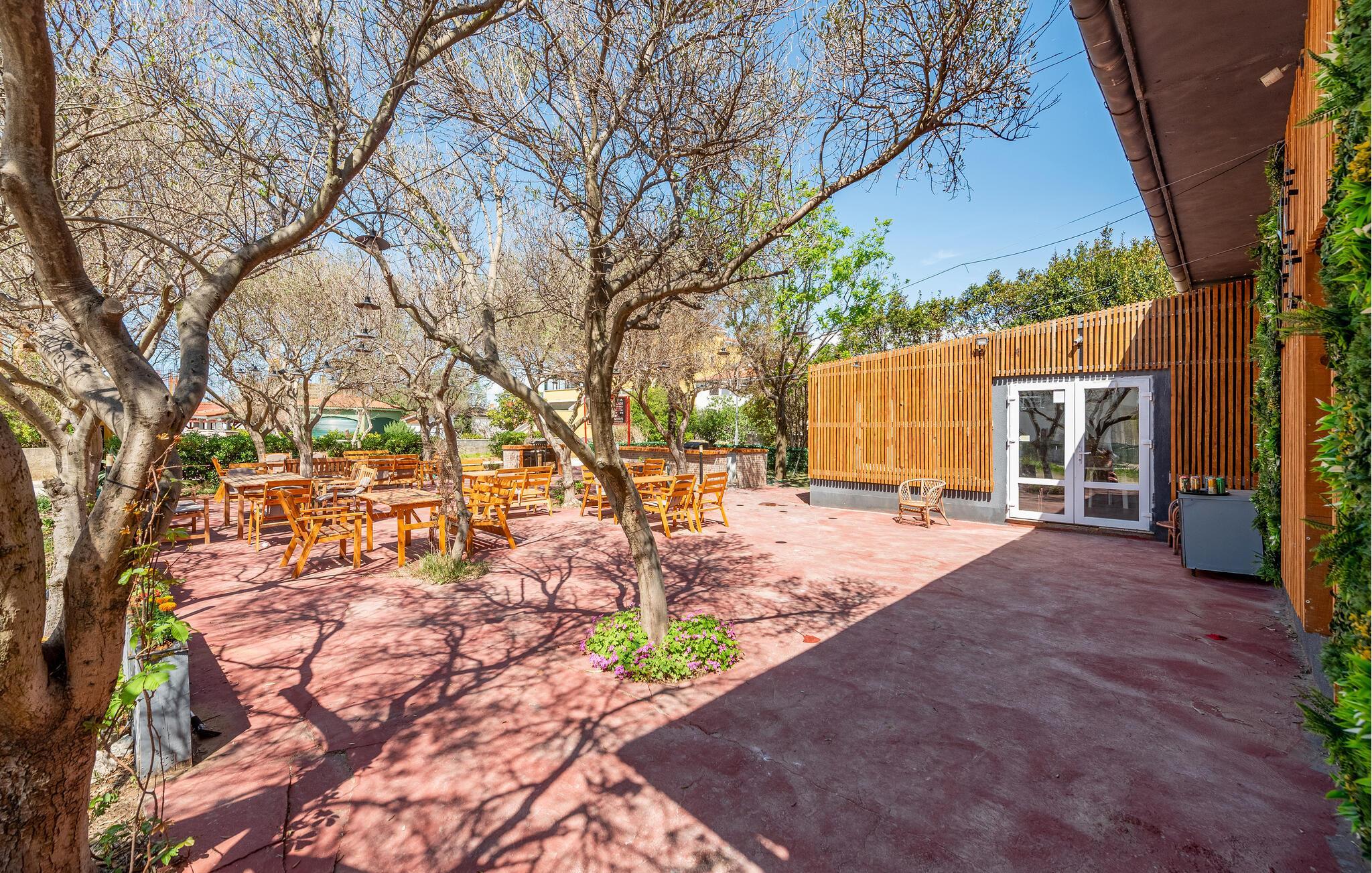 Der Außenbereich ist durchdacht gestaltet. Unter schattenspendenden Bäumen laden zahlreiche Sitzgelegenheiten zum Verweilen ein. Lassen Sie den Tag bei einem Getränk oder einer Mahlzeit im hauseigenen Restaurant ausklingen, ideal für kulinarische Ausflüge ohne weite Wege.