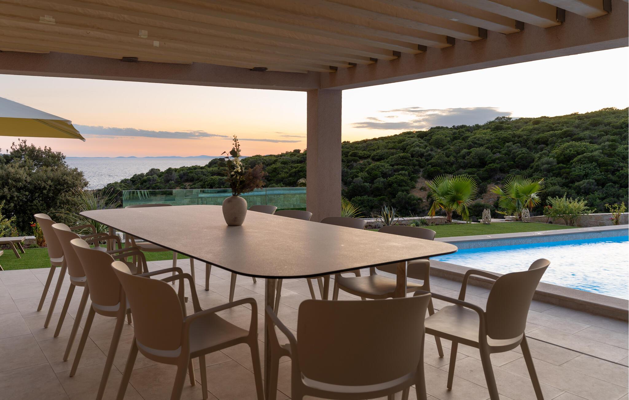 Neben dem bezaubernden Blick aufs Meer verwöhnt Sie der elegante Außenbereich mit diversen Terrassen, die mit bequemen Outdoor-Möbeln ausgestattet sind. Erfrischen Sie sich zu jeder Tages- oder Nachtzeit im herrlichen Pool und zelebrieren Sie die gemeinsame Zeit bei stimmungsvollen Grillabenden in der warmen Meeresbrise.