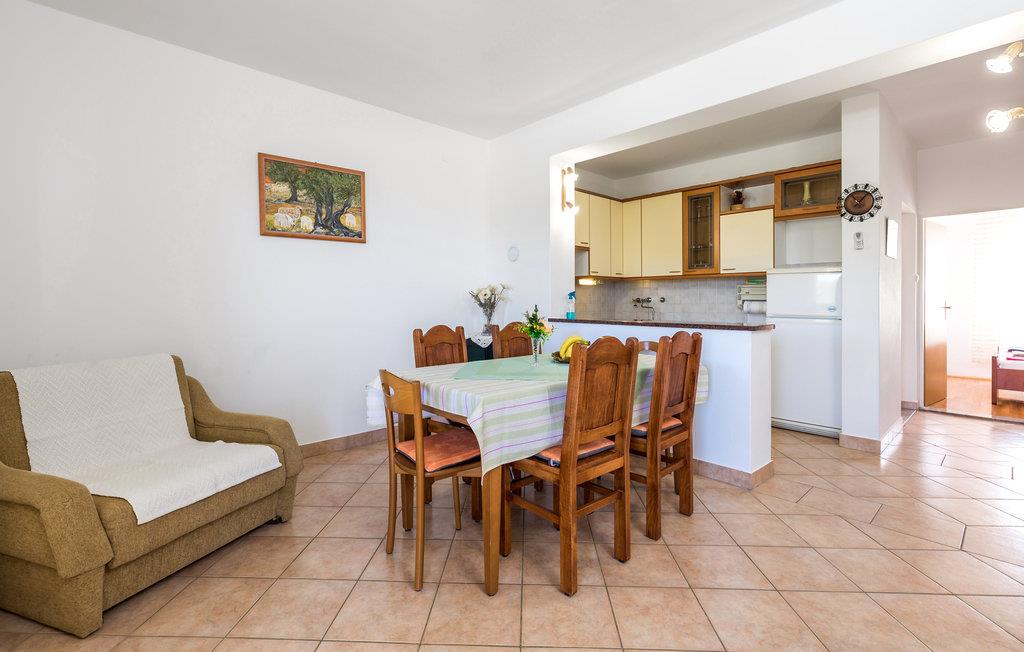 Die gepflegte und komfortabel eingerichtete Wohnung begrüßt ihre Gäste im 1. Stock eines Hauses und bietet einen schönen Bick auf das Meer. 5 Personen finden hier bequem Platz. Dank einer Klimaanlage genießen Sie hier auch an heißen Sommertagen angenehme Temperaturen.