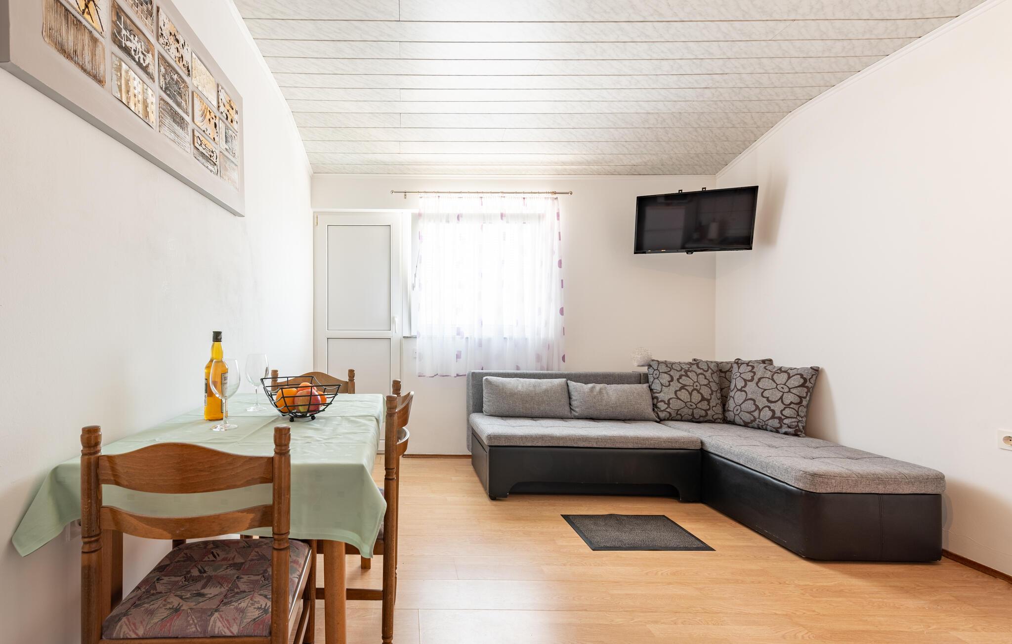 Diese gepflegte Ferienwohnung liegt nur wenige Schritte von einem der vielen wunderschönen Strände der Insel Pag entfernt. Machen Sie es sich hier mit Freunden oder der Familie bequem und freuen Sie sich auf harmonische Mahlzeiten am einladenden Esstisch sowie auf gemütliche Filmabende auf der großzügigen Sofalandschaft.