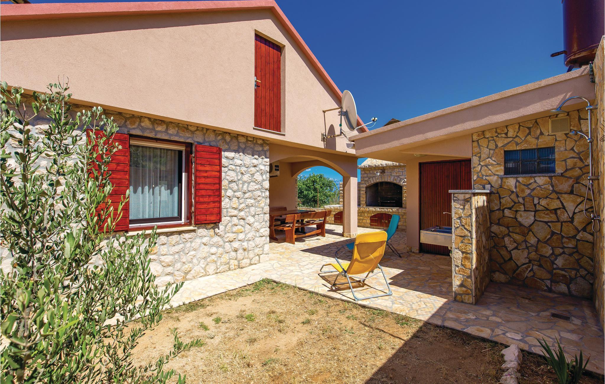 Ruhen Sie Ihren Körper und Ihre Seele aus in diesem kleinen Ferienhaus, in der Ortschaft Bosana auf der Insel Pag und nicht weit von herrlichen Kieselstränden entfernt. Entspannen Sie sich auf der überdachten Terrasse vor dem Haus und bereiten Sie Fisch- und Fleischgerichte auf dem Grill zu, der sich auf dem umzäunten Grundstück befindet. Auf dem Grundstück ist für Ihren Komfort eine zusätzliche Toilette vorhanden. Die Ortschaft Pag auf der gegenüberliegenden Seite der Bucht und das populäre Novalja, erreichen Sie in nur wenigen Autominuten. Die Insel Pag ist bekannt für ihren Ziegenkäse, ihr Lammfleisch und gute Restaurants. Erkunden Sie die Insel auch mit dem Fahrrad.