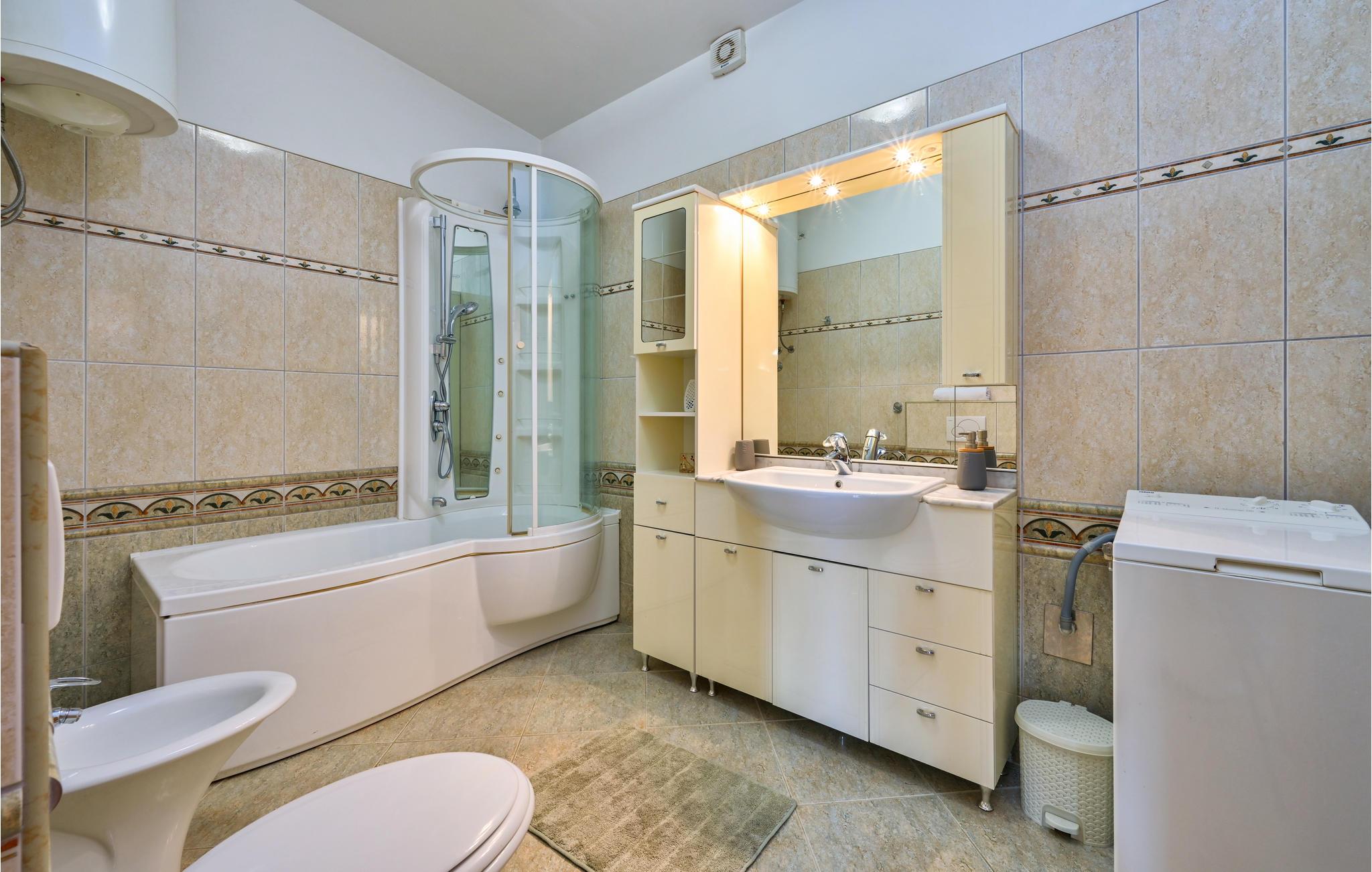 Entspannen Sie sich in völliger Ruhe auf der riesigen privaten Terasse. Hier finden Sie einen gemauerten Grill vor, auf dem Sie sich ein leckeres Barbecue zubereiten können. Ebenso gibt es darauf genug Platz für eine Tischtennisplatte und Raum zum Sitzen und Essen. Da die Terasse vollständig überdacht ist, bietet Sie somit den ganzen Tag über Schatten und lädt herrlich zum Verweilen ein. Genießen Sie Ihren morgendlichen Kaffee auf dem Balkon und lassen Sie Ihren Blick über die herrliche Landschaft der Insel Pag schweifen. Der Innenbreich ist sehr komfortabel ausgestattet. Hier finden Sie alles vor, was Sie für einen guten Urlaub brauchen.