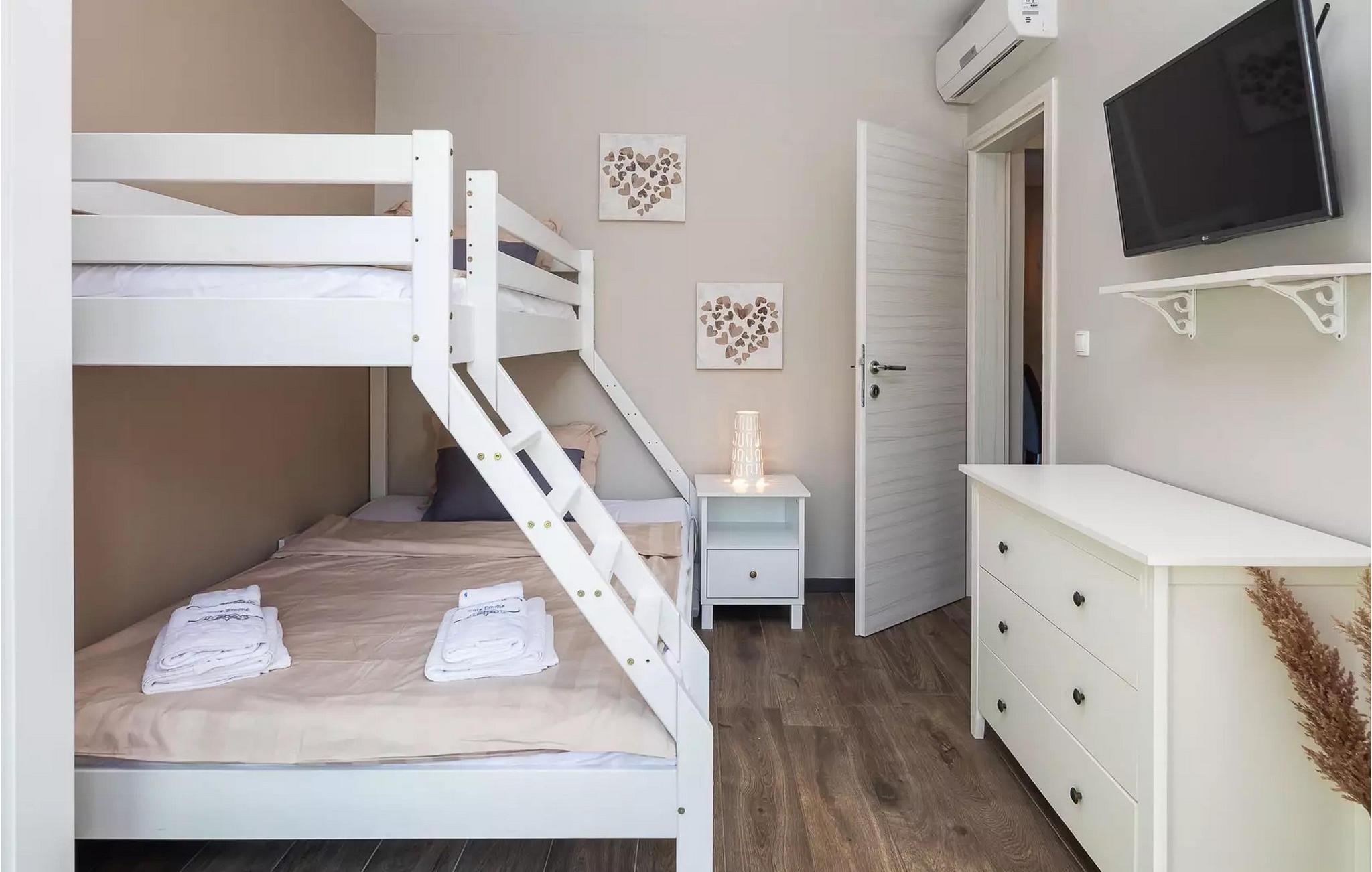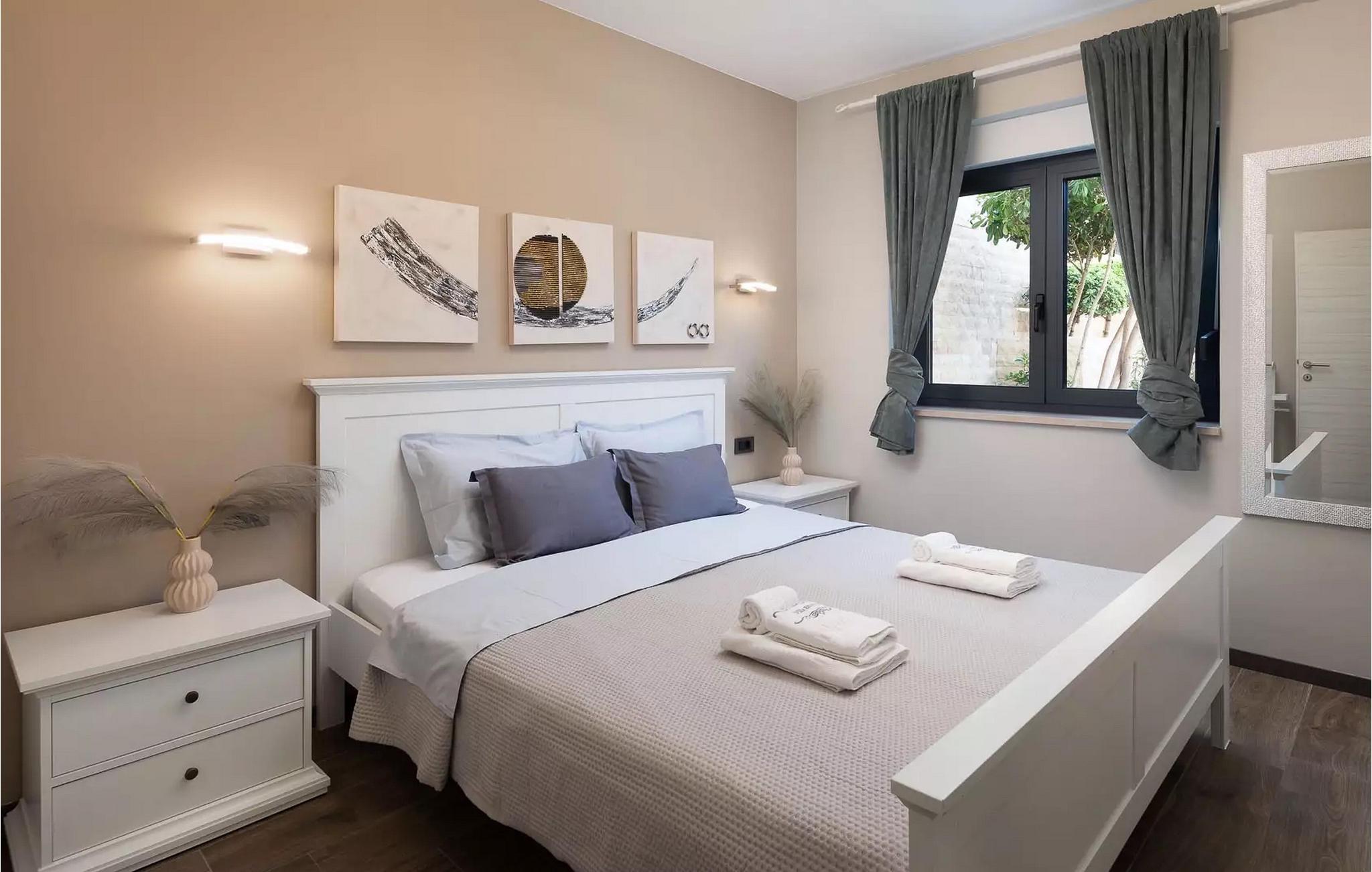 Sobald Sie die Villa Emma Pag betreten, wird Ihnen bewusst, dass man nicht weit reisen muss, um wahre Schönheit zu entdecken. Dieses Ferienhaus mit privatem Pool befindet sich in einer großartigen Lage und bietet in vier separaten Wohnungen Platz für bis zu 14 Personen. Es ist ideal für Familien oder größere Reisegruppen, die die Privatsphäre separater Wohnungen schätzen und zugleich in einem Haus verweilen möchten.