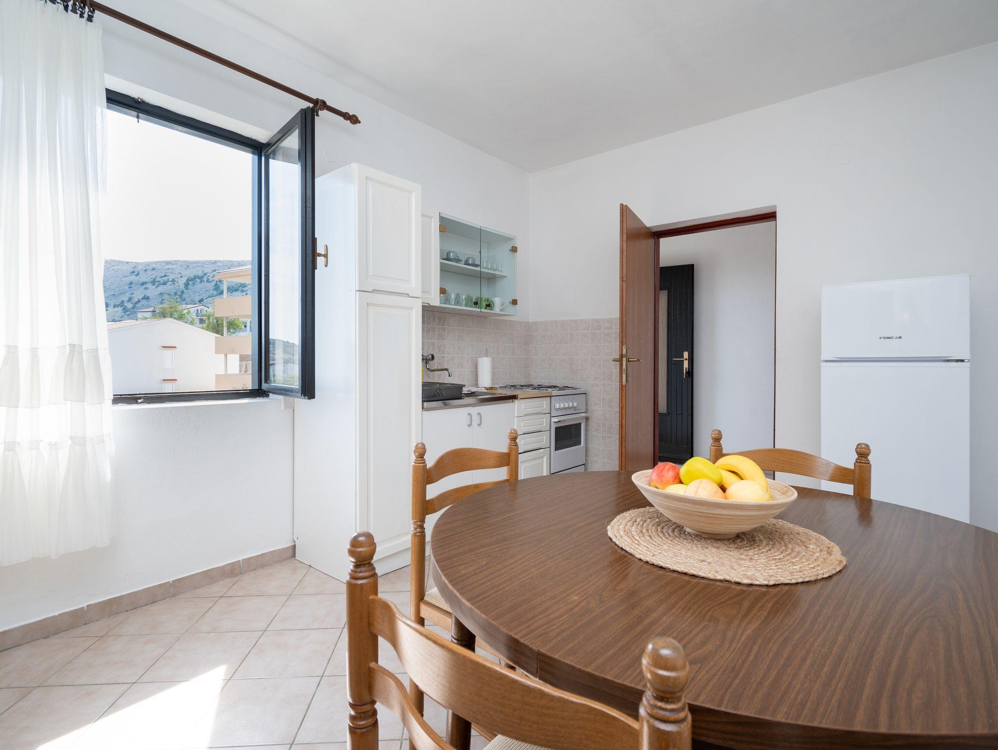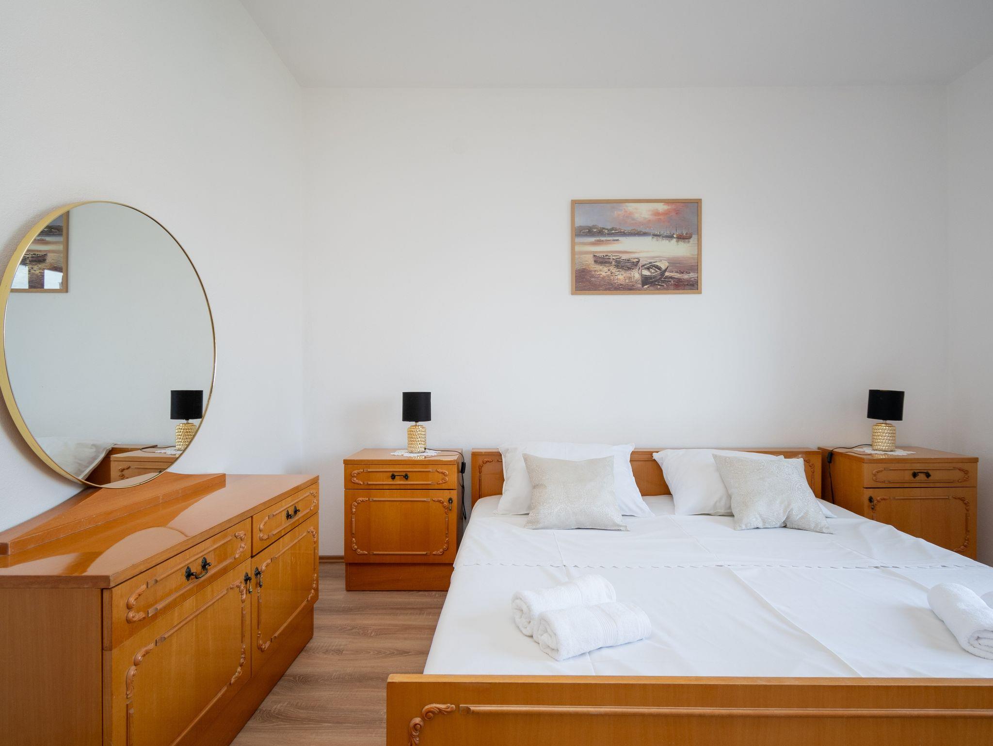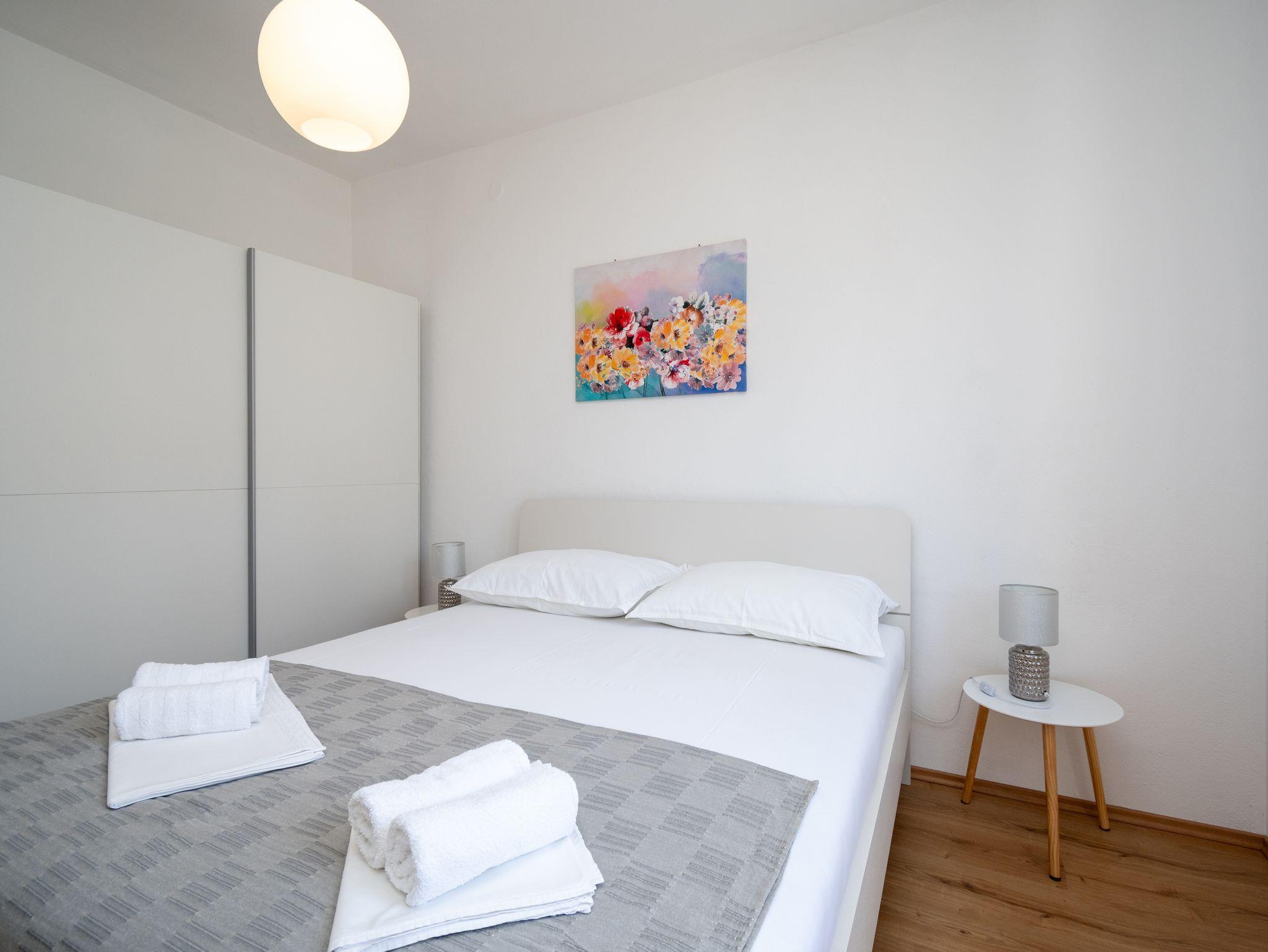 Ferienwohnung bietet Platz für 4 Gäste. Die Betten sind in Schlafzimmern, die es 2 gibt, innerhalb einer Gesamtfläche von 51m2, angeordnet. Die Gäste haben eine eigene Terrasse zur Verfügung, auf der sie in warmen Sommernächten genießen können. Das Apartment bietet Meerblick. Es ist erlaubt, Speisen auf dem Gemeinschafts-Grill vorzubereiten. IM PREIS INBEGRIFFEN: Kurtaxe, Endreinigung, Klimatisierung, Parkplatz, Internet. VERBINDLICHE ZUSÄTZLICHE KOSTEN: Aufzahlung für Kurzaufenthalte (prozentualer Zuschlag pro Nächtigungsanzahl: 30% - 1, 20% - 2, 10% - 3). Die Verfügbarkeit zusätzlicher Dienstleistungen in Ihrem reservierten Termin und die Preise derselben (falls nicht aufgeführt) müssen im Voraus überprüft werden. Zusätzliche Dienstleistungen die in der Zahlungsaufforderung nicht aufgeführt sind werden direkt beim Vermieter bezahlt, angenommen der Gast nutzt auch diese.