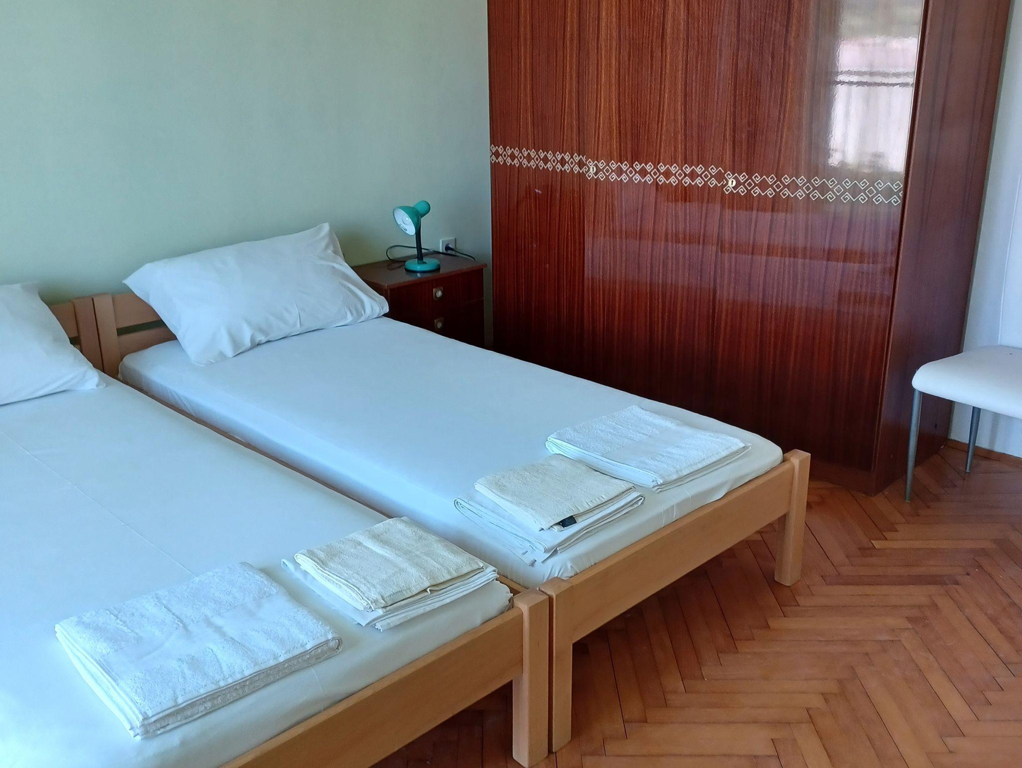 Ferienwohnung bietet Platz für 8 Gäste. Die Betten sind in Schlafzimmern, die es 4 gibt, innerhalb einer Gesamtfläche von 98m2, angeordnet. Die Gäste haben eine eigene Terrasse zur Verfügung, auf der sie in warmen Sommernächten genießen können. Das Apartment bietet Meerblick. Es ist erlaubt, Speisen auf dem Gemeinschafts-Grill vorzubereiten. In der Unterkunftseinheit besteht die Möglichkeit des Mitbringens von Haustieren gegen Aufpreis. Unterkunftseinheit hat Räume, die von dem Rest der Einheit abgetrennt werden. IM PREIS INBEGRIFFEN: Kurtaxe, Endreinigung, Parkplatz, Internet. VERBINDLICHE ZUSÄTZLICHE KOSTEN: Aufzahlung für Kurzaufenthalte (prozentualer Zuschlag pro Nächtigungsanzahl: 30% - 1, 20% - 2, 10% - 3). UNVERBINDLICHE ZUSÄTZLICHE KOSTEN: Klimatisierung (7,00 € pro Nacht), Wäschewaschen (7,00 € Waschen), Haustiere (20,00 € pro Nacht). Die Verfügbarkeit zusätzlicher Dienstleistungen in Ihrem reservierten Termin und die Preise derselben (falls nicht aufgeführt) müssen im Voraus überprüft werden. Zusätzliche Dienstleistungen die in der Zahlungsaufforderung nicht aufgeführt sind werden direkt beim Vermieter bezahlt, angenommen der Gast nutzt auch diese. Ermäßigung auf den Grundpreis: Gratistag 14=13 (bei einem Aufenthalt von 14 Tagen oder mehr erhalten Sie einen Gratistag für den Aufenthalt bis 31.12.26).
