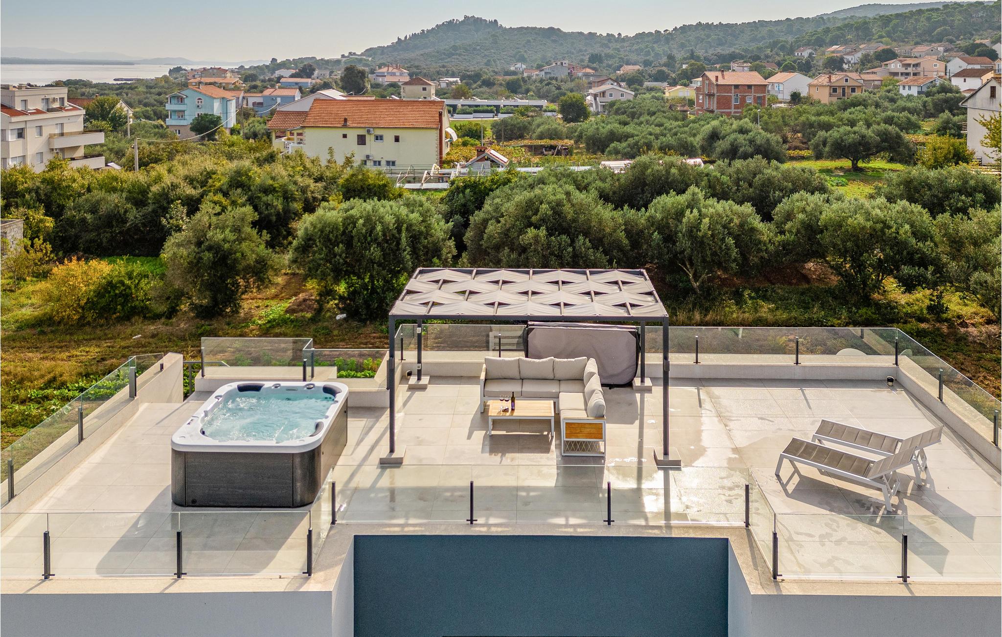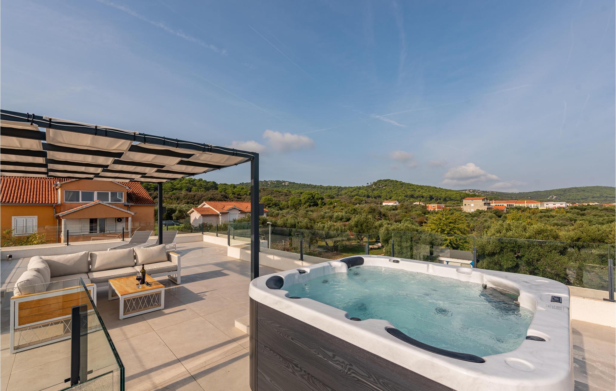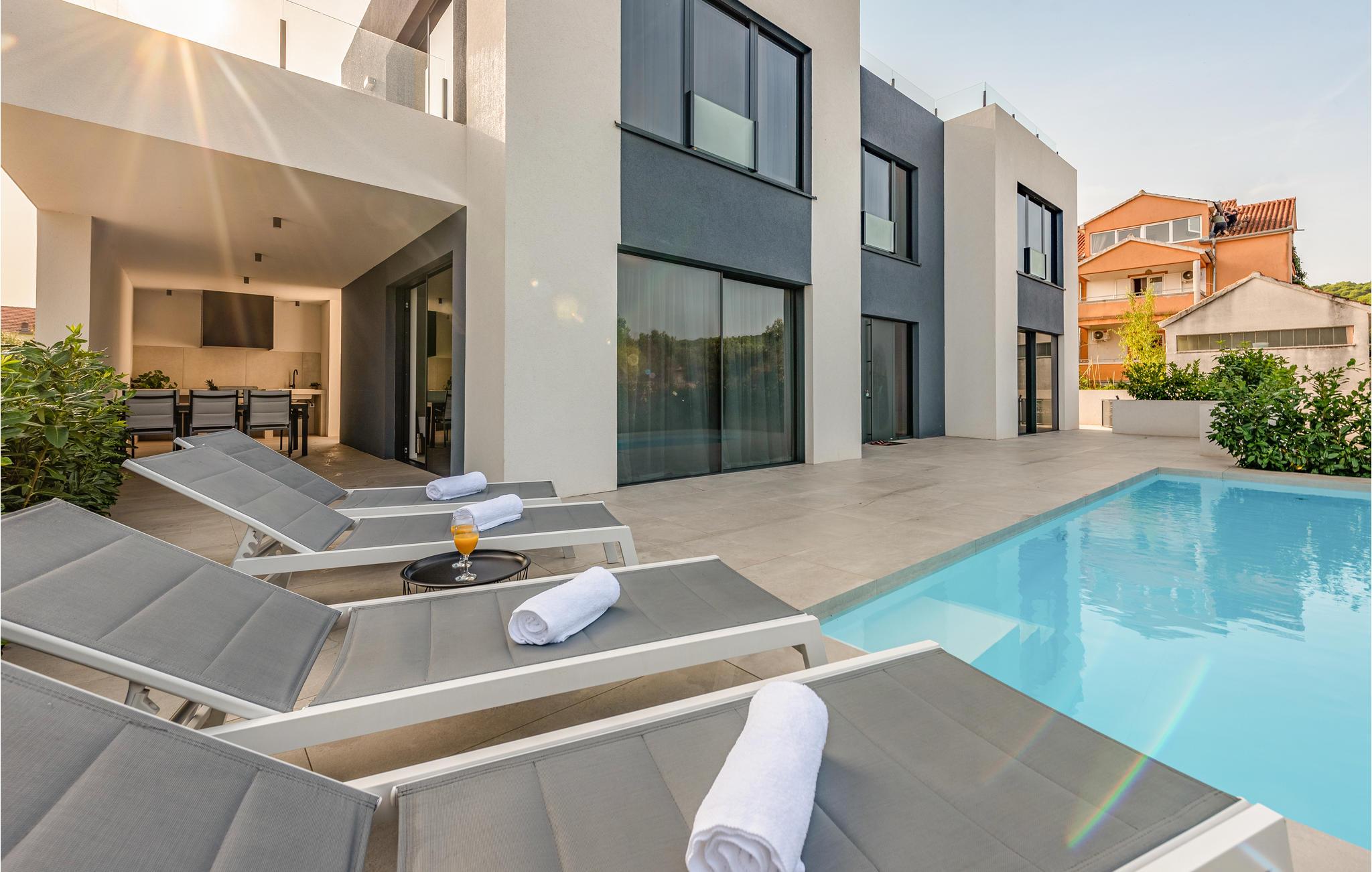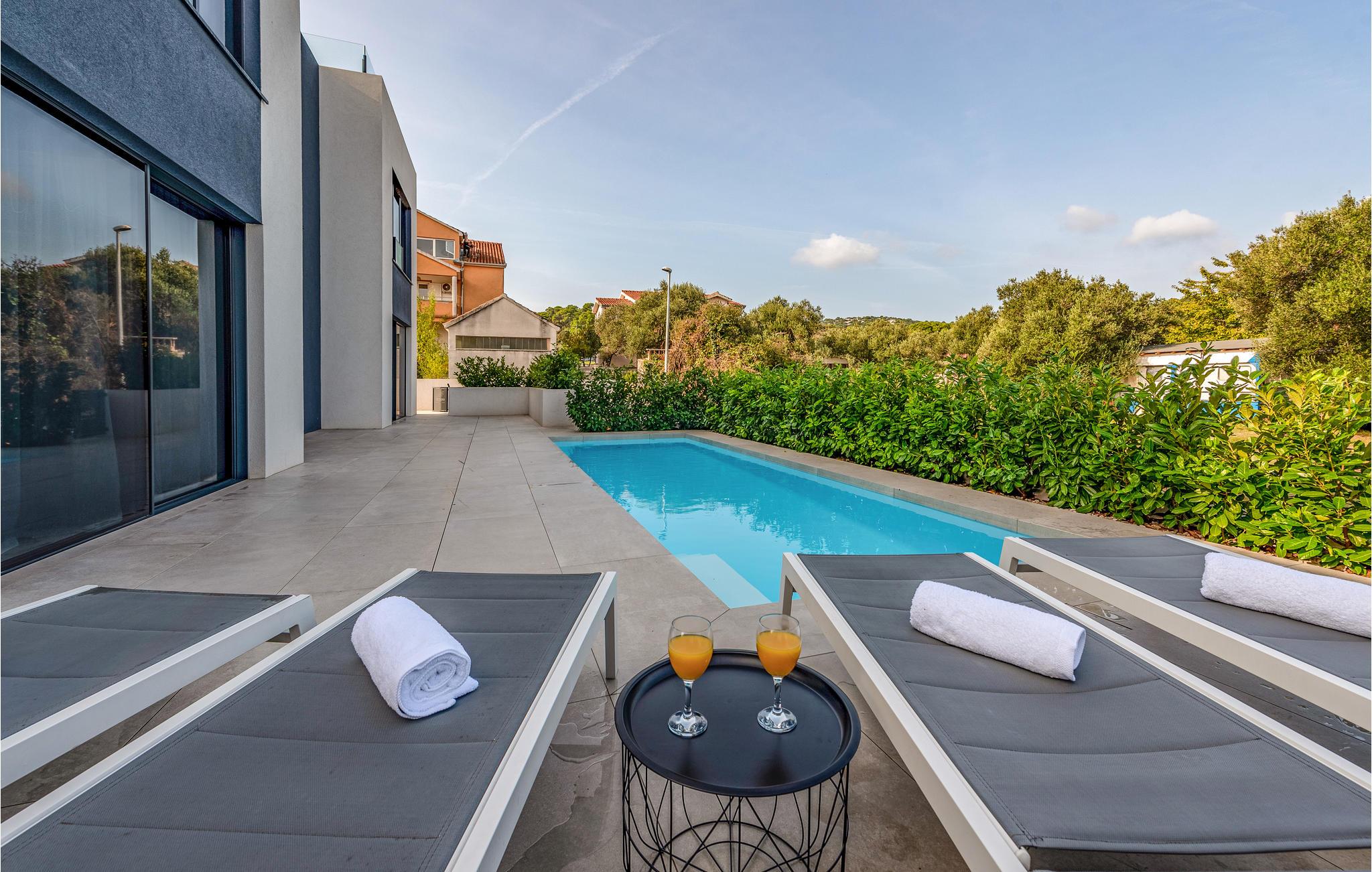 Auf der Insel Pasman empfängt Sie unweit des Strandes dieses moderne und geräumige Ferienhaus mit Pool und Whirlpool.