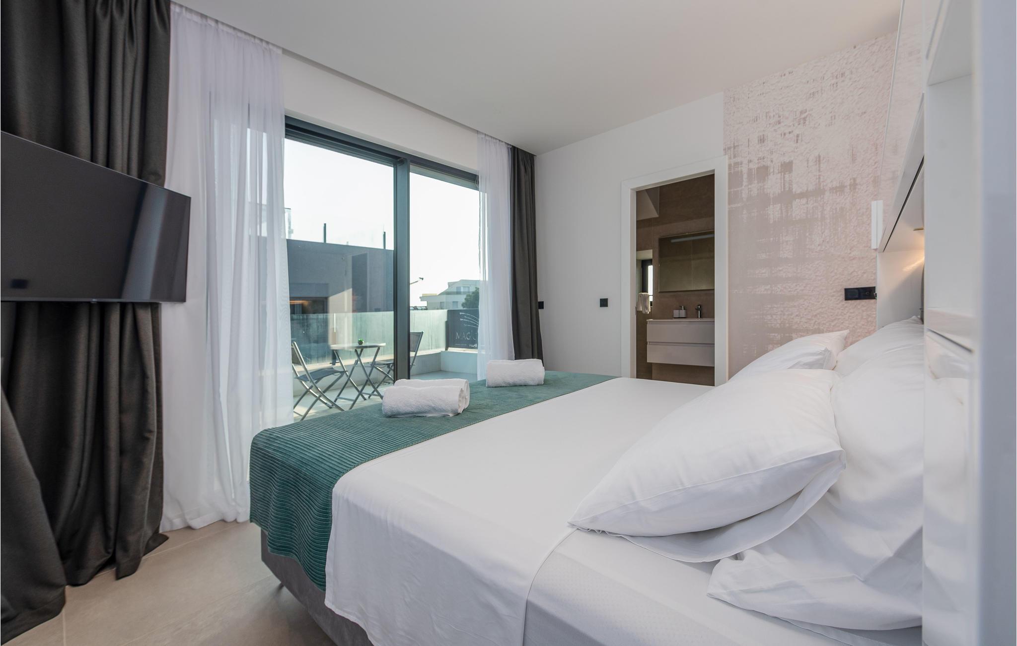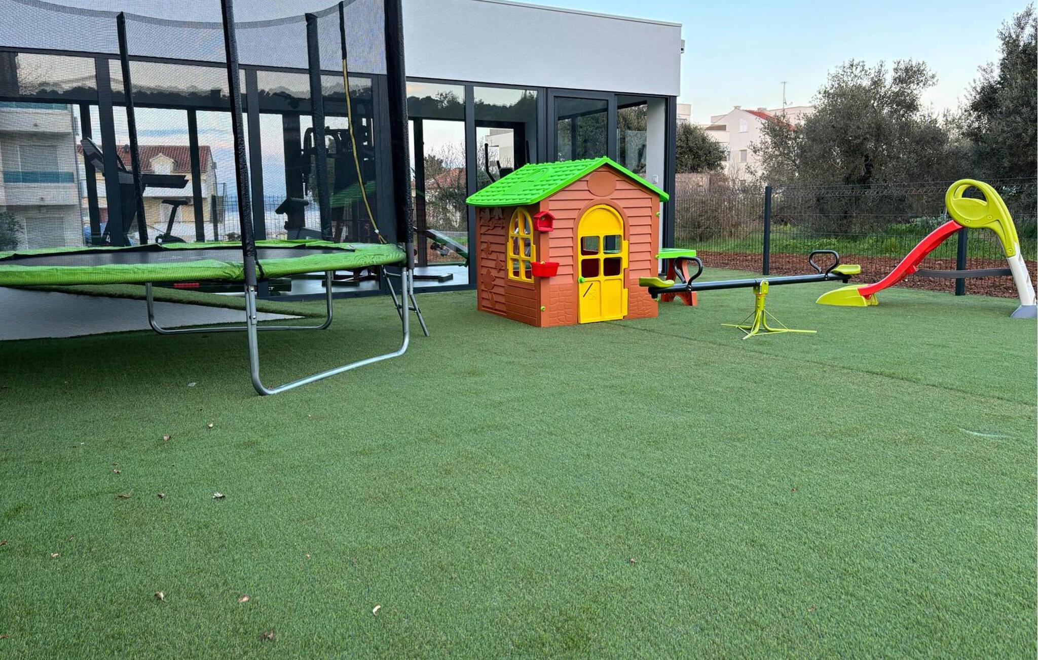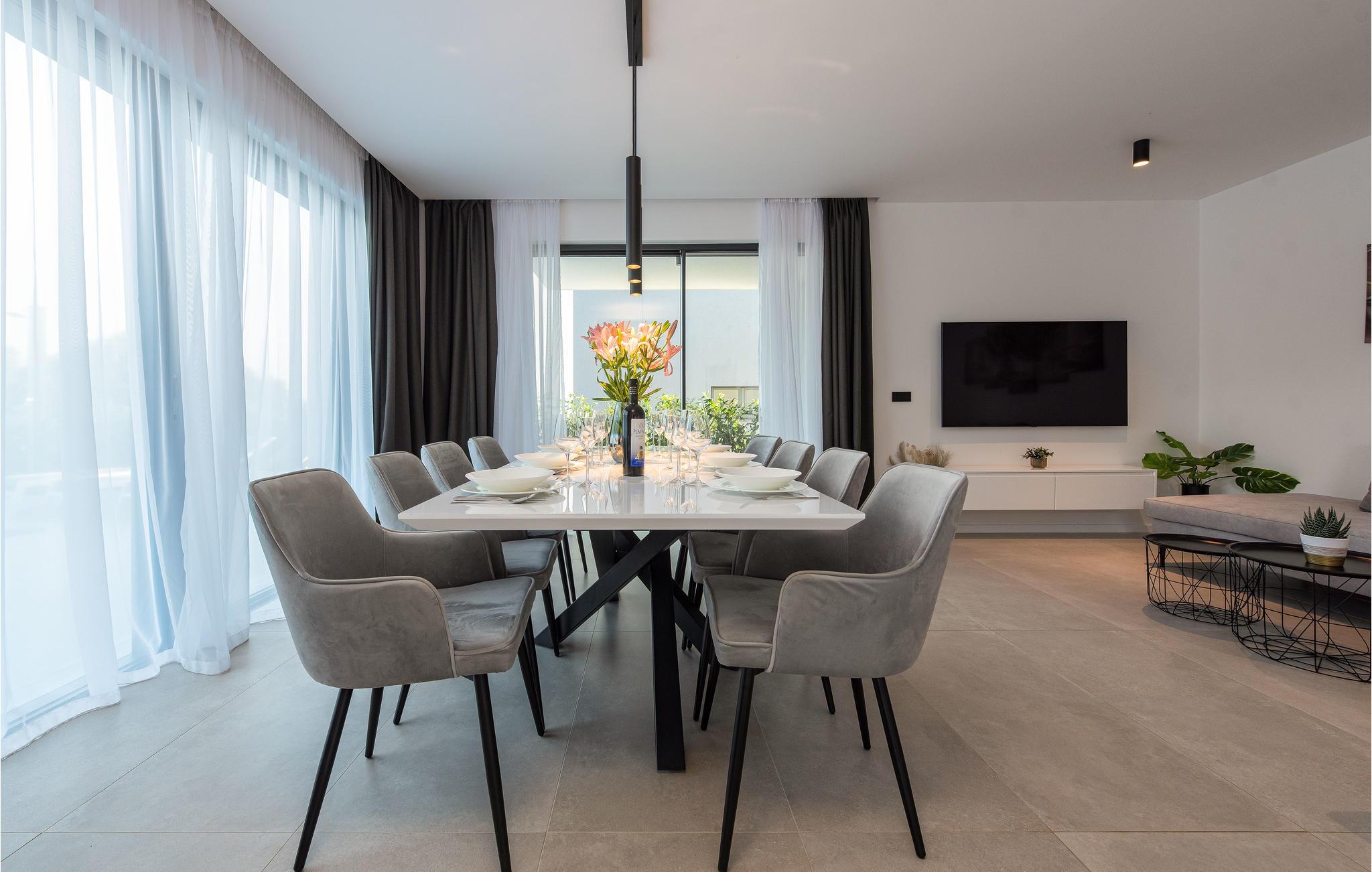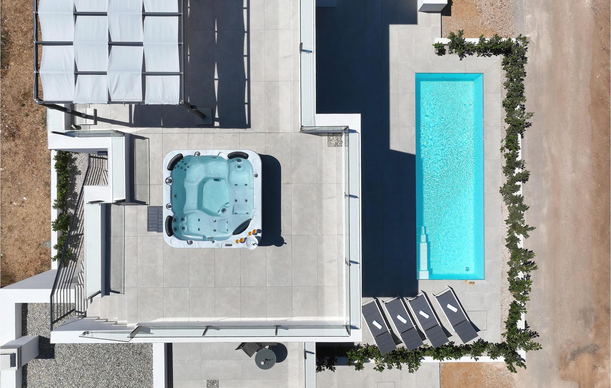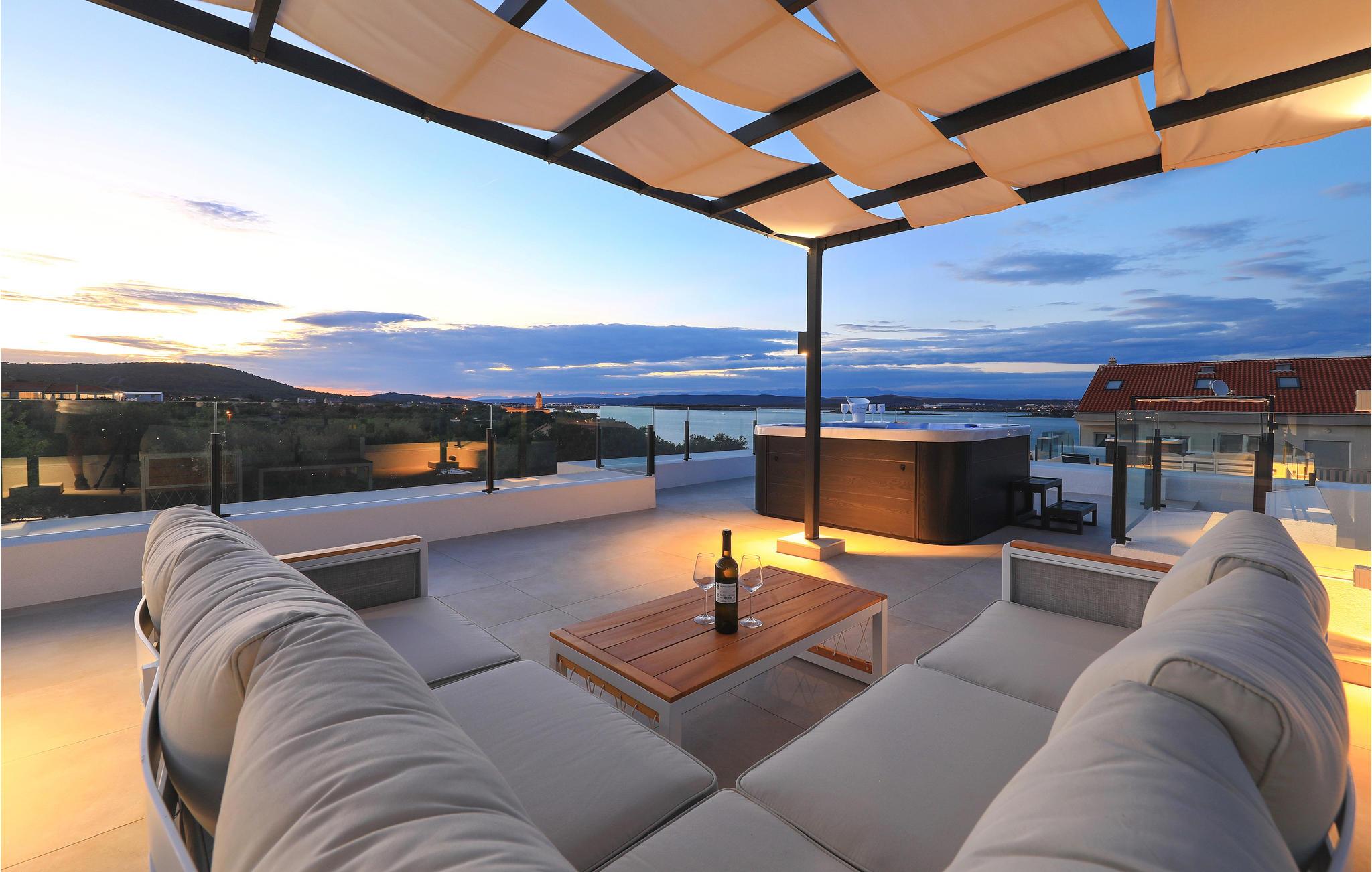 Verbringen Sie gemeinsam mit Ihrer Großfamilie oder befreundeten Paaren einen unvergesslichen Urlaub in diesem großen und komfortablen Ferienhaus. Hier werden Träume wahr, denn Sie die hochwertige Einrichtung, die einladende Atmosphäre und vielen Zimmer voll auskosten und neben Privatsphäre auch gesellige Stunden genießen. Dafür stehen Ihnen nicht nur der großartige Wohnraum zur Verfügung, sondern wenn Sie in das Freie treten ein schöner Swimmingpool zu Verfügung. An den Abenden können Sie in der Außenküche Ihre Lieblingsgerichte zubereiten und gemeinsam einnehmen. Auf dem Dach befindet sich noch ein weiteres Highlight, denn über die gesamte Fläche des Stockwerks erstreckt sich eine herrliche Dachterrasse, wo Sie sich zusammen im Whirlpool und Gartenmöbeln entspannen und auf das Meer blicken können. In denNächten können Sie den magischen Himmel mit seinen Sternen bewundern. Falls Sie mit der Großfamilie oder mehreren befreundeten Familien verreisen, kann ebenfalls das Nachbarhaus gemietet werden.