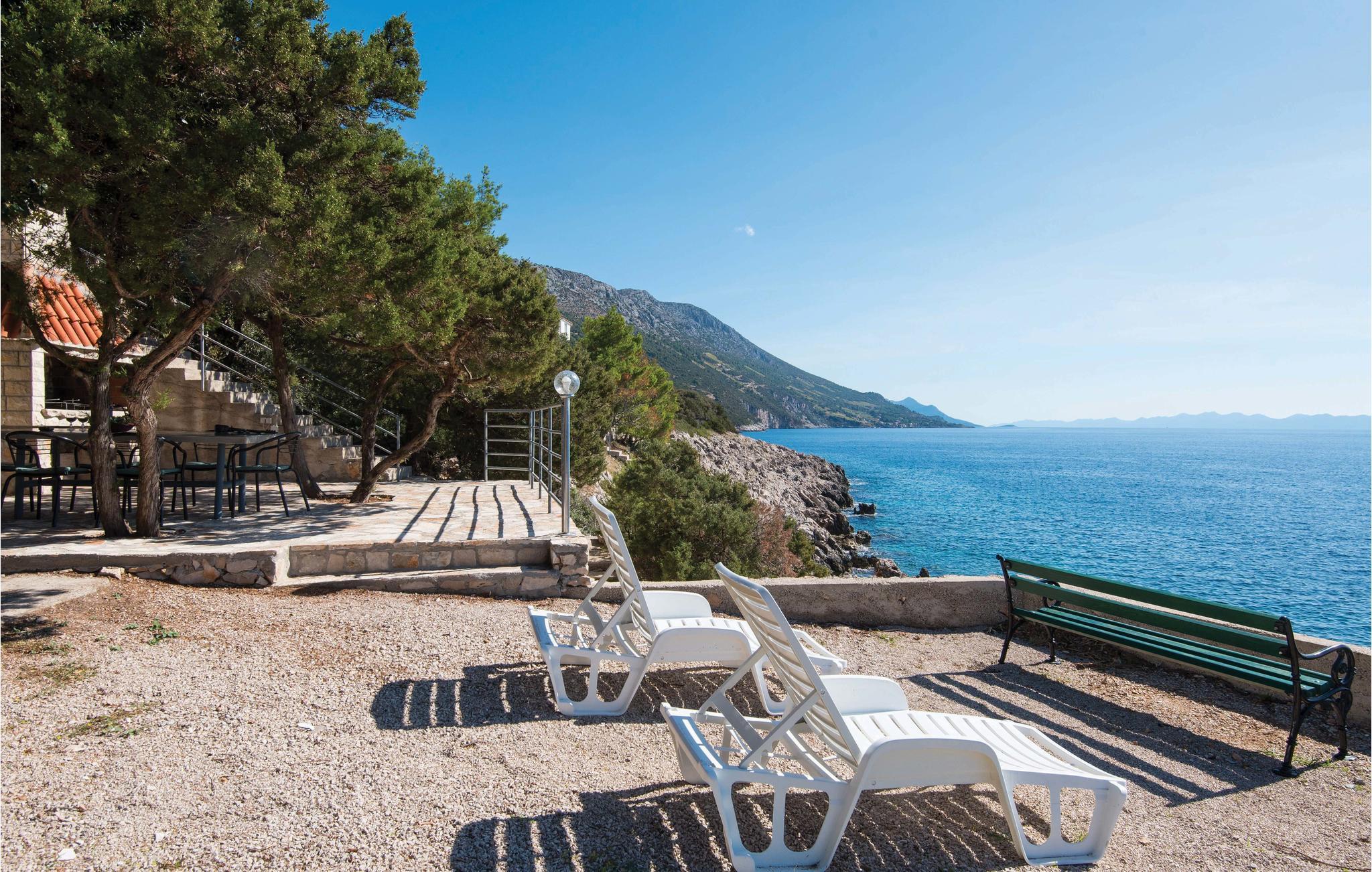 Wohnen Sie im charmanten Dorf Dingac, nur wenige Schritte vom Meer entfernt in diesem schönen Ferienhaus, das aus zwei Apartments besteht. Das kleine Apartment besteht aus einem Schlafzimmer, Bad und kleiner Wohnküche während das größere Apartment aus zwei Schlafzimmern, Bad und Wohnküche besteht. Vor dem Haus erwartet Sie eine Terrasse, von der Stufen direkt hinunter zum Meer führen. Die Innenräume sind einfach eingerichtet und ausgestattet und auf dem Grundstück stehen Ihnen Parkplätze sowie ein Grillplatz zur Verfügung, auf dem Sie leckere Grillgerichte zubereiten und dabei die schöne Aussicht auf das Meer genießen können.
