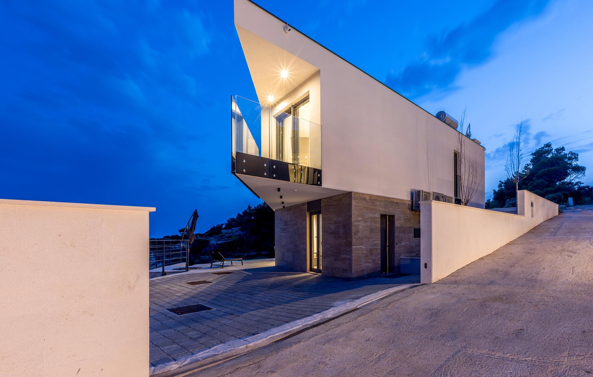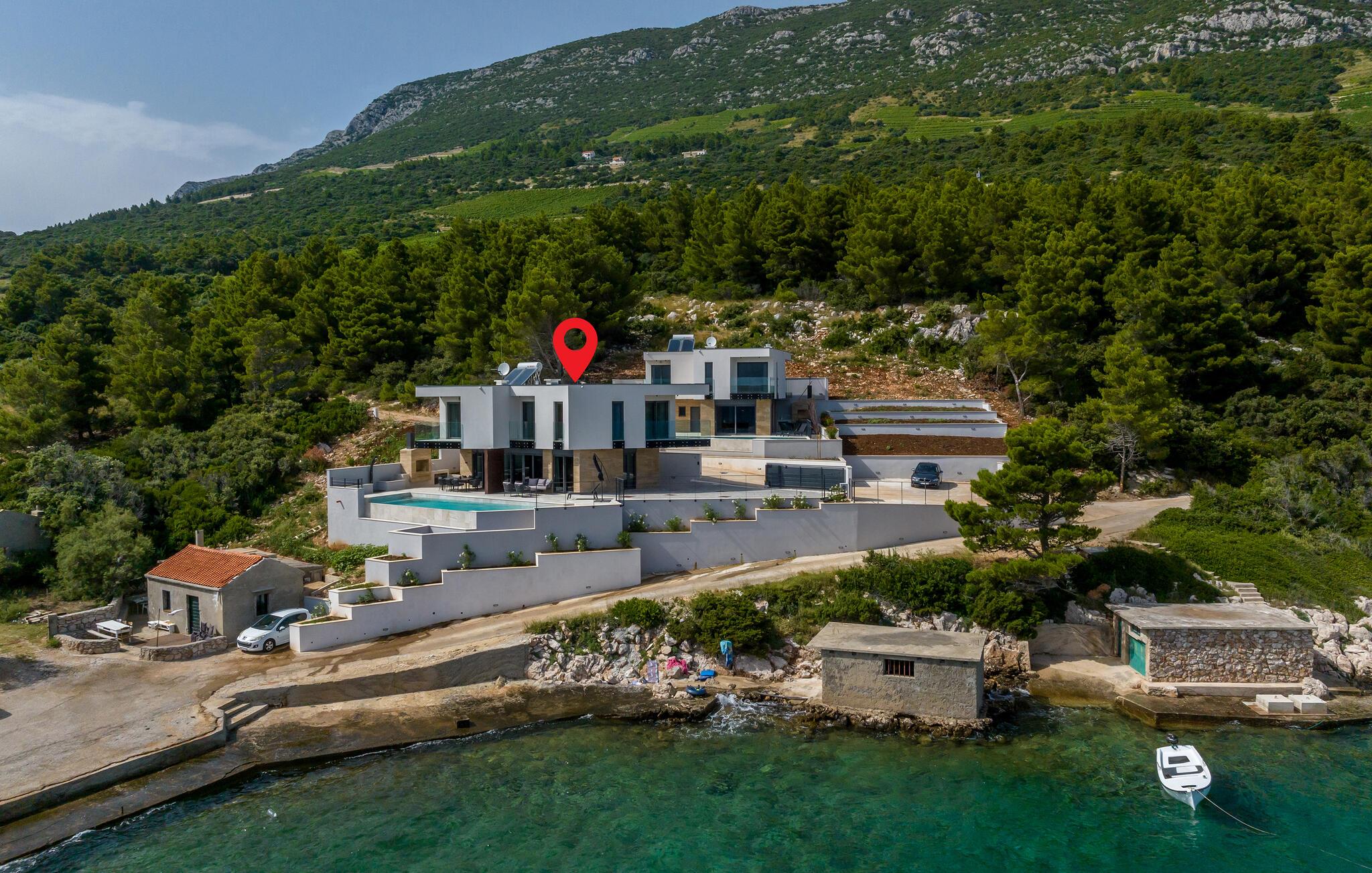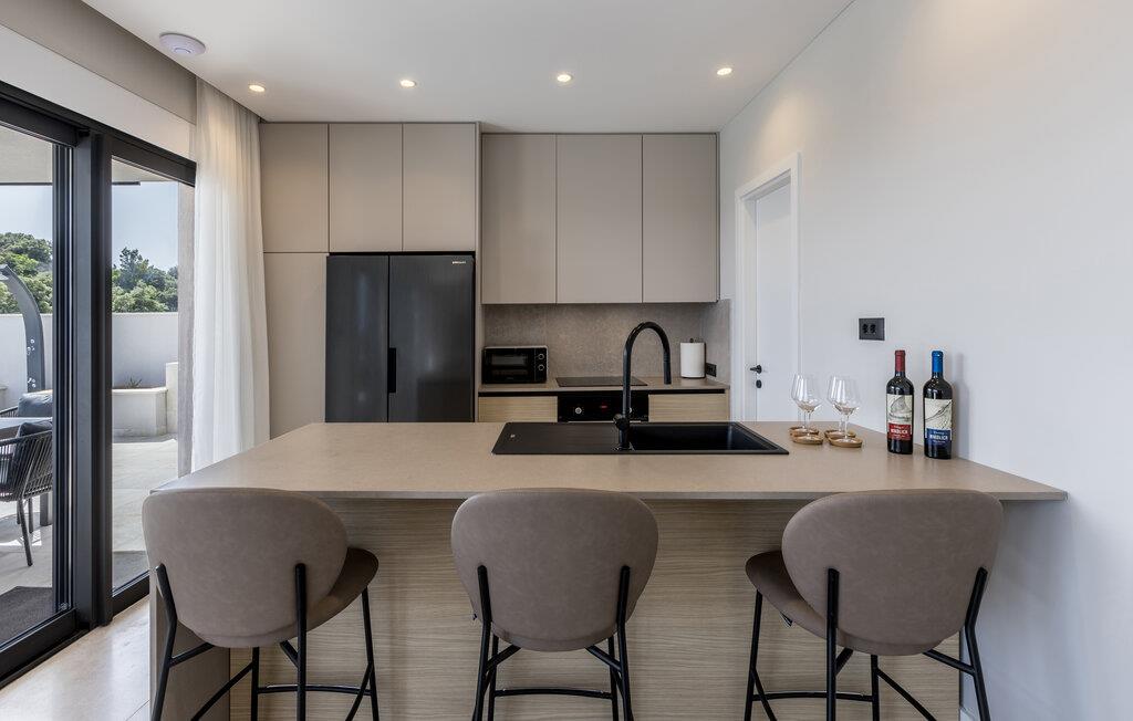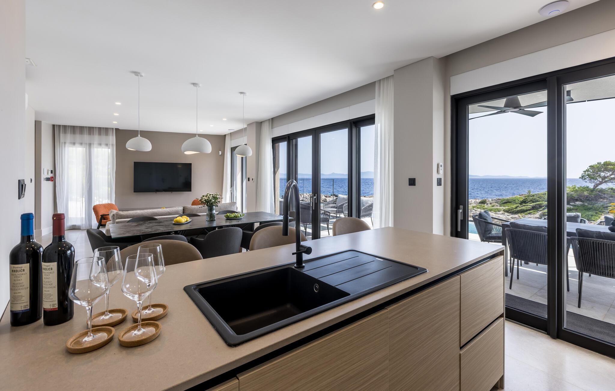 Diese moderne und komfortable Villa genießt eine privilegierte Lage direkt am Meer und lädt Sie zu erholsamen Tagen in ihr elegantes und behagliches Interieur ein. Lassen Sie sich zu kulinarischen Highlights inspirieren und genießen Sie Ihre Mahlzeiten im hellen, offenen Wohnbereich mit Blick auf die azurblaue Adria. Abends können Sie es sich auf dem bequemen Sofa gemütlich machen, Ihre Lieblingsserie streamen oder in der Sauna entspannen.