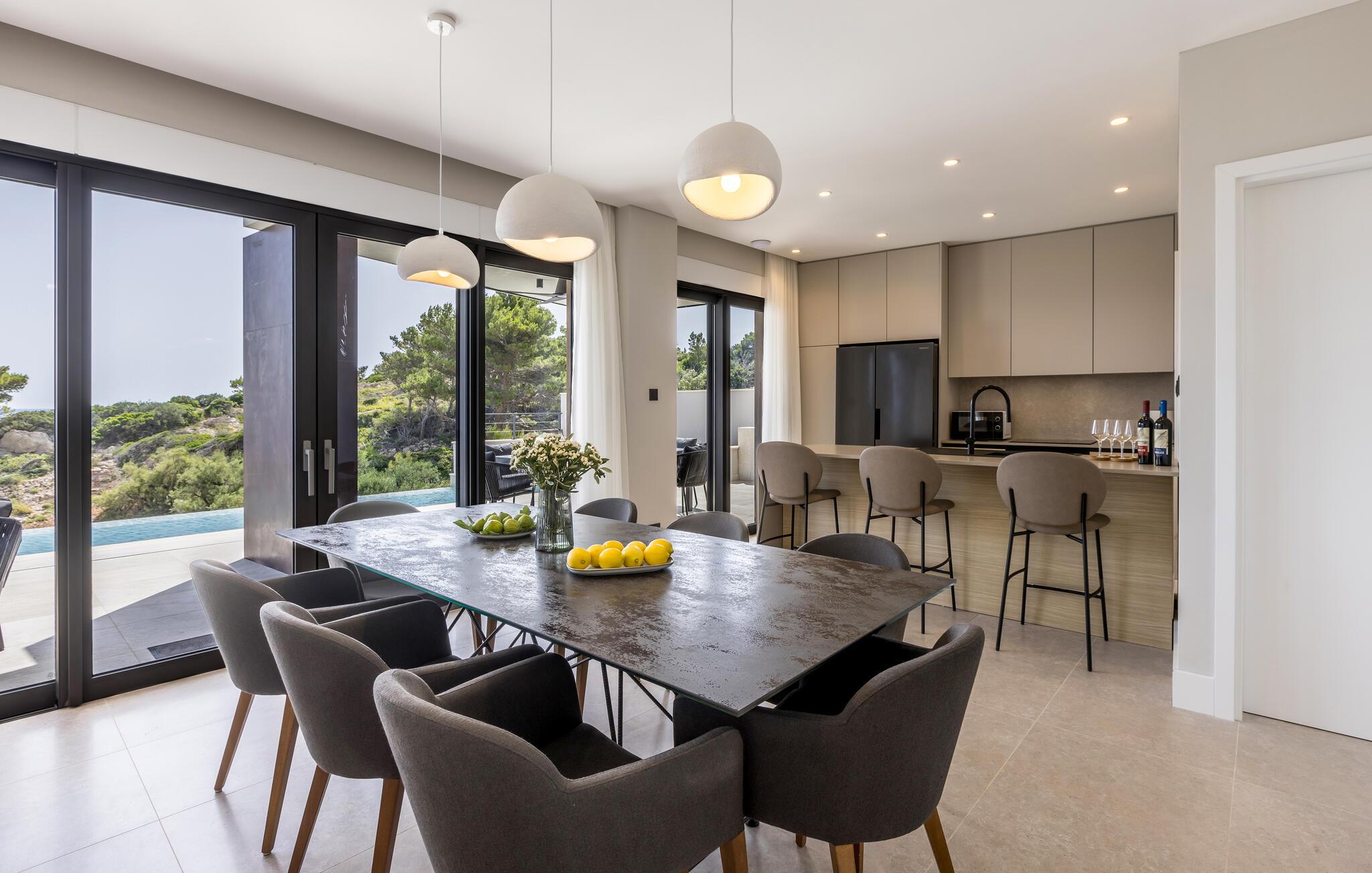 Lassen Sie die warme Meeresbrise bei einem ausgedehnten Frühstück auf der Terrasse auf sich wirken, erfrischen Sie sich nach Lust und Laune im herrlichen Infinity-Pool und genießen Sie erholsame Siestas auf der Sonnenliege. Entfachen Sie den Grill und erleben Sie stimmungsvolle Abende bei Wein und Kerzenschein oder lauschen Sie unter dem klaren Sternenhimmel dem sanften Rauschen der Wellen.