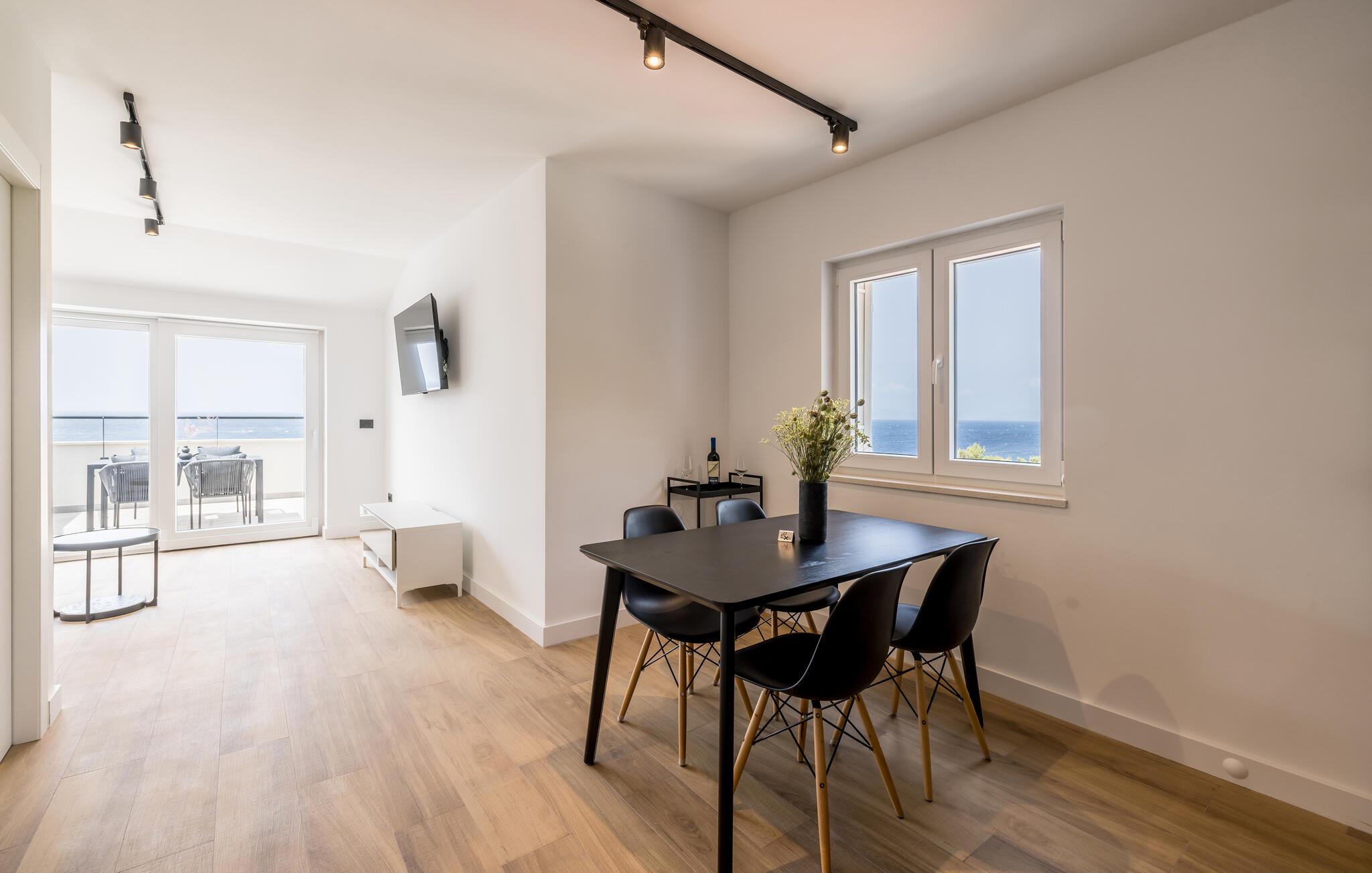 Diese auf der Halbinsel Pelješac gelegene Wohnung ist der ideale Rückzugsort für einen entspannten Urlaub am Meer. Bodentiefe Fenster lassen helles Tageslicht herein, während Sie vom Sofa aus einen herrlichen Blick auf die blaue Adria genießen können. Egal ob Sie Ihre Lieblingsserie streamen oder einen Podcast hören, hier kommen Sie schnell in den Urlaubsmodus. Veranstalten Sie ein kleines Kochduell zu zweit und probieren Sie unbedingt einen Wein aus der Gegend.