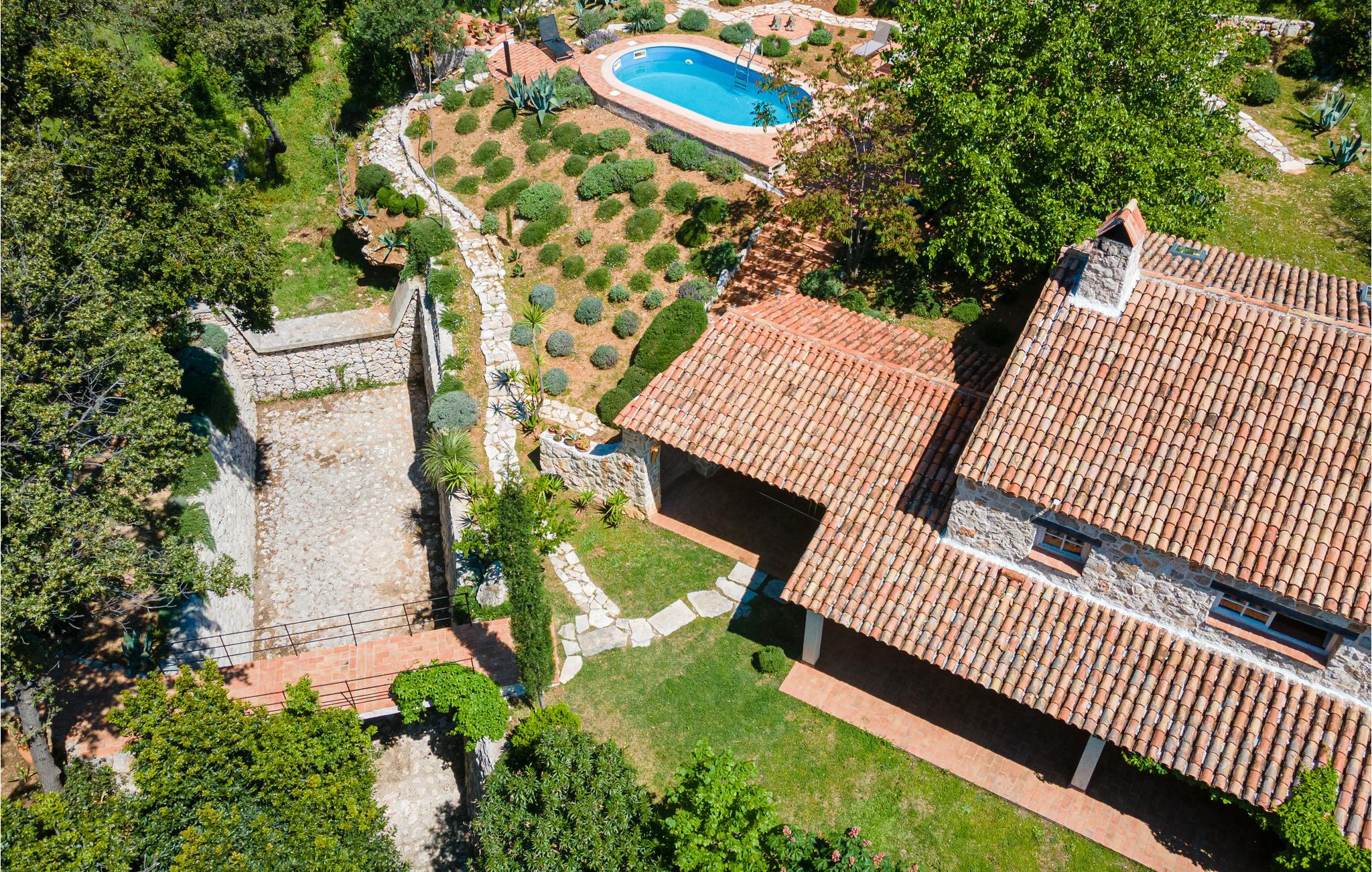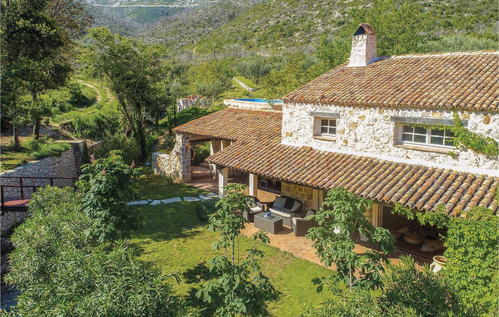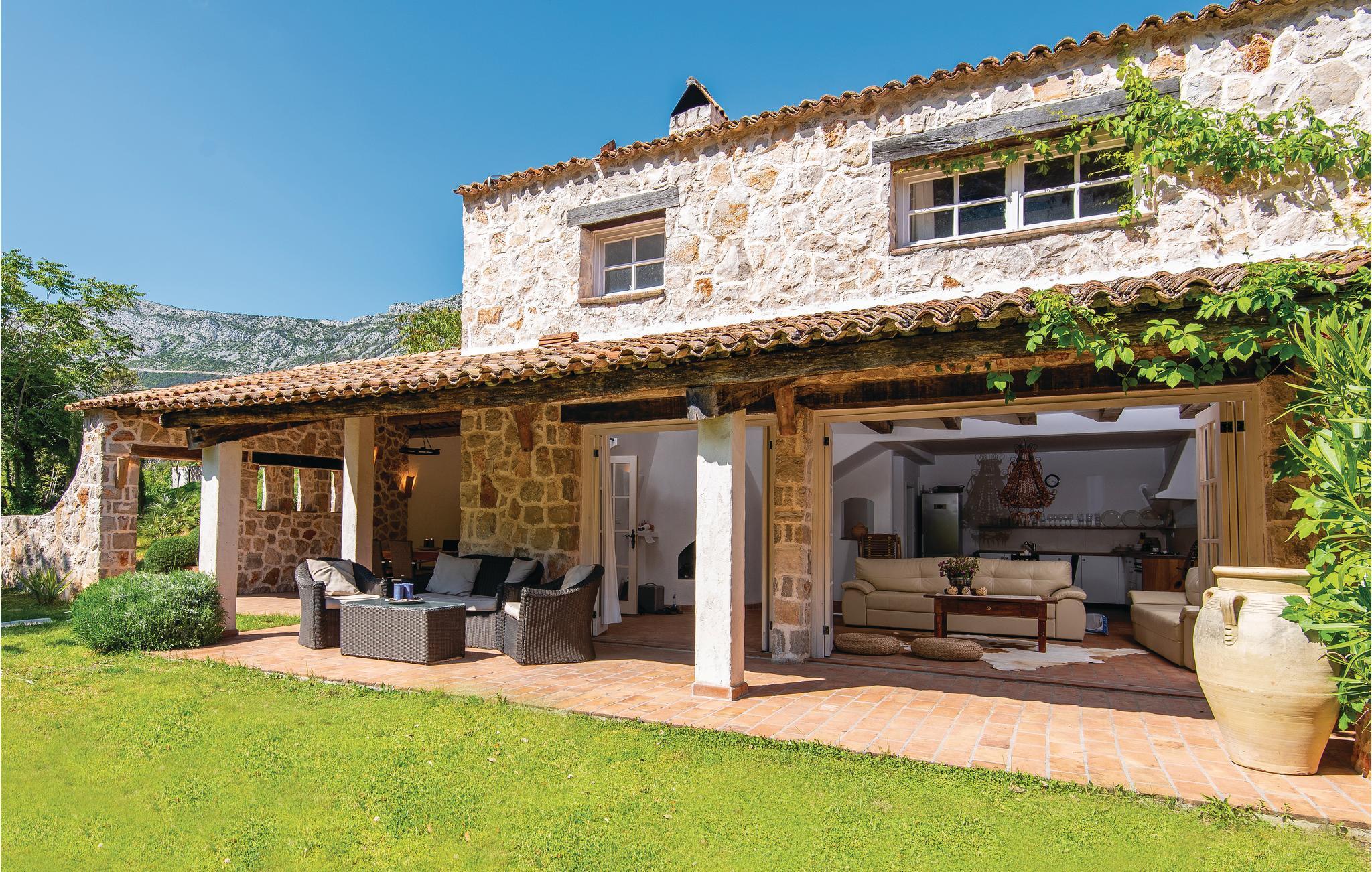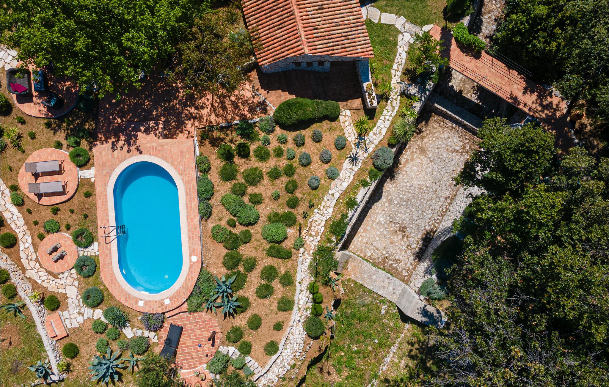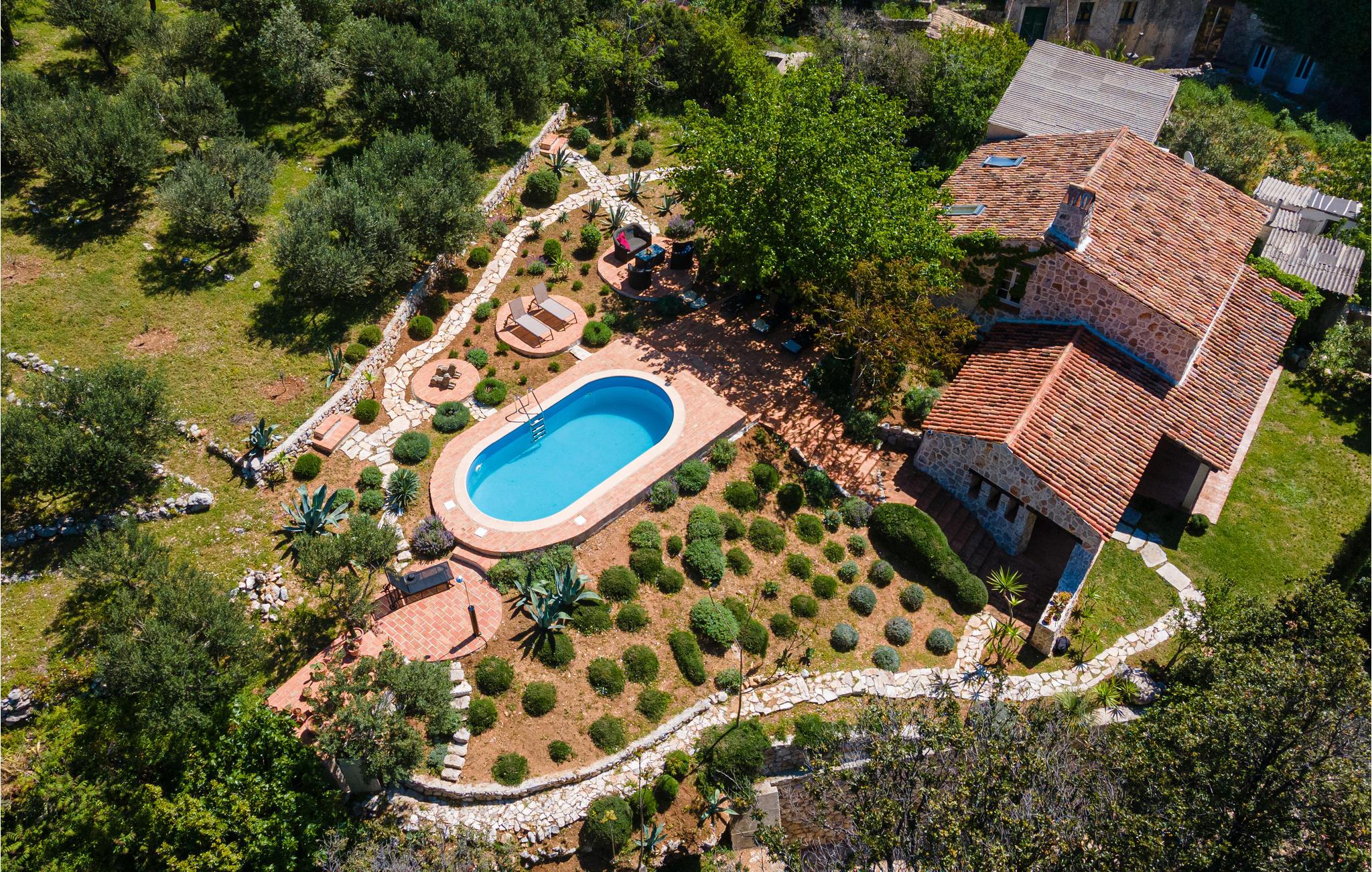 Idyllisch gelegen im Ort Trstenik, erwartet Sie auf einem Hügel diese Villa mit Swimmingpool, die ihren Besuchern den nötigen Komfort und Ruhe bietet. Durch die traditionelle Bauweise sorgen die dicken Wände auch im Sommer für angenehme Frische. Die Räumlichkeiten sind voller schöne Details exquisit eingerichtet. Das Erdgeschoss verfügt über ein geräumiges Wohnzimmer, eine Küche und ein Badezimmer. Im 1. Stock stehen Ihnen zwei Schlafzimmer und ein weiteres Badezimmer zur Verfügung. Der Wohnbereich ist mit den überdachten Terrassen verbunden. Im Garten wachsen Olivenbäume und andere Sträucher. In der schönen, mittelalterlichen Stadt Korcula, die 30 km vom Haus entfernt ist, werden Sie die Rittertänze Moreska und Kumpanija bewundern können. Vom Parkplatz gelangen Sie über Stufen und eine kleine Brücke zum Haus.