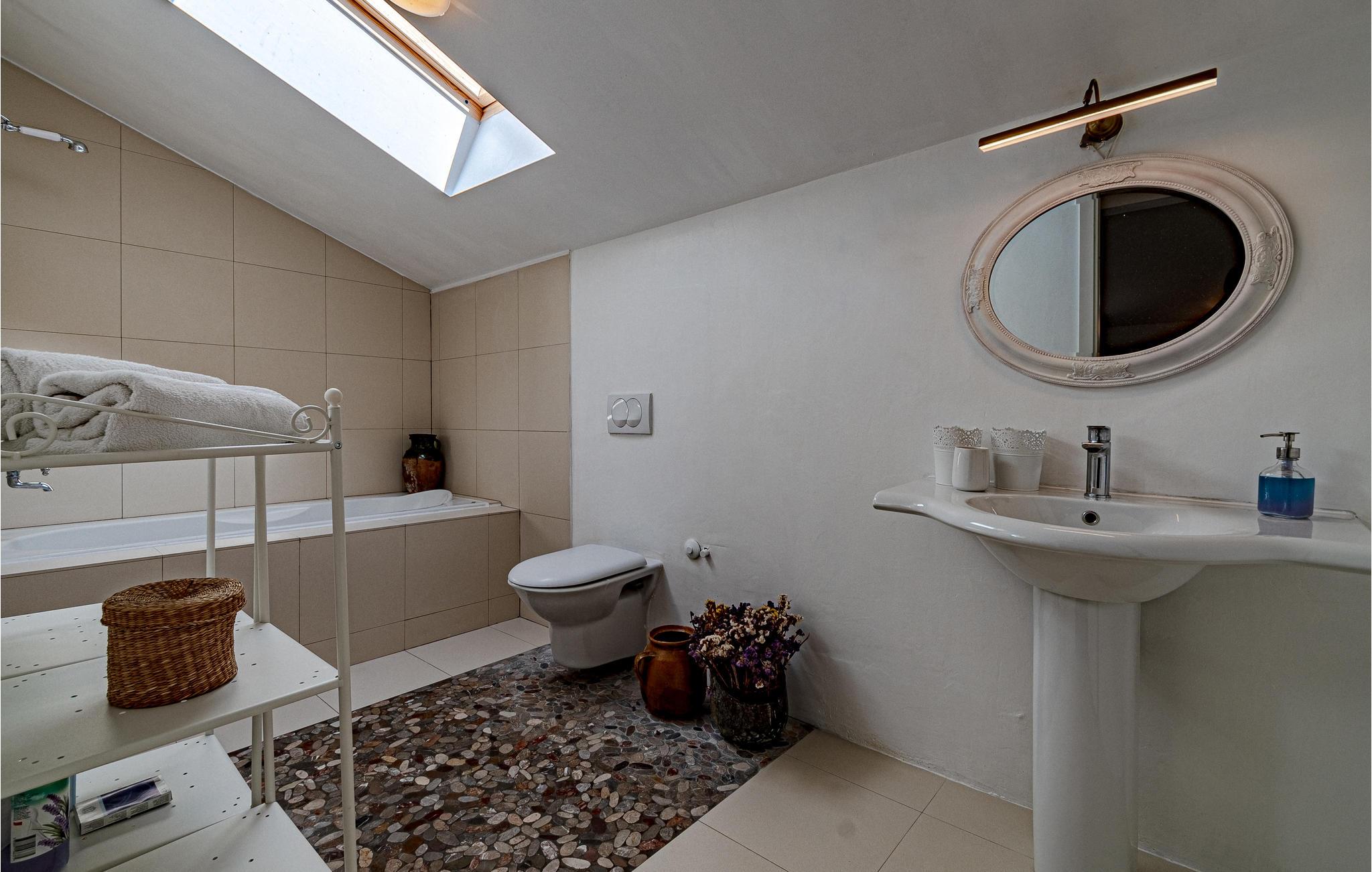 - WC mit warmem und kaltem Wasser, Badewanne