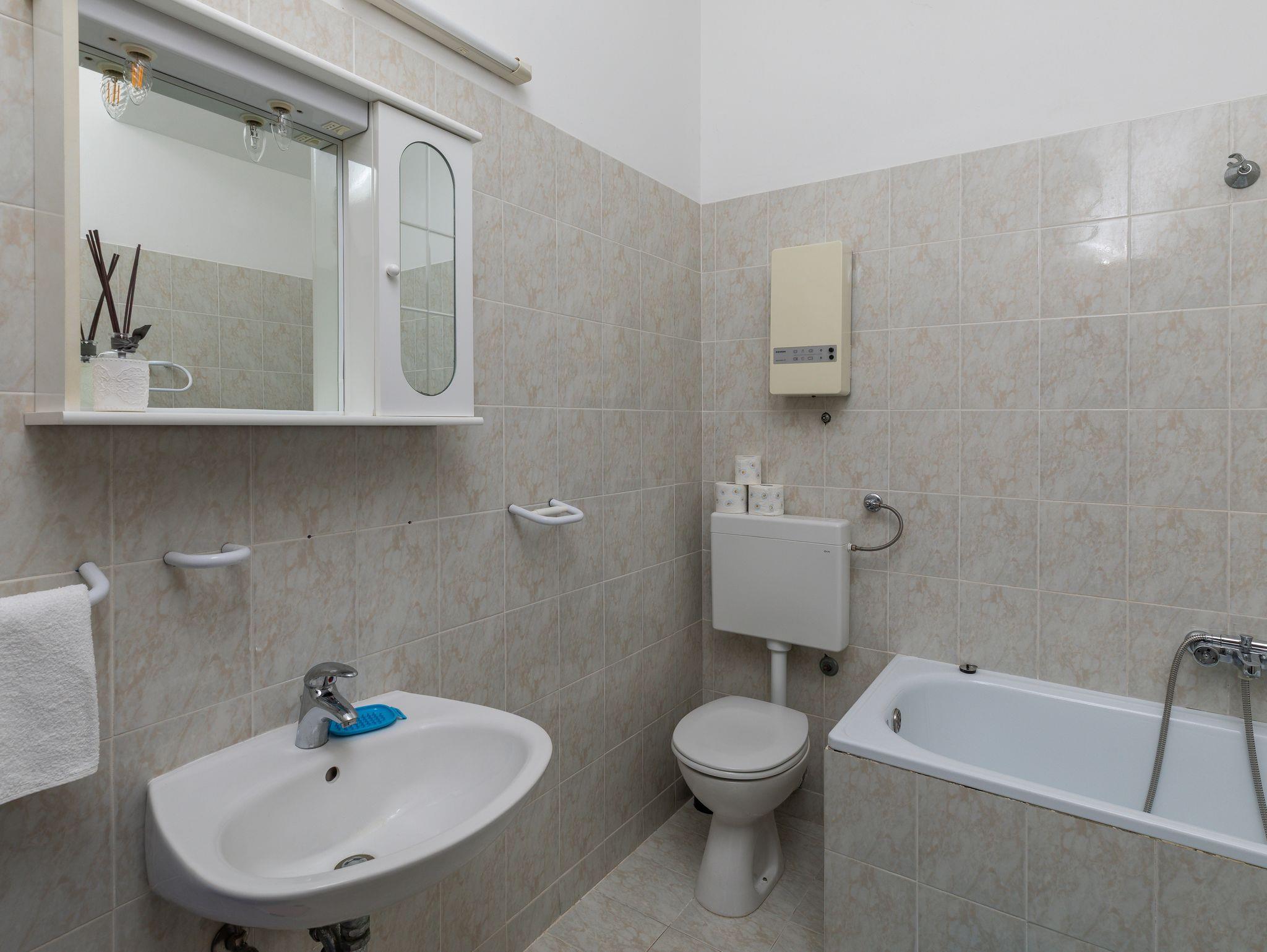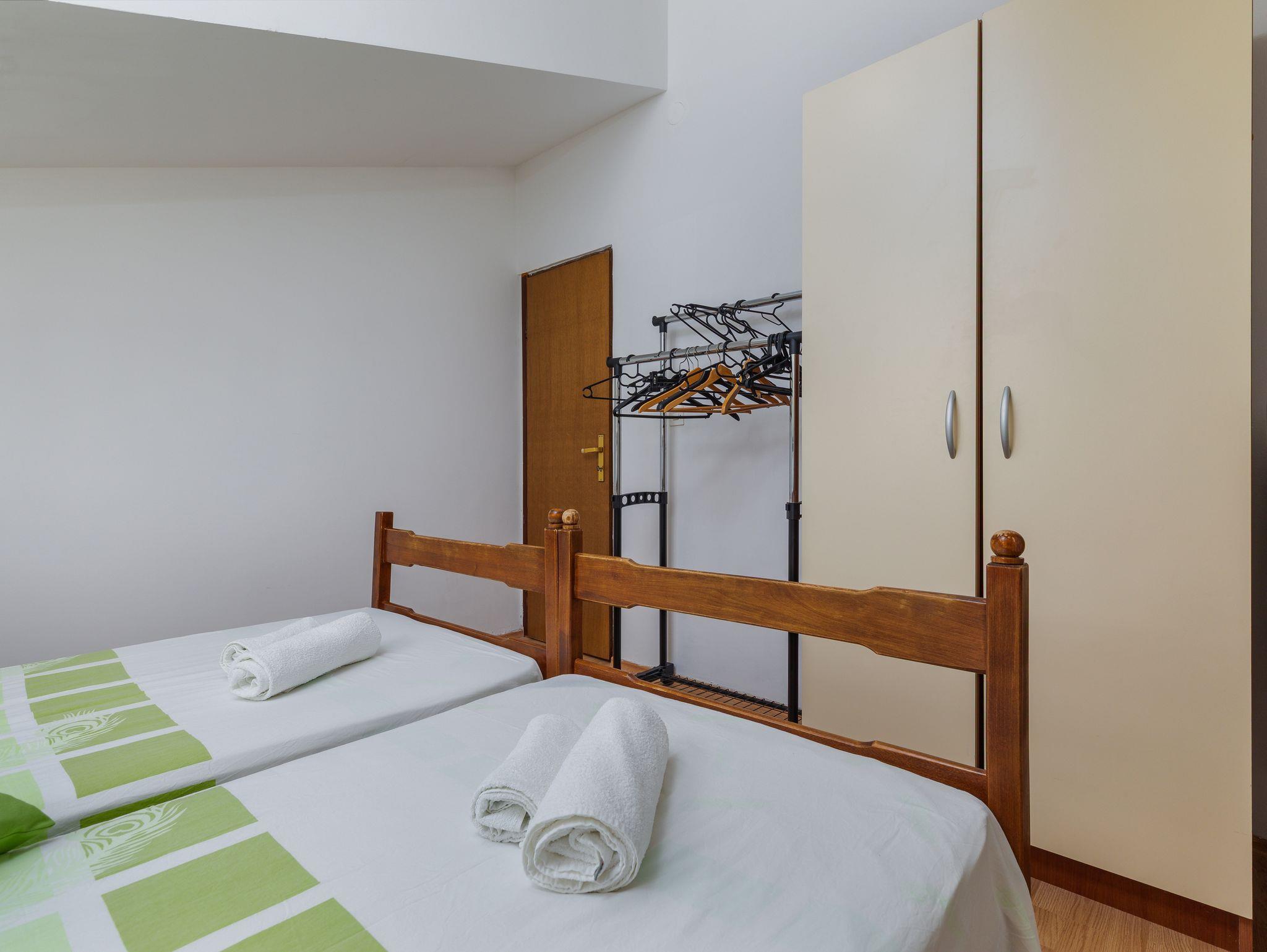 Ferienwohnung bietet Platz für 4 Gäste. Die Betten sind in Schlafzimmern, die es 1 gibt, und in Wohnzimmer, innerhalb einer Gesamtfläche von 46m2, angeordnet. Die Gäste haben einen eigenen Balkon zur Verfügung, auf der sie in warmen Sommernächten genießen können. Das Apartment bietet Meerblick. IM PREIS INBEGRIFFEN: Kurtaxe, Endreinigung, Klimatisierung, Parkplatz, Internet, Zusatzbett, Bügeleisen, Bügelbrett, Föhn. Die Verfügbarkeit zusätzlicher Dienstleistungen in Ihrem reservierten Termin und die Preise derselben (falls nicht aufgeführt) müssen im Voraus überprüft werden. Zusätzliche Dienstleistungen die in der Zahlungsaufforderung nicht aufgeführt sind werden direkt beim Vermieter bezahlt, angenommen der Gast nutzt auch diese. Ermäßigung auf den Grundpreis: Gratistag 14=13 (bei einem Aufenthalt von 14 Tagen oder mehr erhalten Sie einen Gratistag für den Aufenthalt bis 31.12.26).