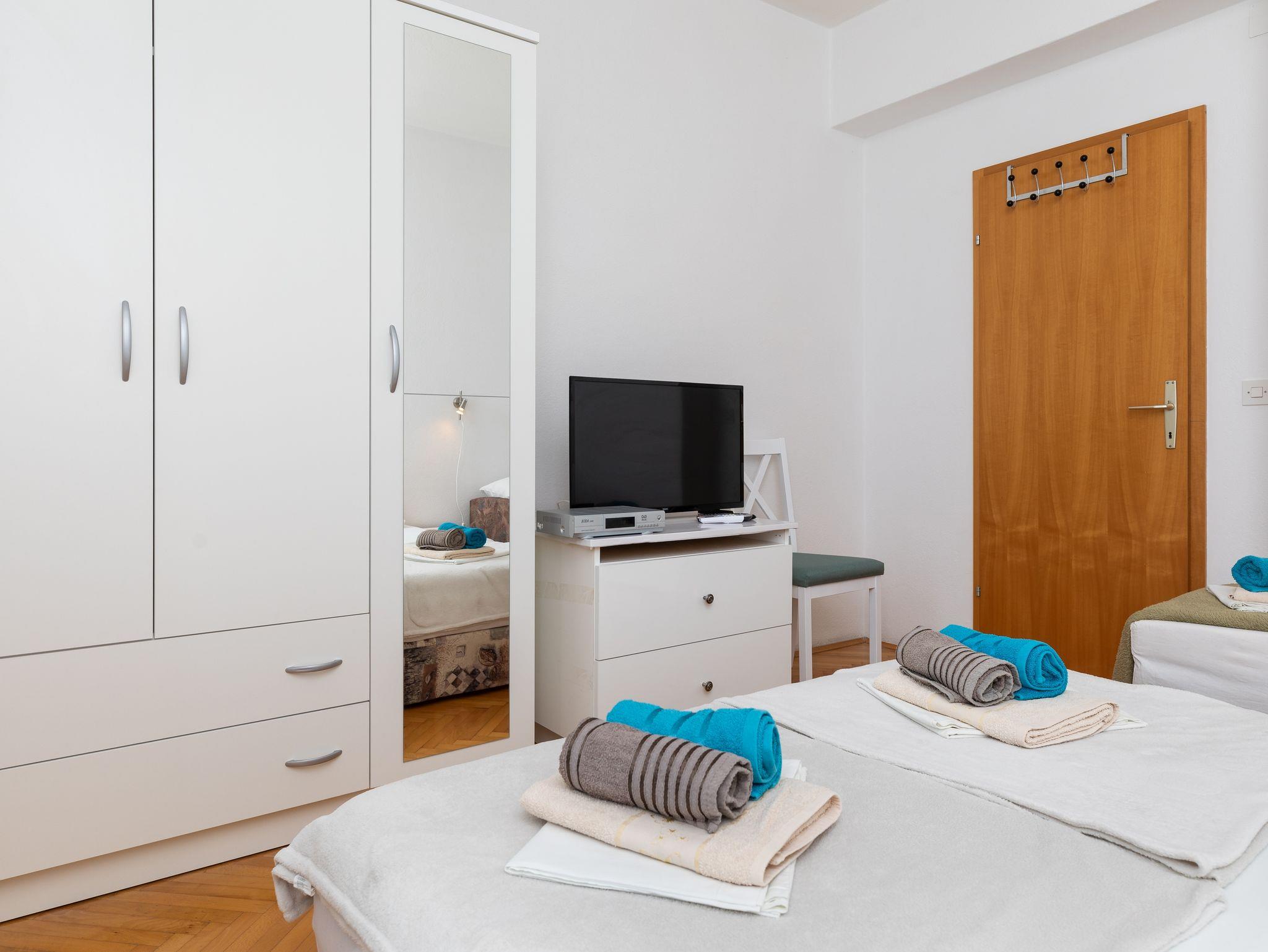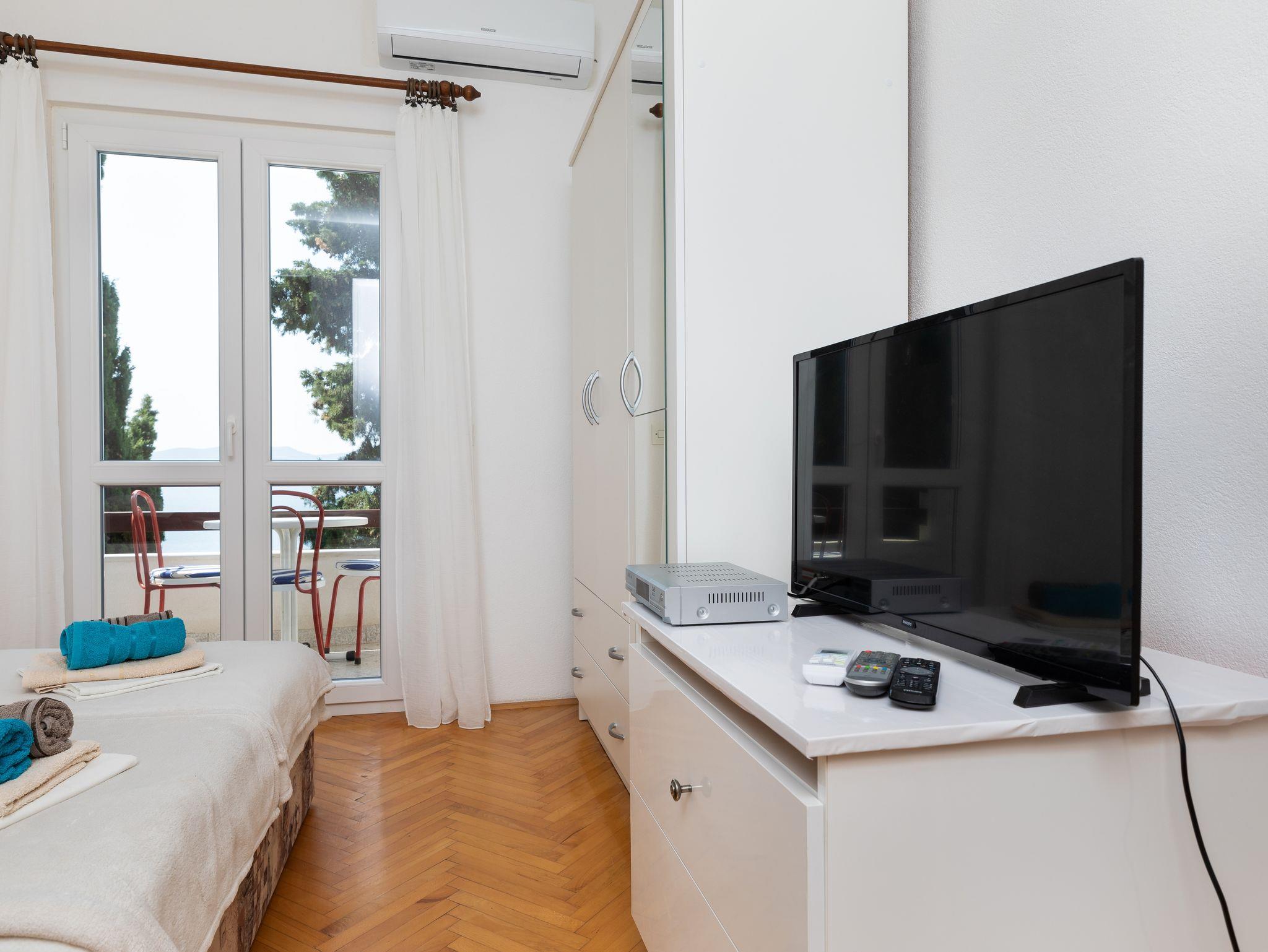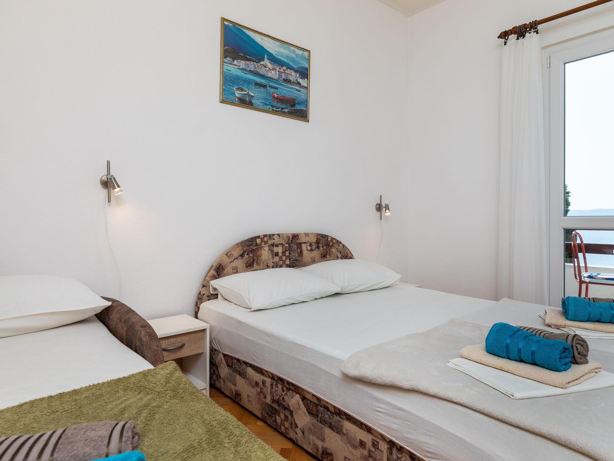 Ferienwohnung bietet Platz für 3 Gäste. Die Betten sind in Schlafzimmern, die es 1 gibt, innerhalb einer Gesamtfläche von 27m2, angeordnet. Die Gäste haben einen eigenen Balkon zur Verfügung, auf der sie in warmen Sommernächten genießen können. Das Apartment bietet Meerblick. Es ist erlaubt, Speisen auf dem Gemeinschafts-Grill vorzubereiten. In der Unterkunftseinheit besteht die Möglichkeit des Mitbringens von Haustieren gegen Aufpreis. IM PREIS INBEGRIFFEN: Kurtaxe, Endreinigung, Klimatisierung, Parkplatz, Internet. VERBINDLICHE ZUSÄTZLICHE KOSTEN: Aufzahlung für Kurzaufenthalte (prozentualer Zuschlag pro Nächtigungsanzahl: 30% - 1, 20% - 2, 10% - 3). UNVERBINDLICHE ZUSÄTZLICHE KOSTEN: Haustiere (8,00 € pro Nacht). Die Verfügbarkeit zusätzlicher Dienstleistungen in Ihrem reservierten Termin und die Preise derselben (falls nicht aufgeführt) müssen im Voraus überprüft werden. Zusätzliche Dienstleistungen die in der Zahlungsaufforderung nicht aufgeführt sind werden direkt beim Vermieter bezahlt, angenommen der Gast nutzt auch diese.