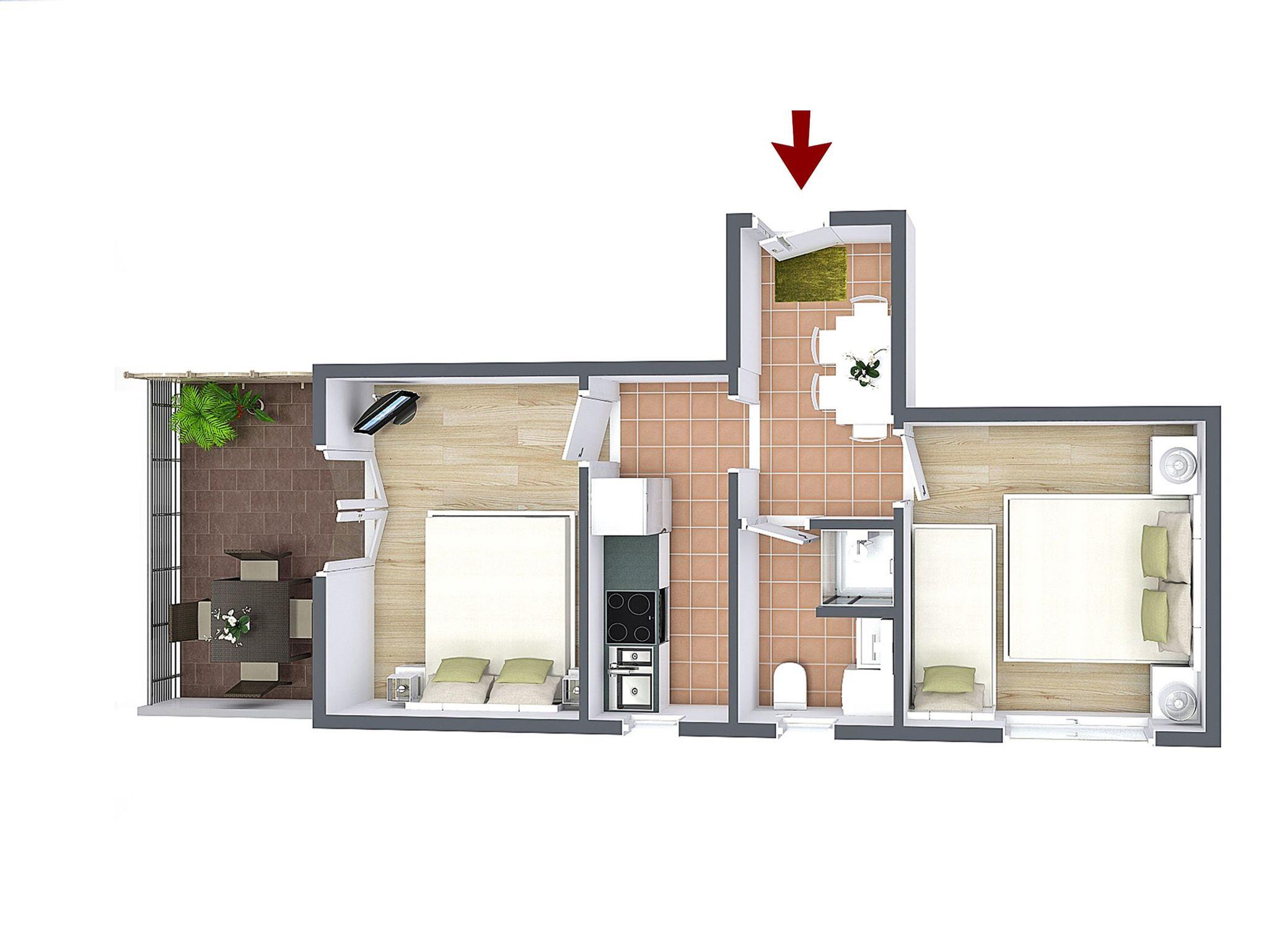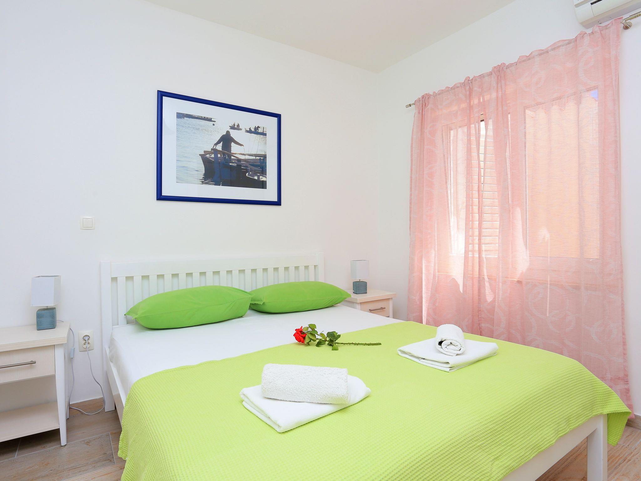 Ferienwohnung bietet Platz für 4 Gäste. Die Betten sind in Schlafzimmern, die es 2 gibt, innerhalb einer Gesamtfläche von 40m2, angeordnet. Die Gäste haben eine eigene Terrasse zur Verfügung, auf der sie in warmen Sommernächten genießen können. Das Apartment bietet Meerblick. IM PREIS INBEGRIFFEN: Kurtaxe, Endreinigung, Klimatisierung, Parkplatz, Internet, Bootsanlegeplatz, Kinderbett, Bügeleisen, Bügelbrett, Föhn, Sonnenschirm, Liegestühle. VERBINDLICHE ZUSÄTZLICHE KOSTEN: Aufzahlung für Kurzaufenthalte (prozentualer Zuschlag pro Nächtigungsanzahl: 30% - 1, 20% - 2, 10% - 3). Die Verfügbarkeit zusätzlicher Dienstleistungen in Ihrem reservierten Termin und die Preise derselben (falls nicht aufgeführt) müssen im Voraus überprüft werden. Zusätzliche Dienstleistungen die in der Zahlungsaufforderung nicht aufgeführt sind werden direkt beim Vermieter bezahlt, angenommen der Gast nutzt auch diese. Ermäßigung auf den Grundpreis: Gratistag 28=25 (bei einem Aufenthalt von 28 oder mehr Tagen erhalten Sie 3 kostenlose Tage für den Aufenthalt bis 31.12.26).