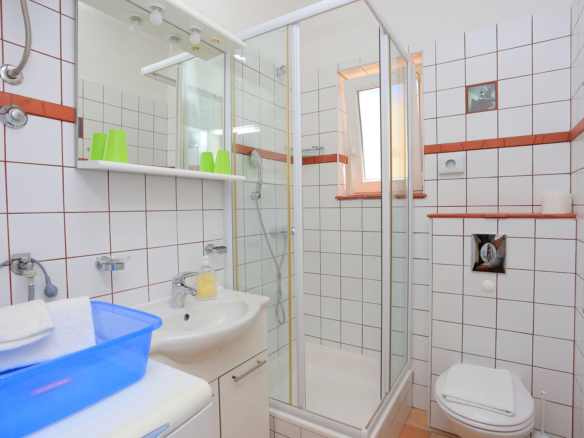 Umgebung des Objekts (Ordentlich), Parkplatz (Anzahl der Parkplätze: 9, Entfernung vom Objekt: im Hof), WiFi Internet, Bootsanlegeplatz (Entfernung vom Objekt: 200 m, Bootsanlegeplatztyp: Boje), Föhn, Bügeleisen, Bügelbrett, Sonnenschirm, Liegestühle, Kinderbett