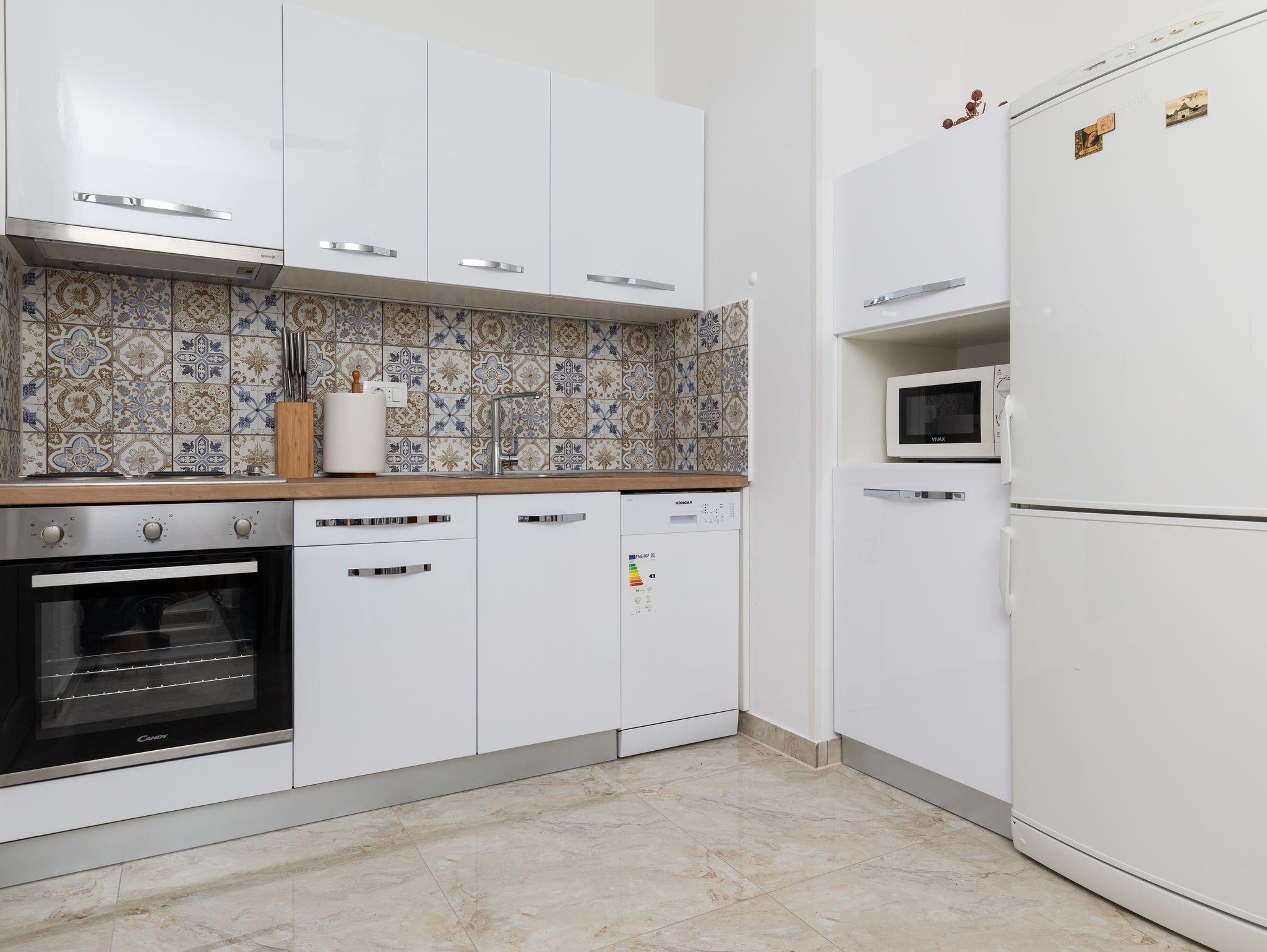 Ferienwohnung bietet Platz für 6 Gäste. Die Betten sind in Schlafzimmern, die es 2 gibt, innerhalb einer Gesamtfläche von 38m2, angeordnet. Die Gäste haben eine eigene Terrasse zur Verfügung, auf der sie in warmen Sommernächten genießen können. Das Apartment bietet Meerblick. Es ist erlaubt, Speisen auf dem Gemeinschafts-Grill vorzubereiten. In der Unterkunftseinheit besteht die Möglichkeit des Mitbringens von Haustieren gegen Aufpreis. IM PREIS INBEGRIFFEN: Kurtaxe, Endreinigung, Klimatisierung, Parkplatz, Internet. VERBINDLICHE ZUSÄTZLICHE KOSTEN: Aufzahlung für Kurzaufenthalte (prozentualer Zuschlag pro Nächtigungsanzahl: 30% - 1, 20% - 2, 10% - 3). UNVERBINDLICHE ZUSÄTZLICHE KOSTEN: Haustiere (8,00 € pro Nacht). Die Verfügbarkeit zusätzlicher Dienstleistungen in Ihrem reservierten Termin und die Preise derselben (falls nicht aufgeführt) müssen im Voraus überprüft werden. Zusätzliche Dienstleistungen die in der Zahlungsaufforderung nicht aufgeführt sind werden direkt beim Vermieter bezahlt, angenommen der Gast nutzt auch diese.