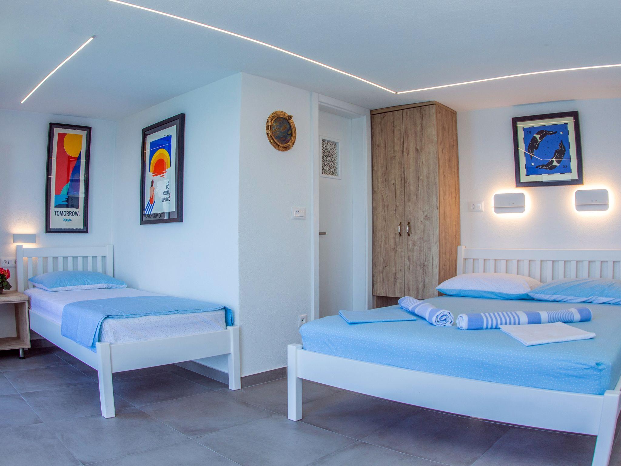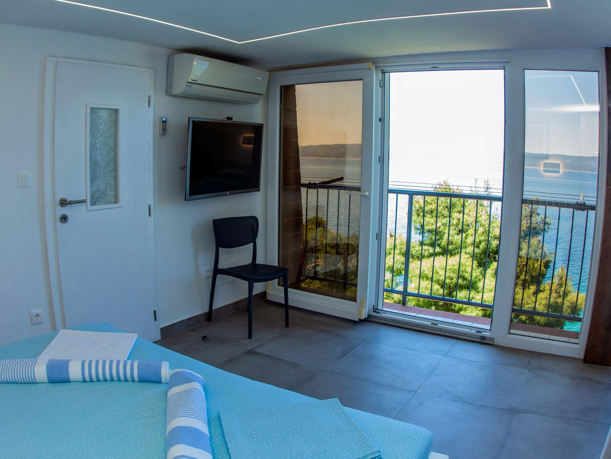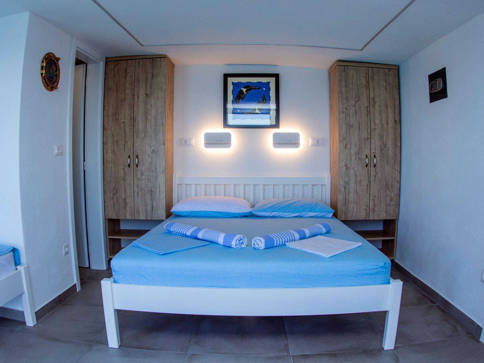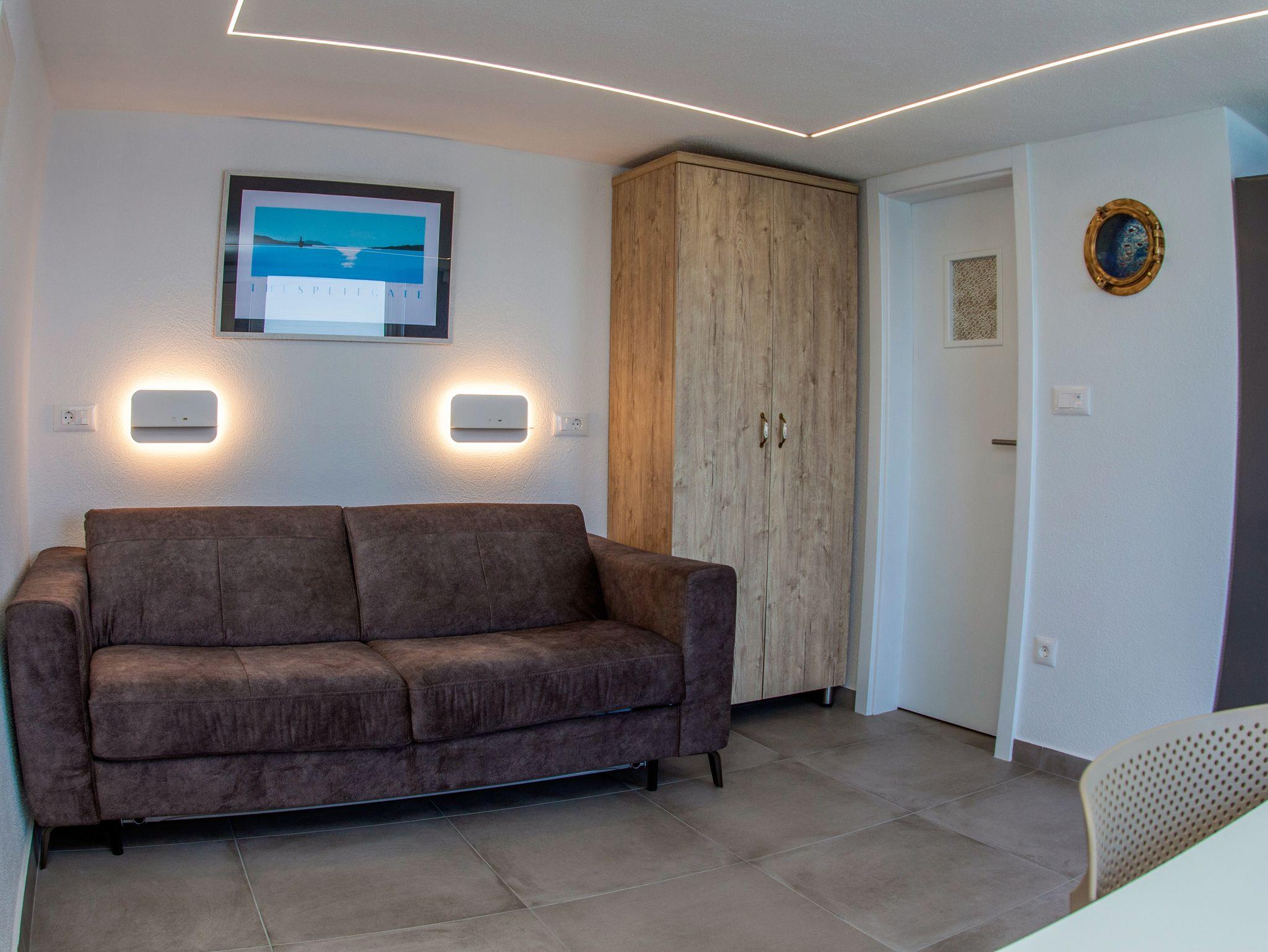 Ferienwohnung bietet Platz für 4 Gäste. Die Betten sind in Schlafzimmern, die es 1 gibt, und in Wohnzimmer, innerhalb einer Gesamtfläche von 42m2, angeordnet. Die Gäste haben eine eigene Terrasse zur Verfügung, auf der sie in warmen Sommernächten genießen können. Das Apartment bietet Meerblick. Es ist erlaubt, Speisen auf dem Gemeinschafts-Grill vorzubereiten. IM PREIS INBEGRIFFEN: Kurtaxe, Endreinigung, Klimatisierung, Parkplatz, Internet, Bootsanlegeplatz, Kinderbett, Bügeleisen, Bügelbrett, Föhn, Sonnenschirm, Liegestühle. VERBINDLICHE ZUSÄTZLICHE KOSTEN: Aufzahlung für Kurzaufenthalte (prozentualer Zuschlag pro Nächtigungsanzahl: 30% - 1, 20% - 2, 10% - 3). Die Verfügbarkeit zusätzlicher Dienstleistungen in Ihrem reservierten Termin und die Preise derselben (falls nicht aufgeführt) müssen im Voraus überprüft werden. Zusätzliche Dienstleistungen die in der Zahlungsaufforderung nicht aufgeführt sind werden direkt beim Vermieter bezahlt, angenommen der Gast nutzt auch diese.