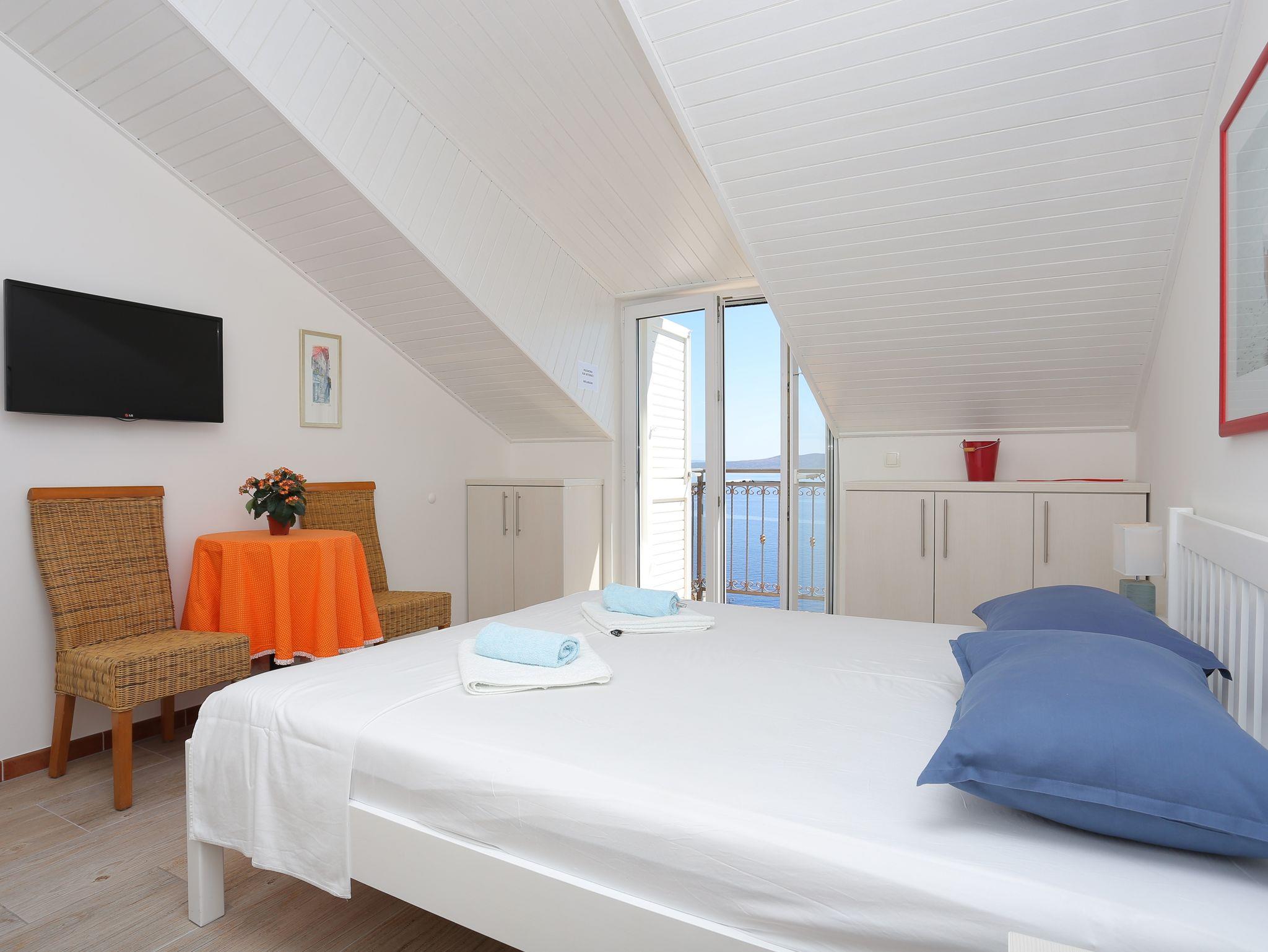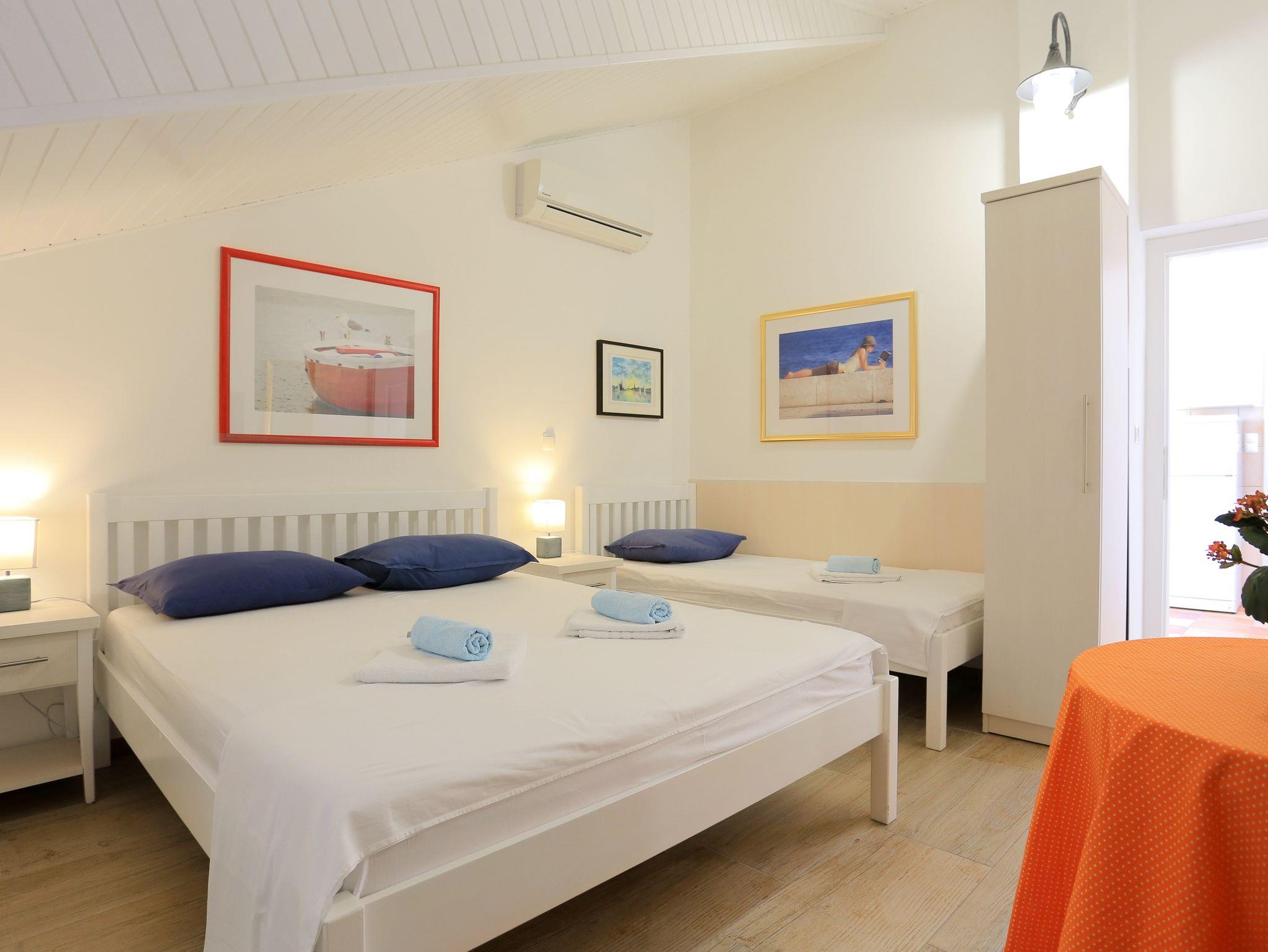 Ferienwohnung bietet Platz für 3 Gäste. Die Betten sind in Schlafzimmern, die es 1 gibt, innerhalb einer Gesamtfläche von 31m2, angeordnet. Die Gäste haben einen eigenen Balkon zur Verfügung, auf der sie in warmen Sommernächten genießen können. Das Apartment bietet Meerblick. IM PREIS INBEGRIFFEN: Kurtaxe, Endreinigung, Klimatisierung, Parkplatz, Internet, Bootsanlegeplatz, Kinderbett, Bügeleisen, Bügelbrett, Föhn, Sonnenschirm, Liegestühle. VERBINDLICHE ZUSÄTZLICHE KOSTEN: Aufzahlung für Kurzaufenthalte (prozentualer Zuschlag pro Nächtigungsanzahl: 30% - 1, 20% - 2, 10% - 3). Die Verfügbarkeit zusätzlicher Dienstleistungen in Ihrem reservierten Termin und die Preise derselben (falls nicht aufgeführt) müssen im Voraus überprüft werden. Zusätzliche Dienstleistungen die in der Zahlungsaufforderung nicht aufgeführt sind werden direkt beim Vermieter bezahlt, angenommen der Gast nutzt auch diese. Ermäßigung auf den Grundpreis: Gratistag 28=25 (bei einem Aufenthalt von 28 oder mehr Tagen erhalten Sie 3 kostenlose Tage für den Aufenthalt bis 31.12.26).