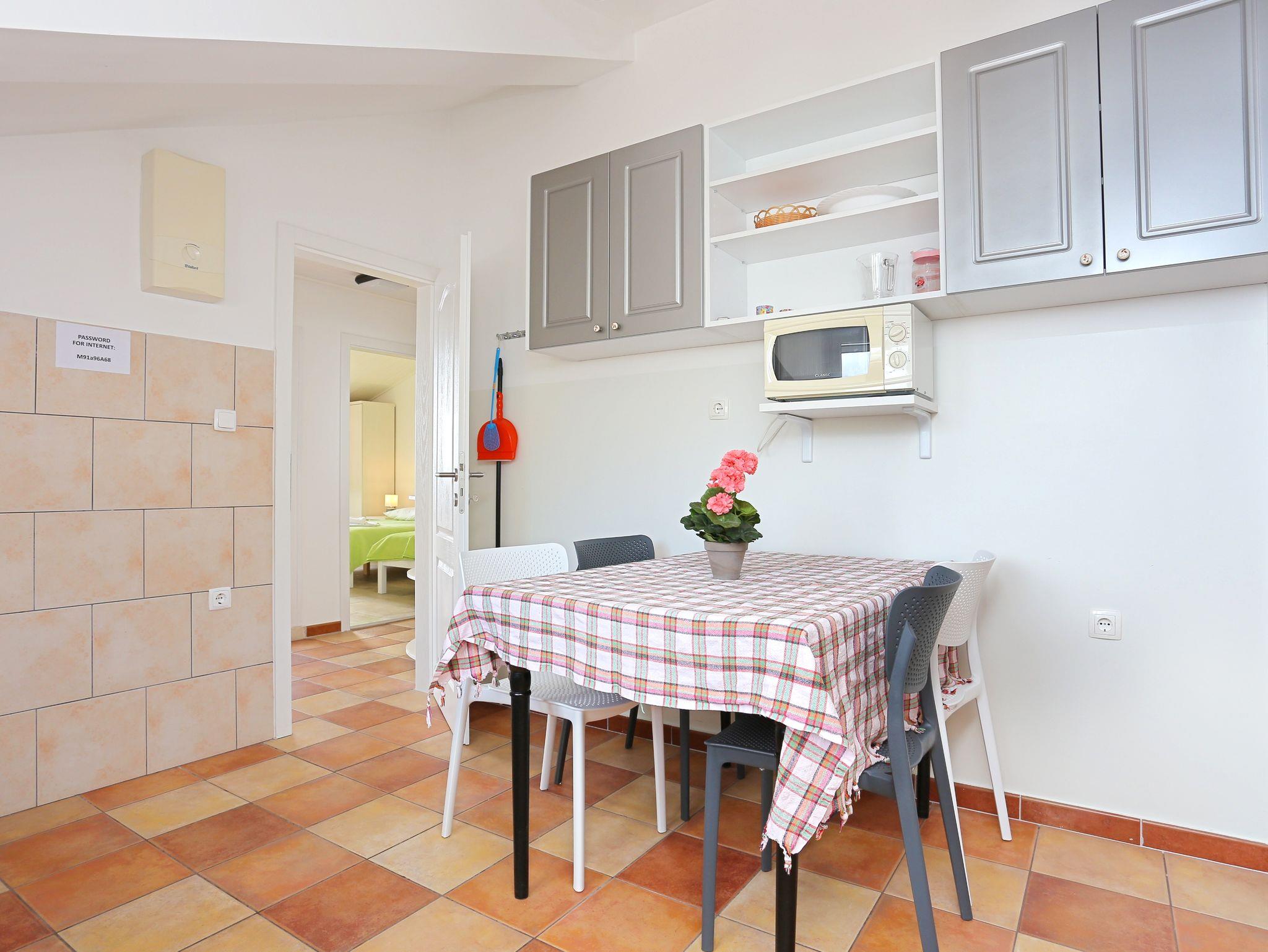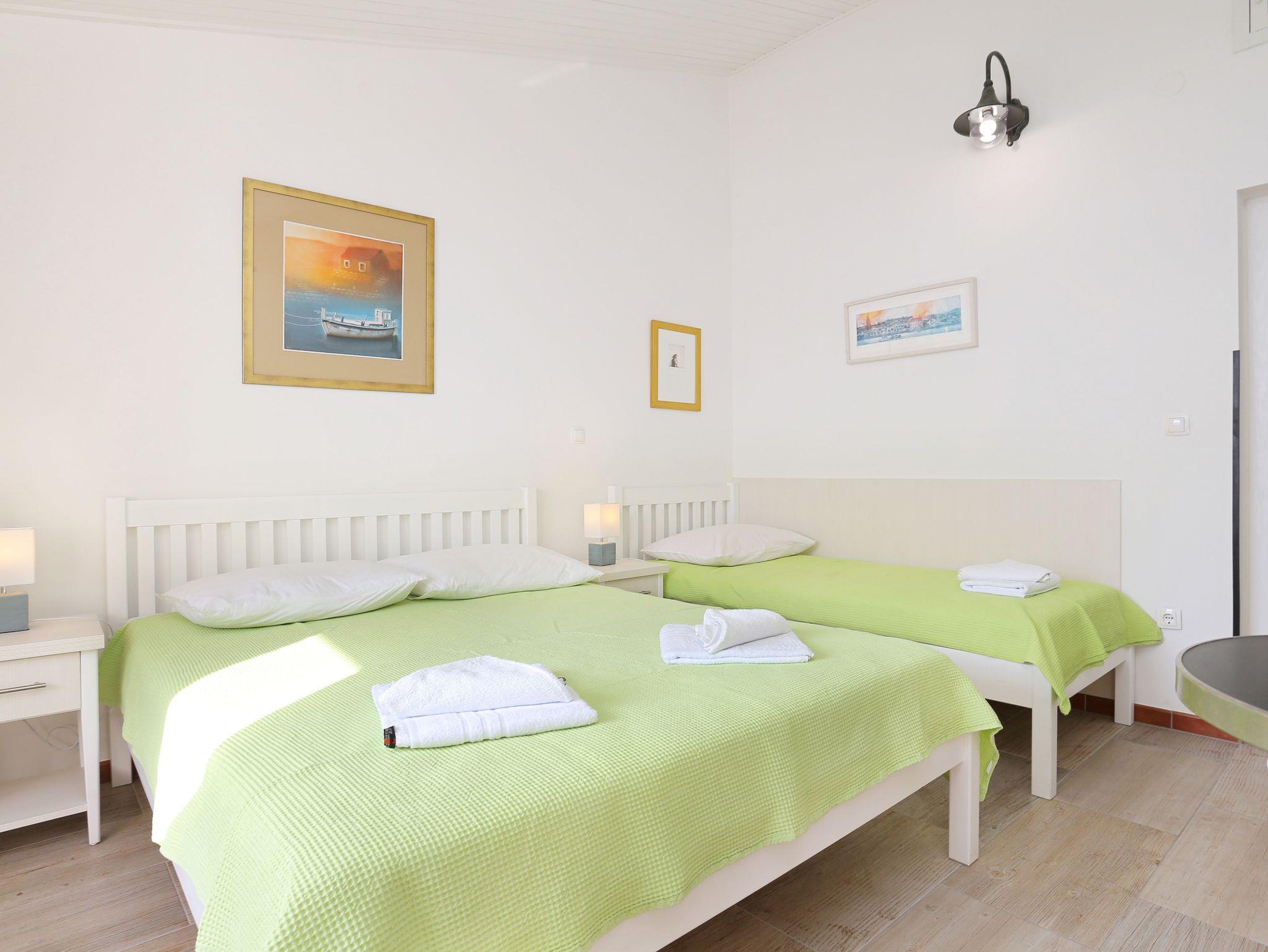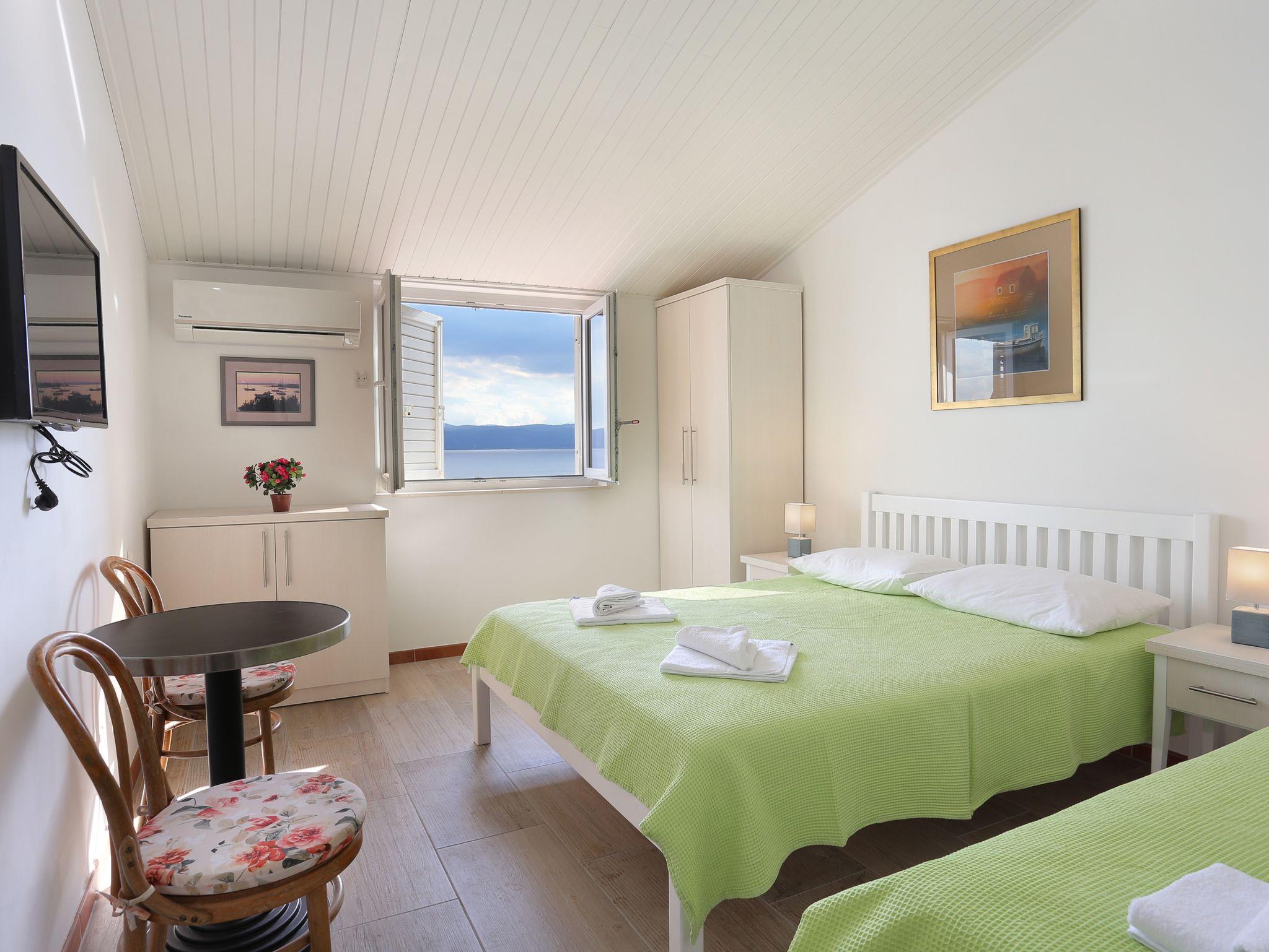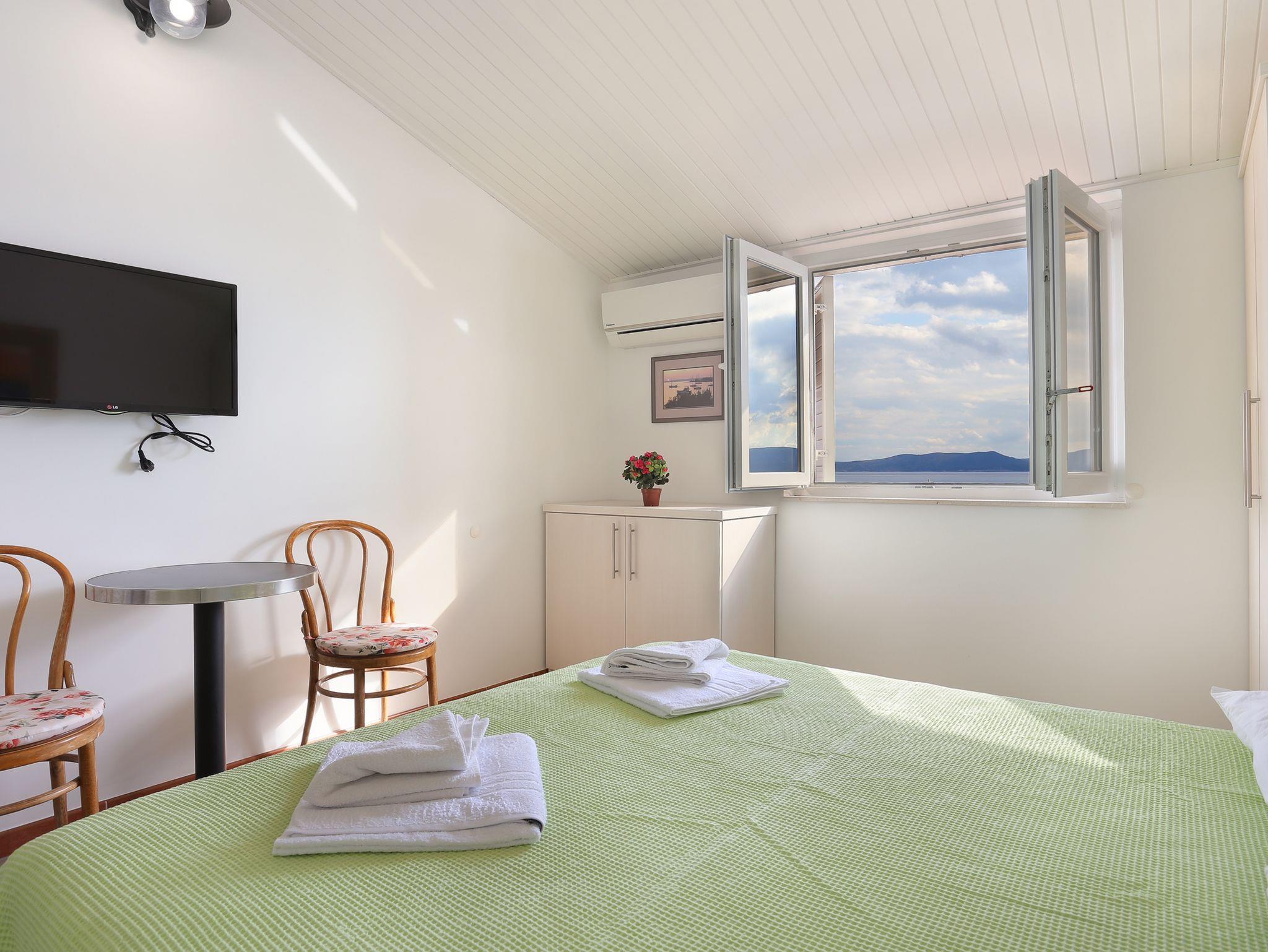 Ferienwohnung bietet Platz für 3 Gäste. Die Betten sind in Schlafzimmern, die es 1 gibt, innerhalb einer Gesamtfläche von 34m2, angeordnet. Die Gäste haben eine eigene Terrasse zur Verfügung, auf der sie in warmen Sommernächten genießen können. Das Apartment bietet Meerblick. IM PREIS INBEGRIFFEN: Kurtaxe, Endreinigung, Klimatisierung, Parkplatz, Internet, Bootsanlegeplatz, Kinderbett, Bügeleisen, Bügelbrett, Föhn, Sonnenschirm, Liegestühle. VERBINDLICHE ZUSÄTZLICHE KOSTEN: Aufzahlung für Kurzaufenthalte (prozentualer Zuschlag pro Nächtigungsanzahl: 30% - 1, 20% - 2, 10% - 3). Die Verfügbarkeit zusätzlicher Dienstleistungen in Ihrem reservierten Termin und die Preise derselben (falls nicht aufgeführt) müssen im Voraus überprüft werden. Zusätzliche Dienstleistungen die in der Zahlungsaufforderung nicht aufgeführt sind werden direkt beim Vermieter bezahlt, angenommen der Gast nutzt auch diese. Ermäßigung auf den Grundpreis: Gratistag 28=25 (bei einem Aufenthalt von 28 oder mehr Tagen erhalten Sie 3 kostenlose Tage für den Aufenthalt bis 31.12.26).