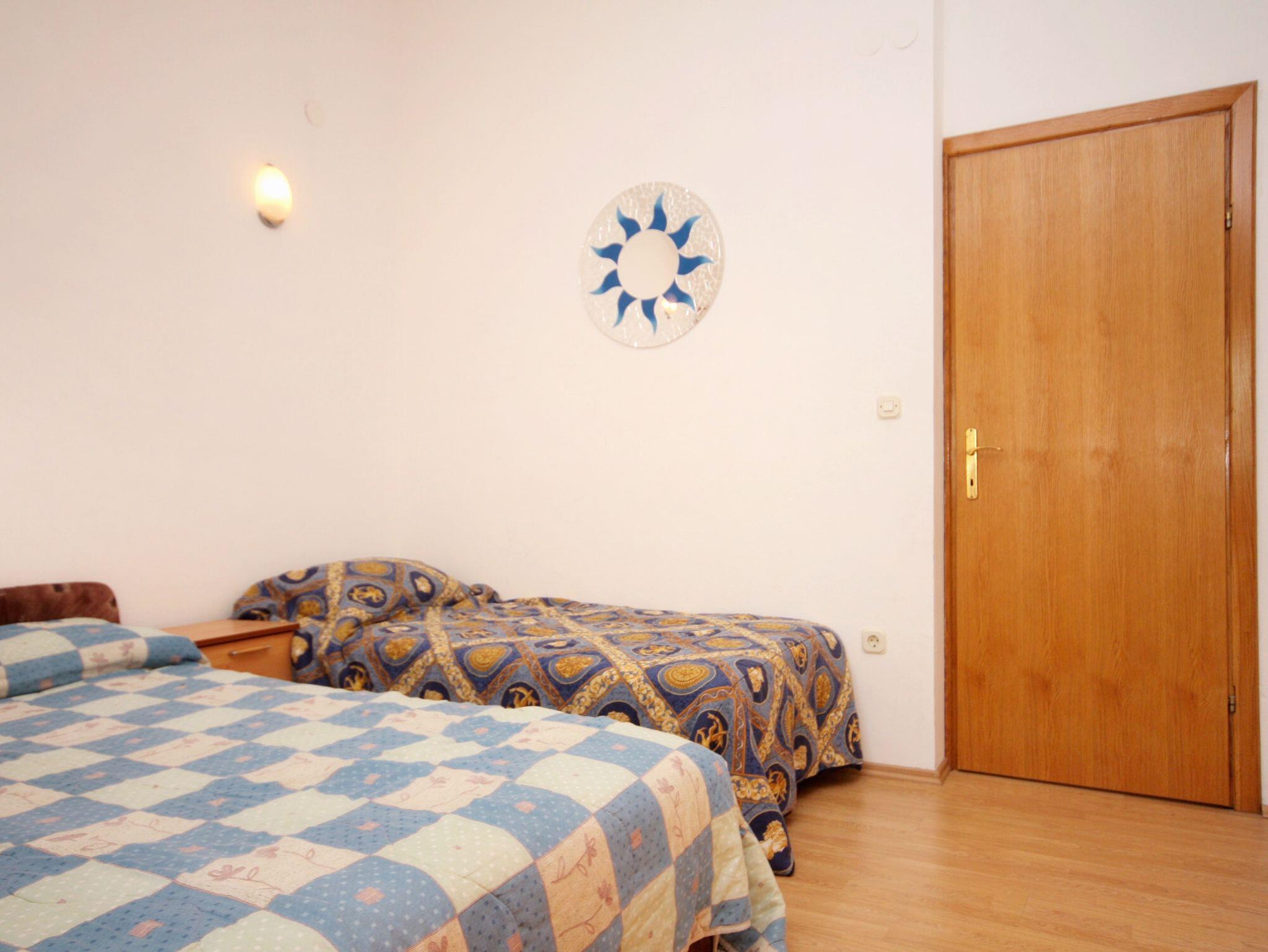 Ferienwohnung bietet Platz für 5 Gäste. Die Betten sind in Schlafzimmern, die es 2 gibt, innerhalb einer Gesamtfläche von 60m2, angeordnet. Die Gäste haben einen eigenen Balkon zur Verfügung, auf der sie in warmen Sommernächten genießen können. Das Apartment bietet Meerblick. Es ist erlaubt, Speisen auf dem Gemeinschafts-Grill vorzubereiten. In der Unterkunftseinheit besteht die Möglichkeit des Mitbringens von Haustieren gegen Aufpreis. Die reservierte Unterkunftseinheit verfügt über einen gemeinsame Terrasse. IM PREIS INBEGRIFFEN: Kurtaxe, Endreinigung, Klimatisierung, Parkplatz, Internet. VERBINDLICHE ZUSÄTZLICHE KOSTEN: Aufzahlung für Kurzaufenthalte (prozentualer Zuschlag pro Nächtigungsanzahl: 30% - 1, 20% - 2, 10% - 3). UNVERBINDLICHE ZUSÄTZLICHE KOSTEN: Haustiere (8,00 € pro Nacht). Die Verfügbarkeit zusätzlicher Dienstleistungen in Ihrem reservierten Termin und die Preise derselben (falls nicht aufgeführt) müssen im Voraus überprüft werden. Zusätzliche Dienstleistungen die in der Zahlungsaufforderung nicht aufgeführt sind werden direkt beim Vermieter bezahlt, angenommen der Gast nutzt auch diese.