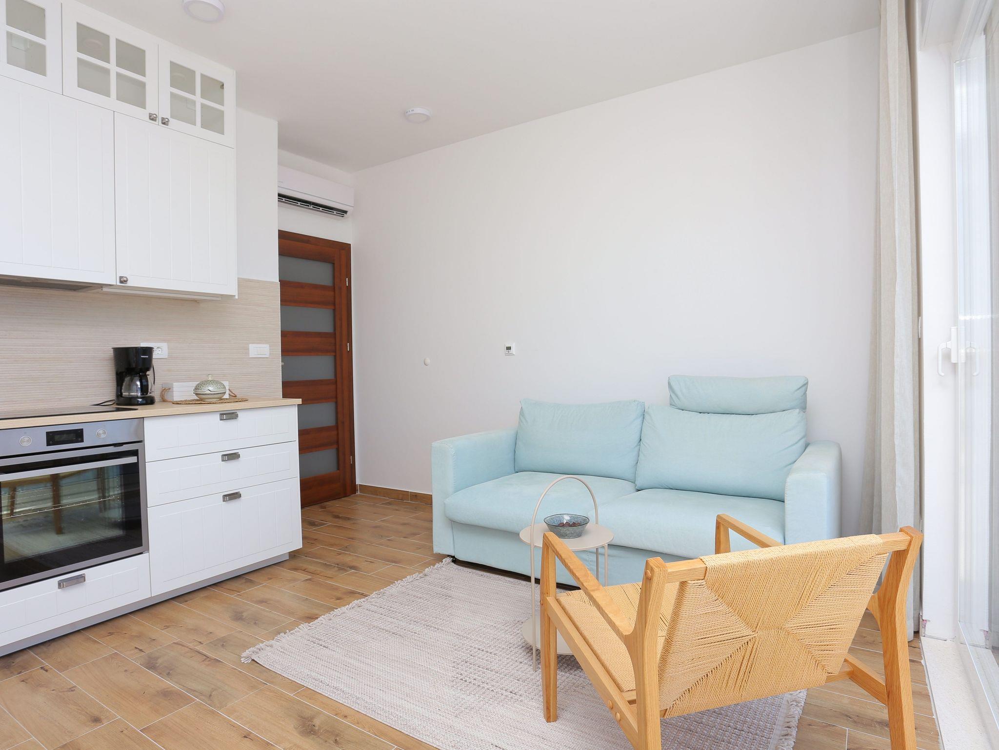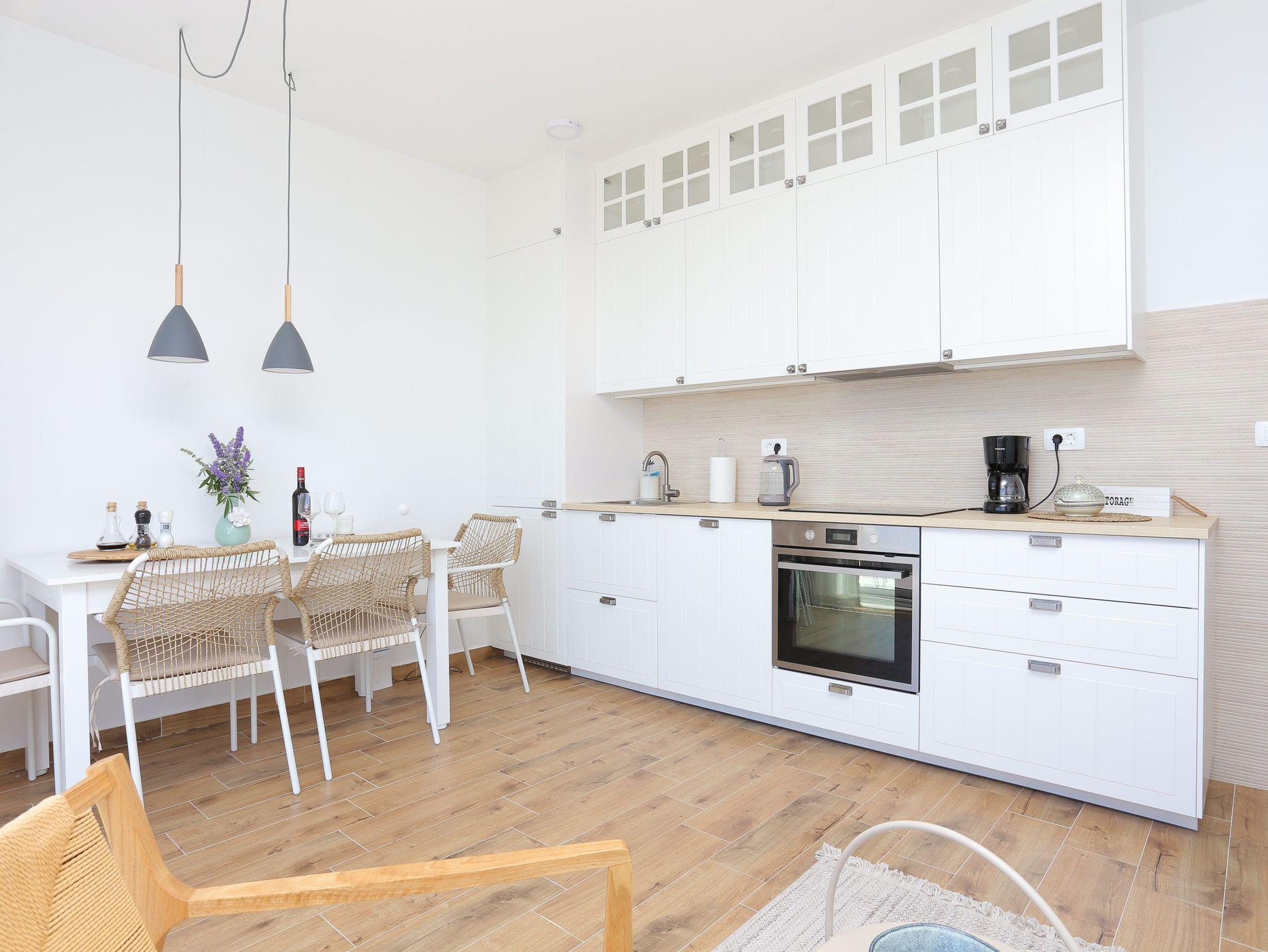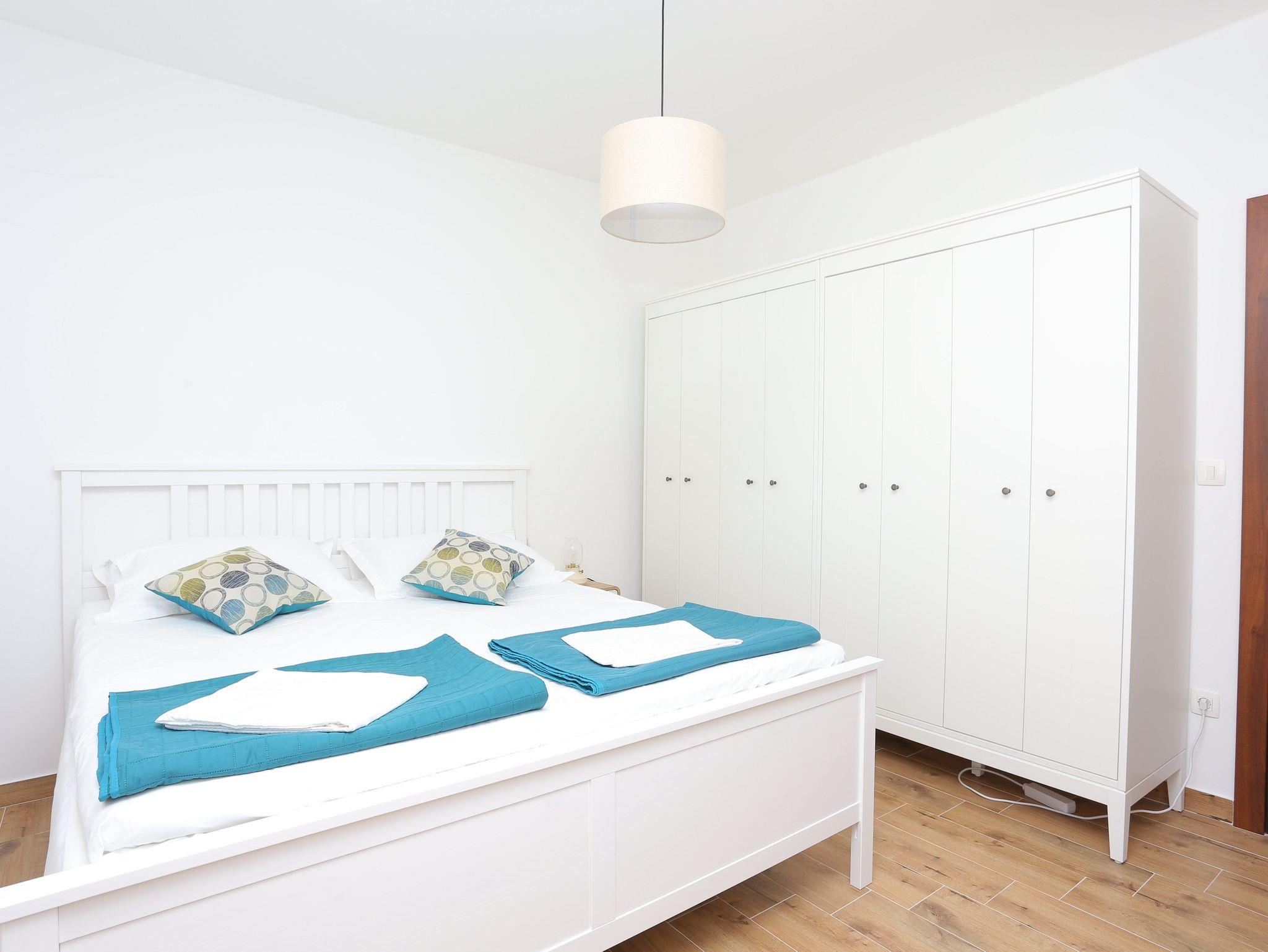 Ferienwohnung bietet Platz für 4 Gäste. Die Betten sind in Schlafzimmern, die es 1 gibt, und in Wohnzimmer, innerhalb einer Gesamtfläche von 43m2, angeordnet. Die Gäste haben eine eigene Terrasse zur Verfügung, auf der sie in warmen Sommernächten genießen können. Das Apartment bietet Meerblick. IM PREIS INBEGRIFFEN: Kurtaxe, Endreinigung, Klimatisierung, Parkplatz, Internet, Bügeleisen, Bügelbrett, Föhn. Die Verfügbarkeit zusätzlicher Dienstleistungen in Ihrem reservierten Termin und die Preise derselben (falls nicht aufgeführt) müssen im Voraus überprüft werden. Zusätzliche Dienstleistungen die in der Zahlungsaufforderung nicht aufgeführt sind werden direkt beim Vermieter bezahlt, angenommen der Gast nutzt auch diese. Ermäßigung auf den Grundpreis: Gratistag 14=13 (bei einem Aufenthalt von 14 Tagen oder mehr erhalten Sie einen Gratistag für den Aufenthalt bis 31.12.26).