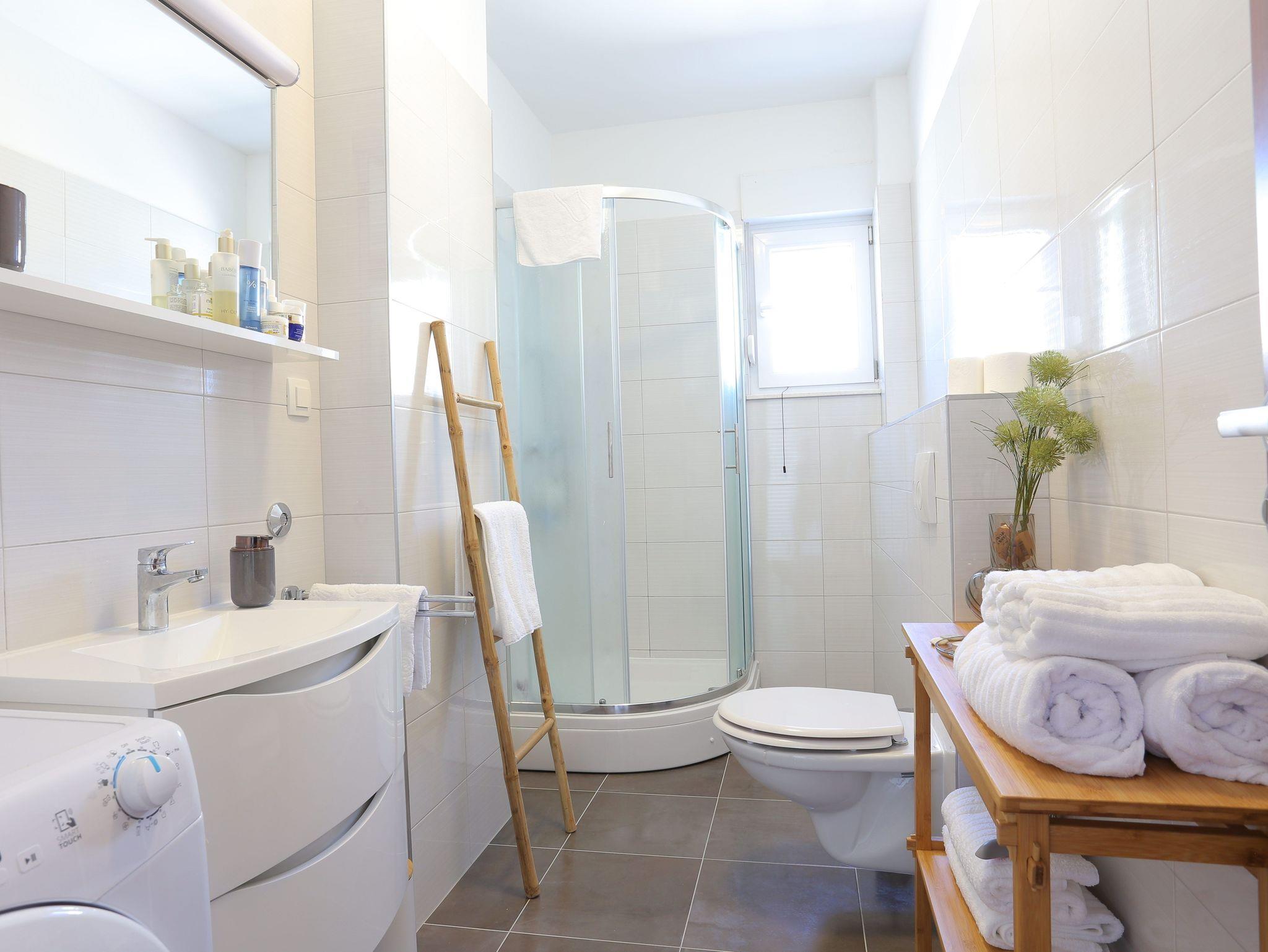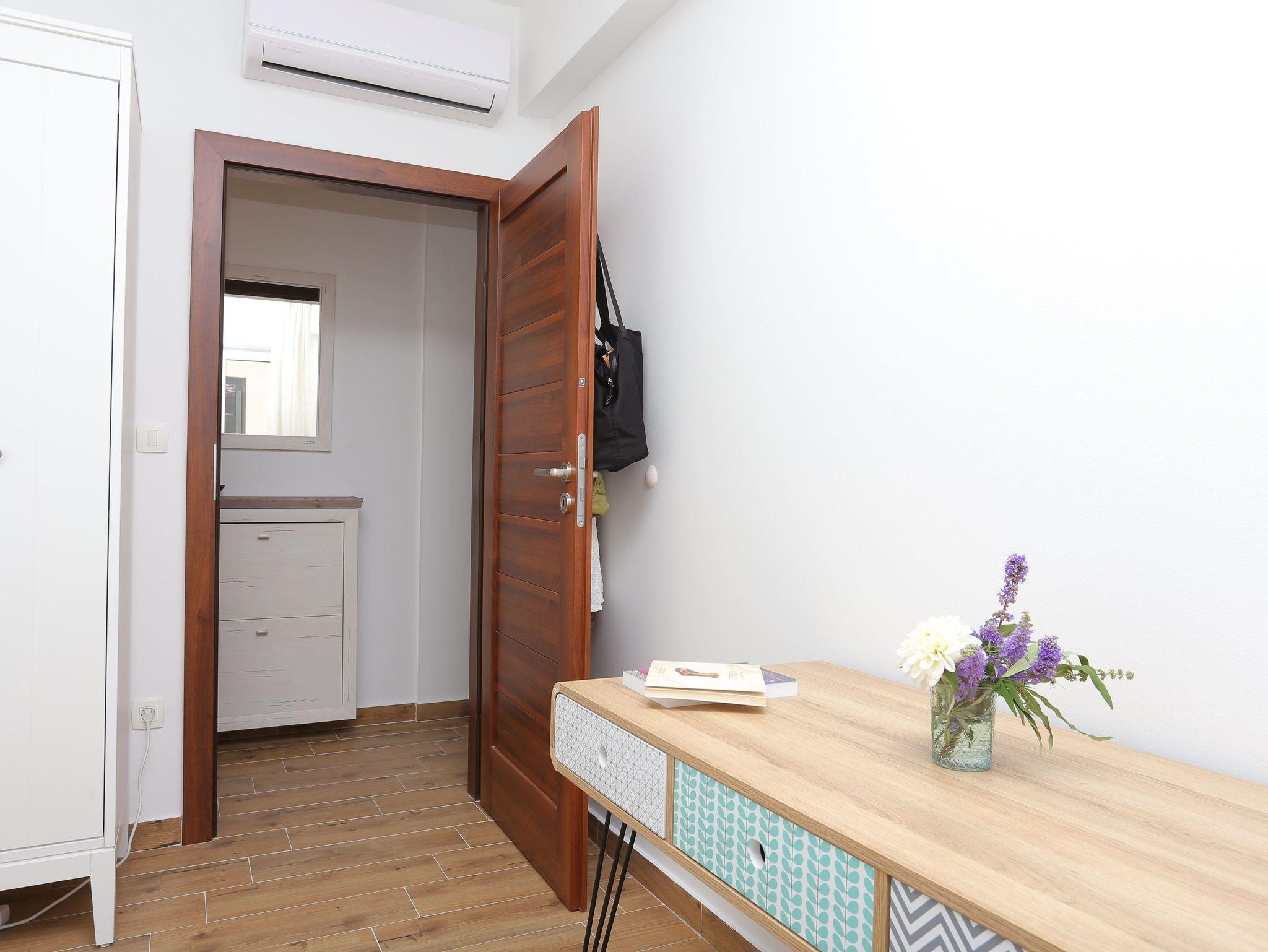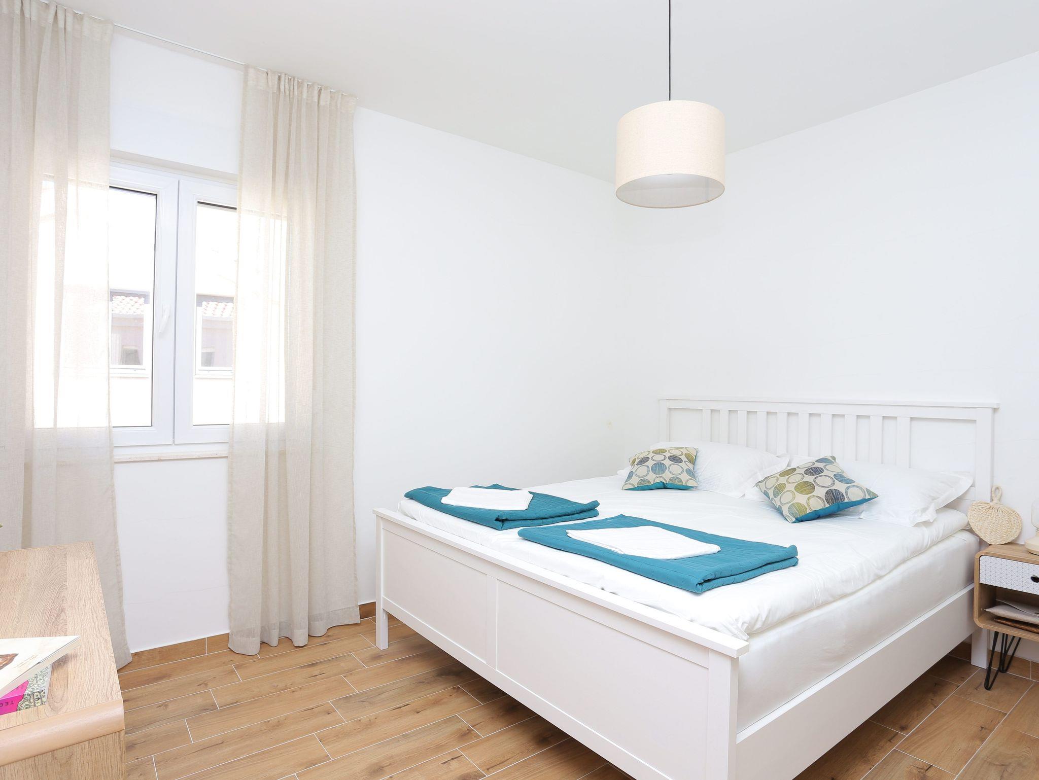 Ferienwohnung bietet Platz für 4 Gäste. Die Betten sind in Schlafzimmern, die es 1 gibt, und in Wohnzimmer, innerhalb einer Gesamtfläche von 43m2, angeordnet. Die Gäste haben eine eigene Terrasse zur Verfügung, auf der sie in warmen Sommernächten genießen können. Das Apartment bietet Meerblick. IM PREIS INBEGRIFFEN: Kurtaxe, Endreinigung, Klimatisierung, Parkplatz, Internet, Bügeleisen, Bügelbrett, Föhn. Die Verfügbarkeit zusätzlicher Dienstleistungen in Ihrem reservierten Termin und die Preise derselben (falls nicht aufgeführt) müssen im Voraus überprüft werden. Zusätzliche Dienstleistungen die in der Zahlungsaufforderung nicht aufgeführt sind werden direkt beim Vermieter bezahlt, angenommen der Gast nutzt auch diese. Ermäßigung auf den Grundpreis: Gratistag 14=13 (bei einem Aufenthalt von 14 Tagen oder mehr erhalten Sie einen Gratistag für den Aufenthalt bis 31.12.26).