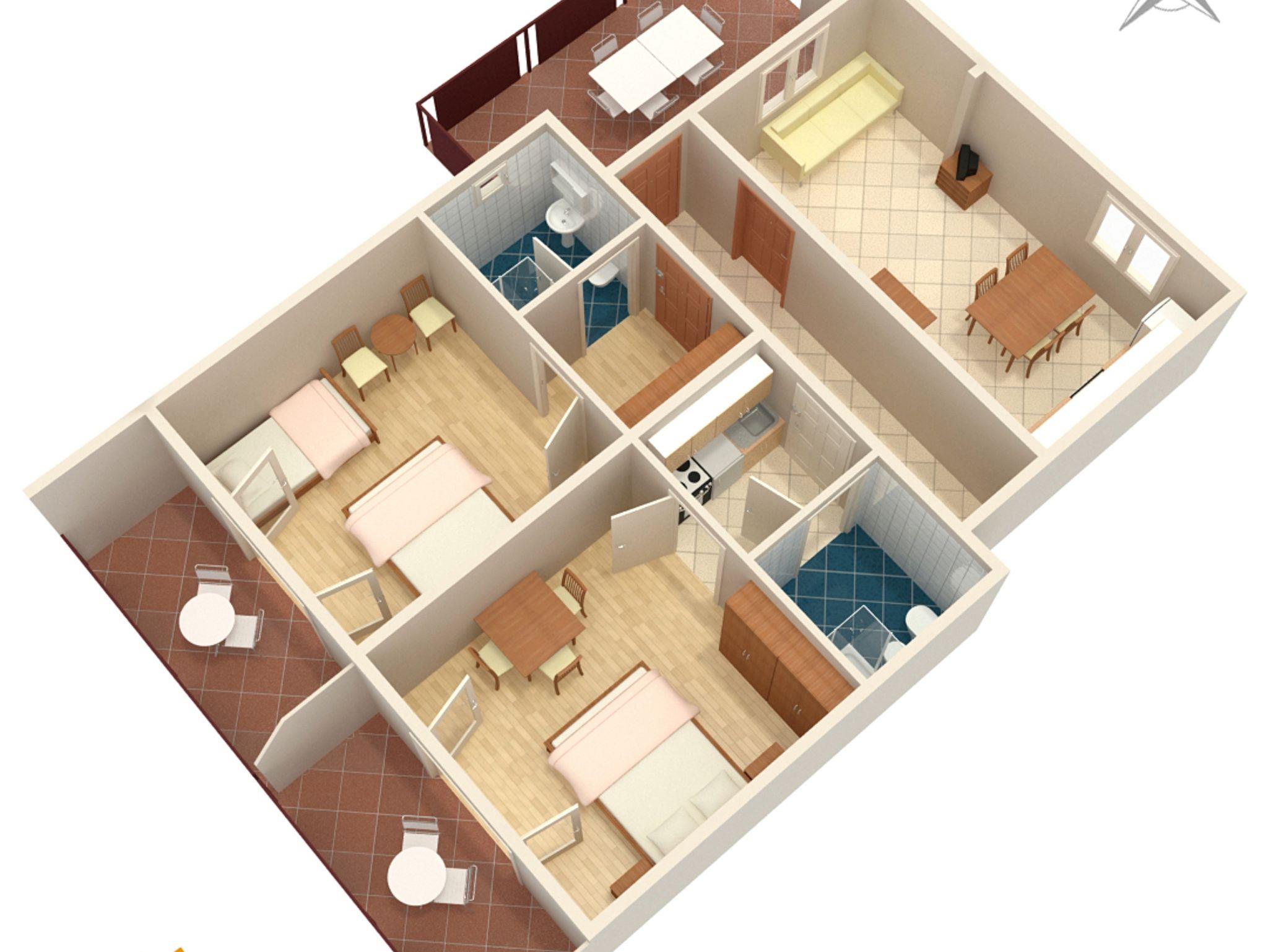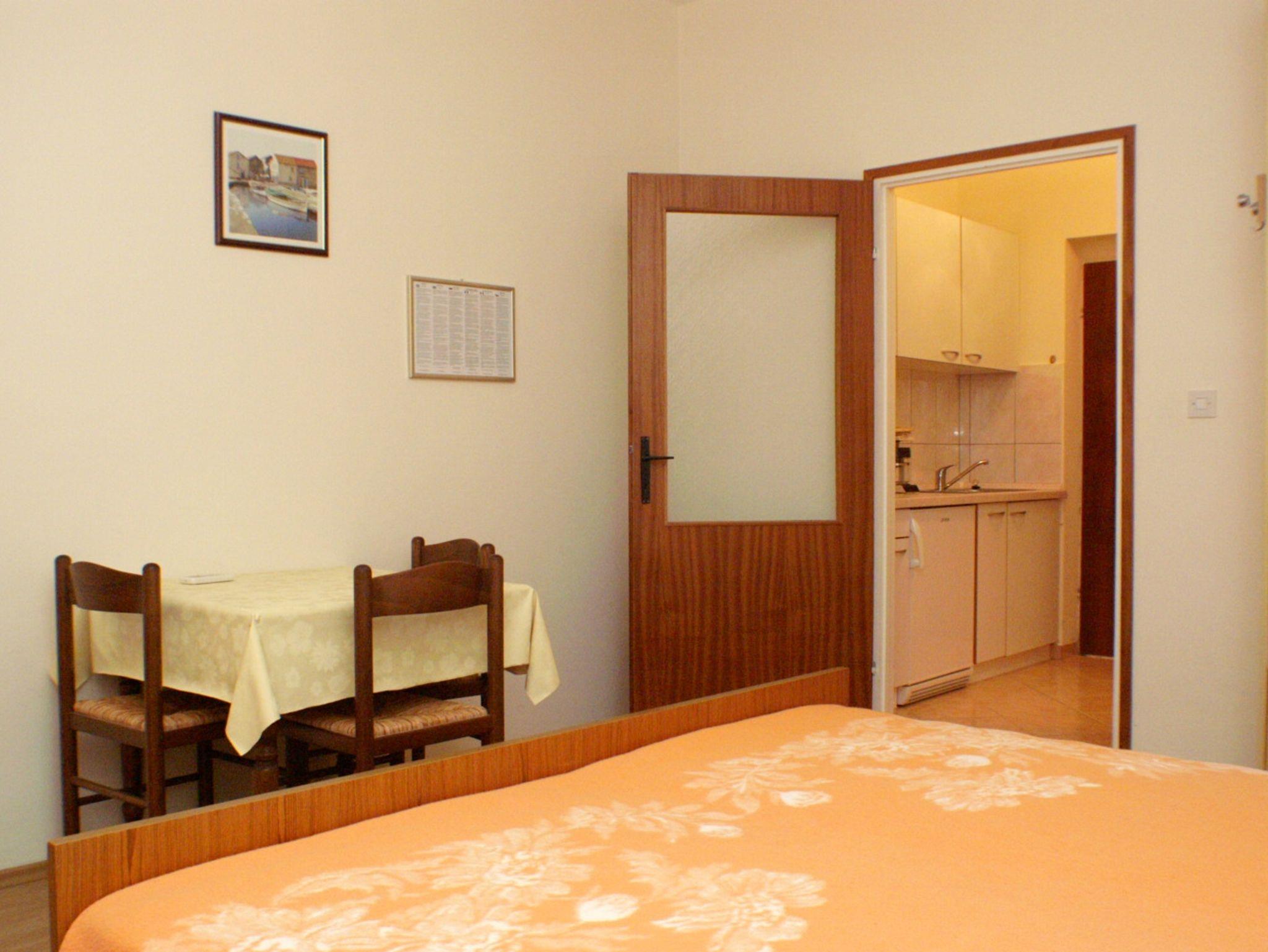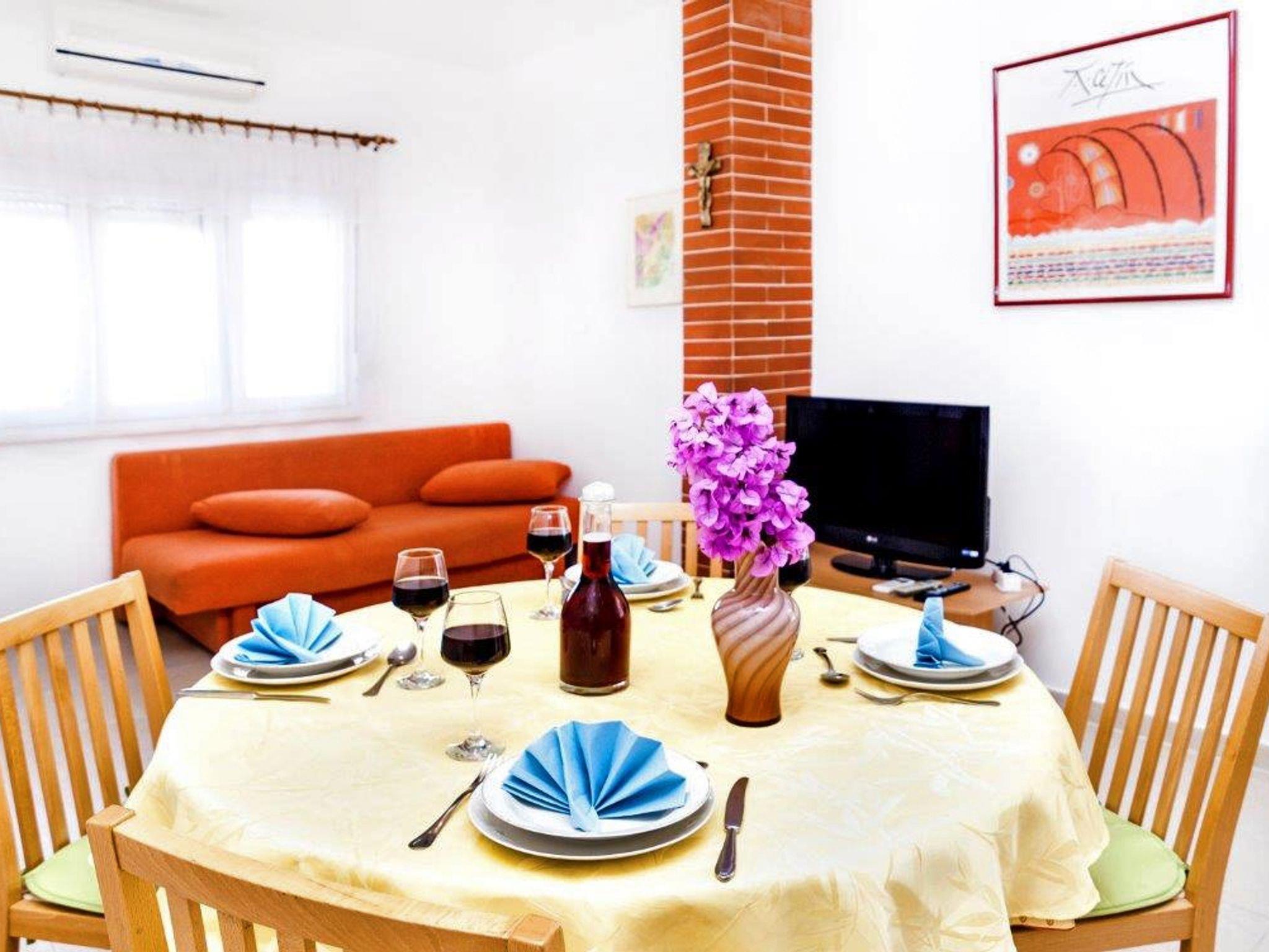 Ferienwohnung bietet Platz für 6 Gäste. Die Betten sind in Schlafzimmern, die es 2 gibt, und in Esszimmer, innerhalb einer Gesamtfläche von 69m2, angeordnet. Die Gäste haben eine eigene Terrasse zur Verfügung, auf der sie in warmen Sommernächten genießen können. Das Apartment bietet Meerblick. IM PREIS INBEGRIFFEN: Kurtaxe, Endreinigung, Klimatisierung, Parkplatz, Internet, Bügeleisen, Bügelbrett, Föhn, Sonnenschirm. VERBINDLICHE ZUSÄTZLICHE KOSTEN: Aufzahlung für Kurzaufenthalte (prozentualer Zuschlag pro Nächtigungsanzahl: 30% - 1, 20% - 2, 10% - 3). Die Verfügbarkeit zusätzlicher Dienstleistungen in Ihrem reservierten Termin und die Preise derselben (falls nicht aufgeführt) müssen im Voraus überprüft werden. Zusätzliche Dienstleistungen die in der Zahlungsaufforderung nicht aufgeführt sind werden direkt beim Vermieter bezahlt, angenommen der Gast nutzt auch diese.